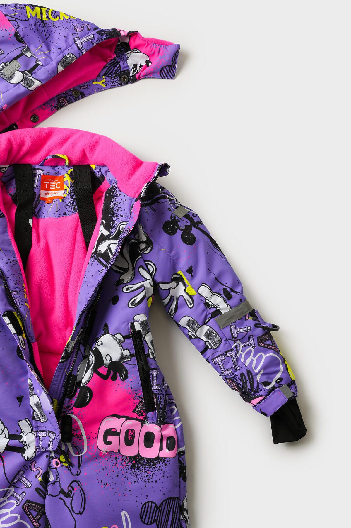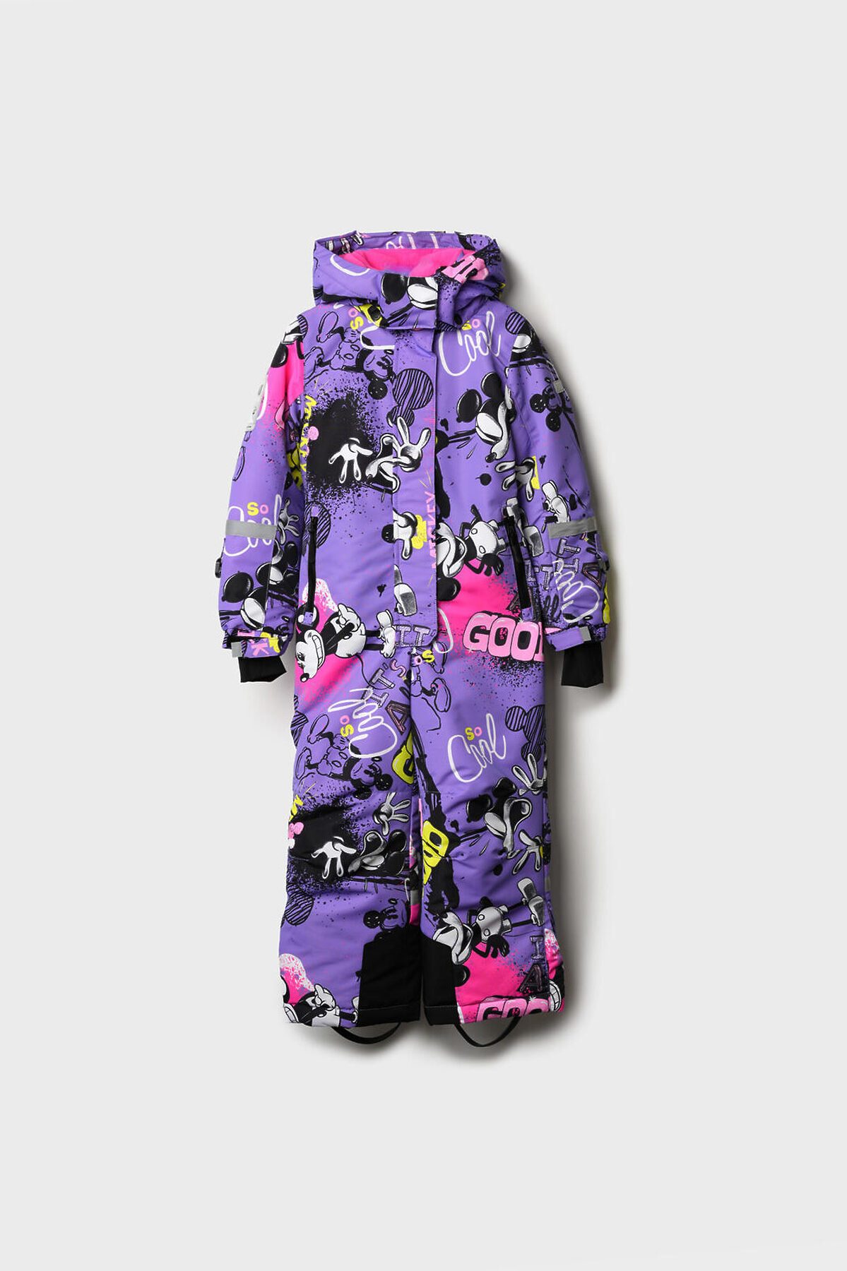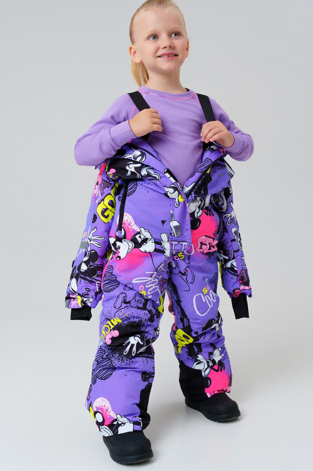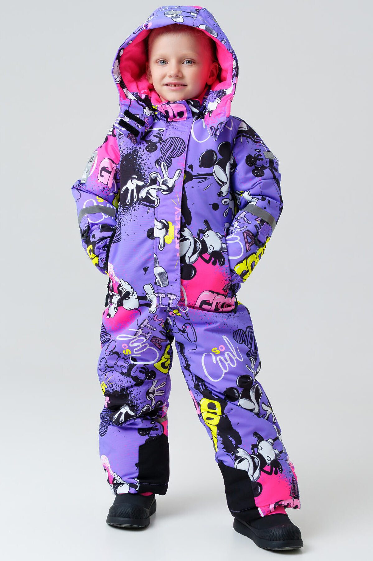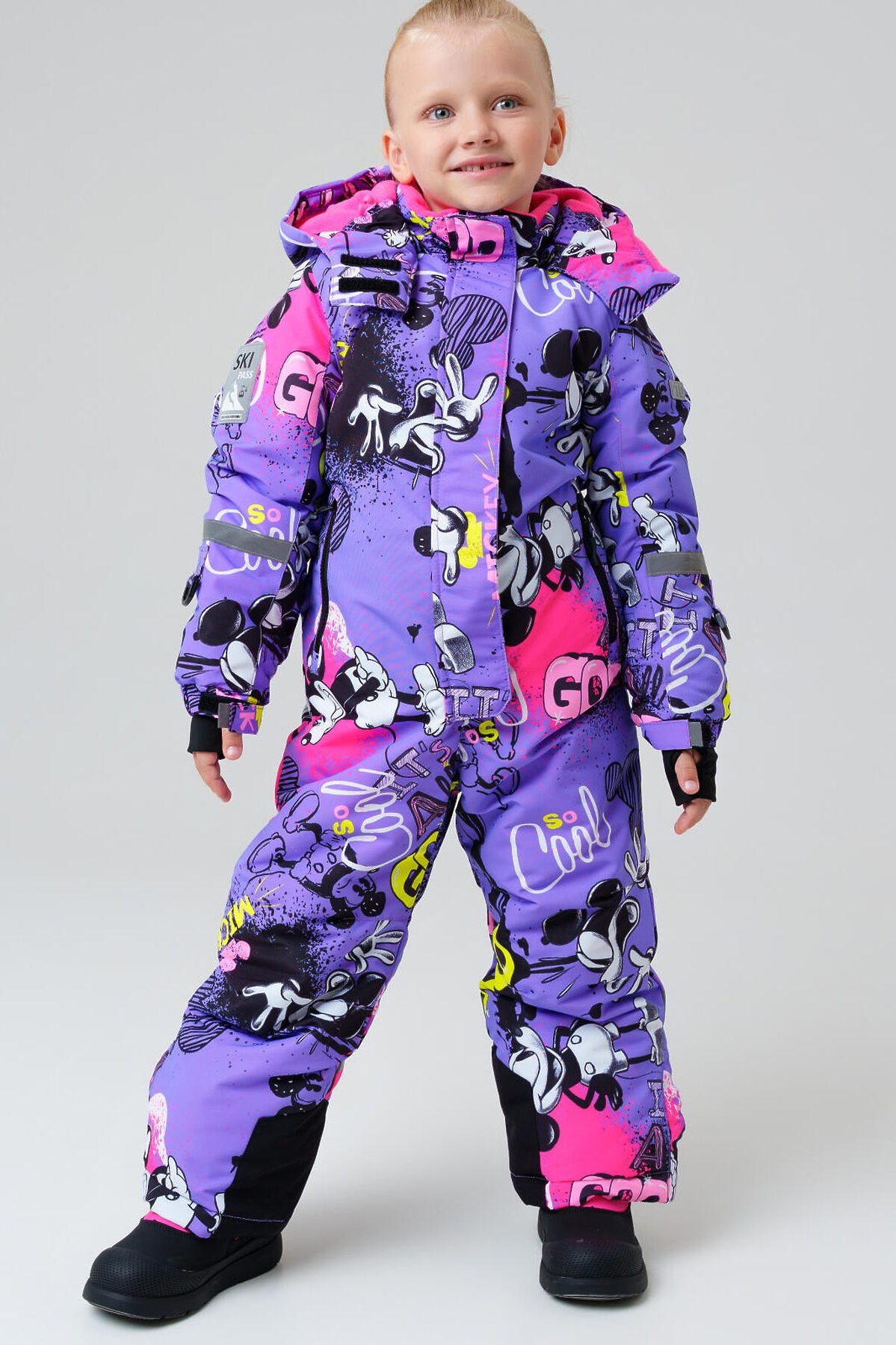 Зимний детский горнолыжный комбинезон Микки Маус для девочки от PlayToday — надежная защита и комфорт в холодное время года с температурным режимом от –5 до –20 °C. Эта модель создана специально для активных детей, которым важны тепло, свобода движений и практичность. Преимущества модели: + температурный режим от –5 до –20 °C — идеален для холодных зимних дней + мембрана 5000*5000 — высокая защита от ветра и влаги при отличной воздухопроницаемости + мягкая флисовая подкладка — сохраняет тепло и обеспечивает комфорт + внешняя ветрозащитная планка + внутренние эластичные лямки + съемный капюшон со стопперами — удобно регулируется и надежно защищает от непогоды + рукава на резинке и эластичный манжет с прорезью для пальца — препятствуют проникновению холода и снега + крепления для варежек/перчаток на рукавах + карманы на молнии + силиконовые штрипки — фиксируют брючины комбинезона на обуви, предотвращая попадание снега + карман для skipass на рукаве — удобство для любительниц горнолыжного спорта и активного отдыха + светоотражающие элементы Размерный ряд: 98-122 см — оптимально для девочек дошкольного и младшего школьного возраста от 3 до 7 лет. Когда носить: Идеально подходит для прогулок на улице, зимних игр, походов в школу или детский сад в холодный сезон. Советы по стилю: Сочетайте комбинезон с яркими шапками, варежками и утепленной обувью от PlayToday. Добавьте шарф и теплый свитер, чтобы создать стильный и комфортный зимний образ. PlayToday заботится о том, чтобы ваш ребенок оставался активным и защищённым в любую погоду!