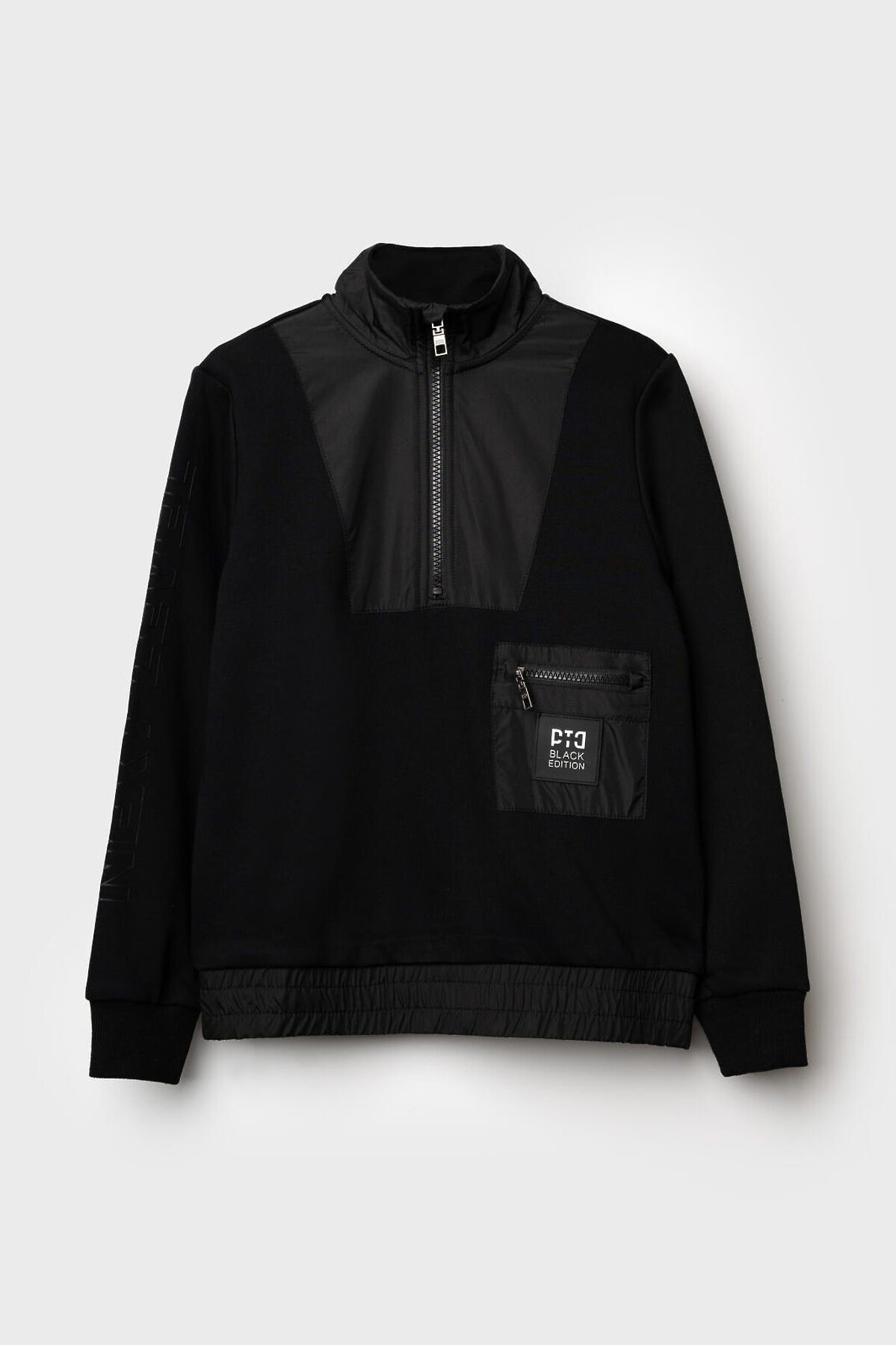 Стильная толстовка на молнии для мальчика подростка от PlayToday — универсальная школьная и спортивная одежда, которая подойдёт для повседневной носки, прогулок и активностей. Эта модная школьная толстовка сделана из мягкого хлопкового футера без начёса, что обеспечивает комфорт и свободу движений в течение дня. Преимущества модели: + застёжка на молнию — удобно надевать и снимать даже в школе и на прогулке + натуральный хлопковый футер без начёса — дышащий, комфортный и гипоаллергенный материал для подростков + два кармана — практично для школы и улицы, можно положить телефон или мелочи + стильная отделка текстильной тканью — современный акцент в подростковом гардеробе + универсальный чёрный цвет — легко комбинируется с брюками, школьными джинсами и спортивными штанами Когда носить: Толстовка отлично подходит для школы, спорта, прогулок, активного отдыха и поездок. Можно использовать как школьную форму для мальчиков или как удобную спортивную одежду для подростков. Совет по стилю: Сочетайте толстовку с джинсами, брюками чинос или спортивными штанами PlayToday. Для завершённого образа добавьте кроссовки или школьные ботинки. Размеры: 128–176 см —подростковая для мальчика от 8 до 16 лет. Стильная толстовка для мальчиков от PlayToday — современная школьная одежда и модная часть подросткового гардероба.