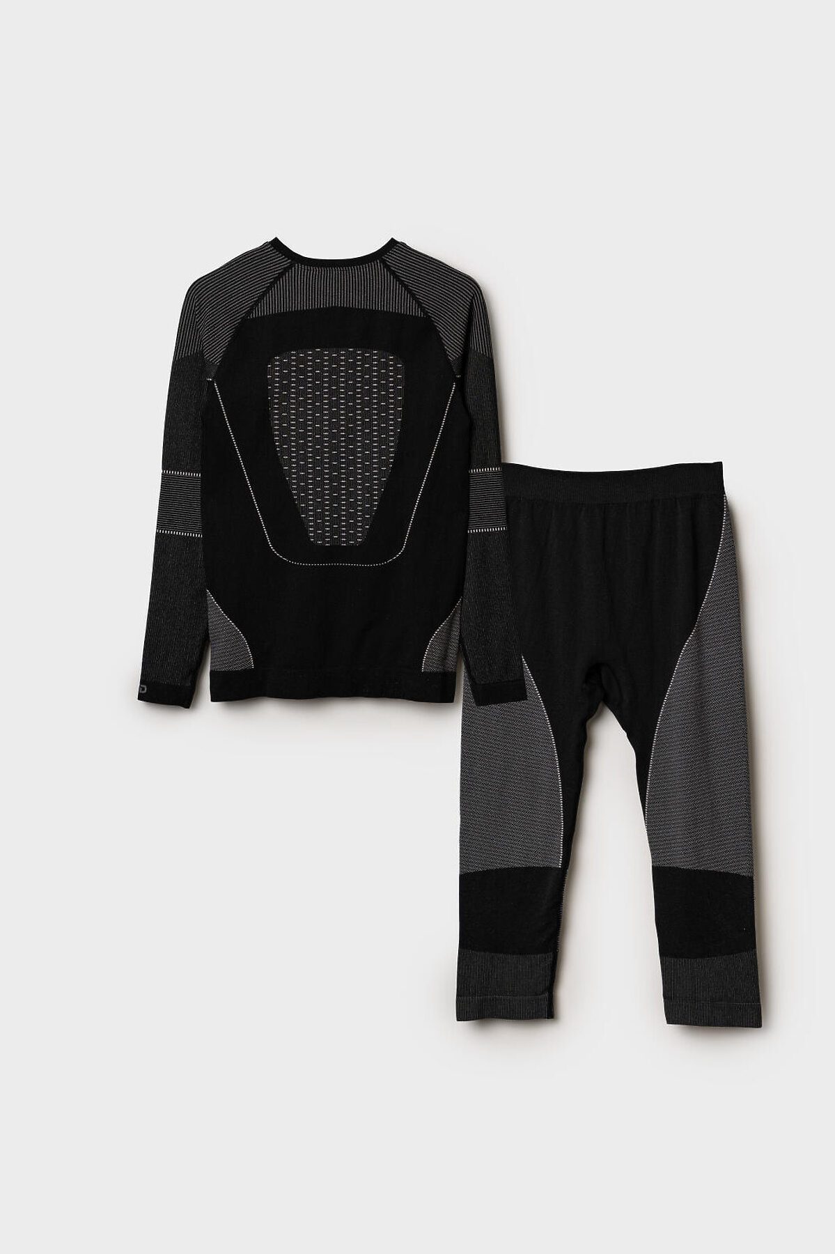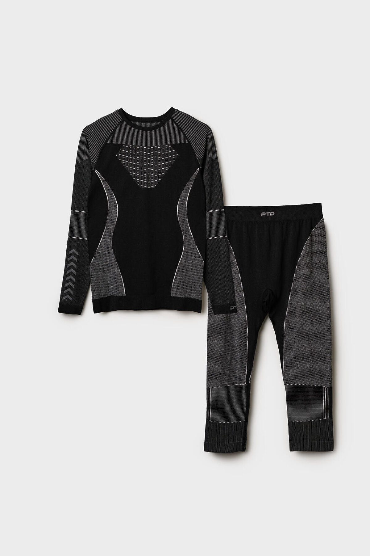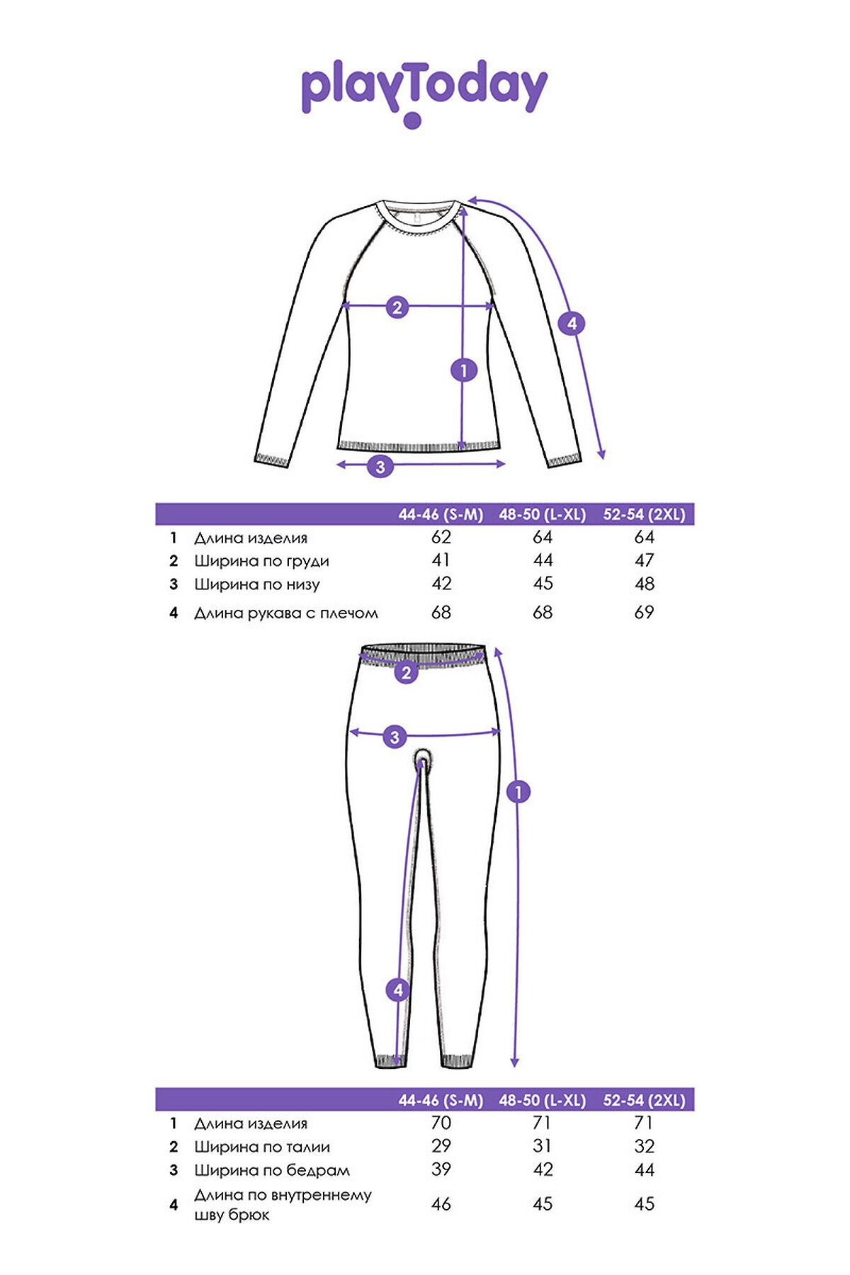 Термобельё женское от PlayToday — идеальный первый слой для холодного сезона. Комплект из кофты и брюк сохраняет тепло тела, эффективно отводит влагу и быстро сохнет. Мягкий эластичный материал не сковывает движений и обеспечивает комфортную посадку, а плоские швы не натирают даже при длительной носке. Благодаря удобному крою и нежной к телу ткани, термобельё отлично подходит как для прогулок на свежем воздухе, так и для активных занятий спортом. Преимущества модели: + плотность 240гр/м2, без начеса + жаккардовое плетение + отвод влаги и терморегуляция — сохраняет комфорт при любой активности + укороченные брюки + эластичная ткань — не сковывает движений + плоские швы — отсутствие натирания и максимальный комфорт + комфортная посадка — идеально сидит по фигуре Когда и как носить: Термобельё для женщин от PlayToday — это must-have для осени и зимы. Используйте как базовый слой под одежду в холодную погоду: на прогулки, в поездки или на спорт. Оно подойдёт для активных игр на улице, лыжных тренировок, катания на санках или просто длительных зимних прогулок. Благодаря быстрому отводу влаги и теплоизоляции в нем будет комфортно даже при смене активности. Советы по стилю: Термобельё отлично сочетается с утеплёнными мембранными комплектами и комбинезонами, зимними брюками и куртками PlayToday. Для создания уютного и функционального образа добавьте флисовую толстовку или жилет. Можно использовать и как пижаму для холодных ночей. Размеры: S-XL Сделайте холодное время года тёплым и комфортным — с термобельём от PlayToday ничто не помешает активным зимним приключениям!