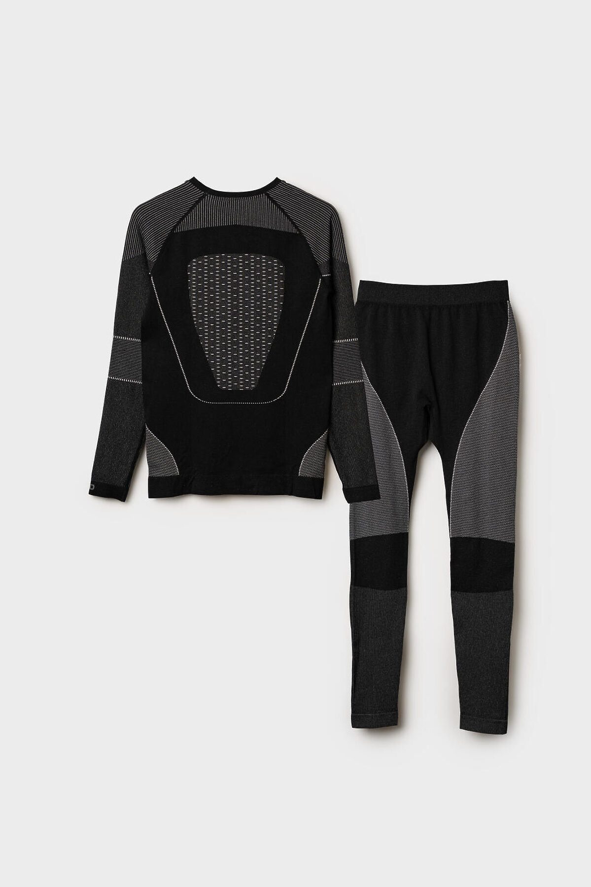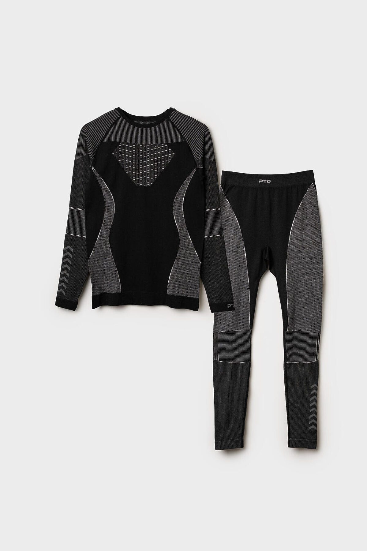 Термобельё женское от PlayToday — идеальный первый слой для холодного сезона. Комплект из кофты и брюк сохраняет тепло тела, эффективно отводит влагу и быстро сохнет. Мягкий эластичный материал не сковывает движений и обеспечивает комфортную посадку, а плоские швы не натирают даже при длительной носке. Благодаря удобному крою и нежной к телу ткани, термобельё отлично подходит как для прогулок на свежем воздухе, так и для активных занятий спортом. Преимущества модели: + плотность 240гр/м2, без начеса + жаккардовое плетение + отвод влаги и терморегуляция — сохраняет комфорт при любой активности + эластичная ткань — не сковывает движений + плоские швы — отсутствие натирания и максимальный комфорт + комфортная посадка — идеально сидит по фигуре Когда и как носить: Термобельё для женщин от PlayToday — это must-have для осени и зимы. Используйте как базовый слой под одежду в холодную погоду: на прогулки, в поездки или на спорт. Оно подойдёт для активных игр на улице, лыжных тренировок, катания на санках или просто длительных зимних прогулок. Благодаря быстрому отводу влаги и теплоизоляции в нем будет комфортно даже при смене активности. Советы по стилю: Термобельё отлично сочетается с утеплёнными мембранными комплектами и комбинезонами, зимними брюками и куртками PlayToday. Для создания уютного и функционального образа добавьте флисовую толстовку или жилет. Можно использовать и как пижаму для холодных ночей. Размеры: S-XL Сделайте холодное время года тёплым и комфортным — с термобельём от PlayToday ничто не помешает активным зимним приключениям!