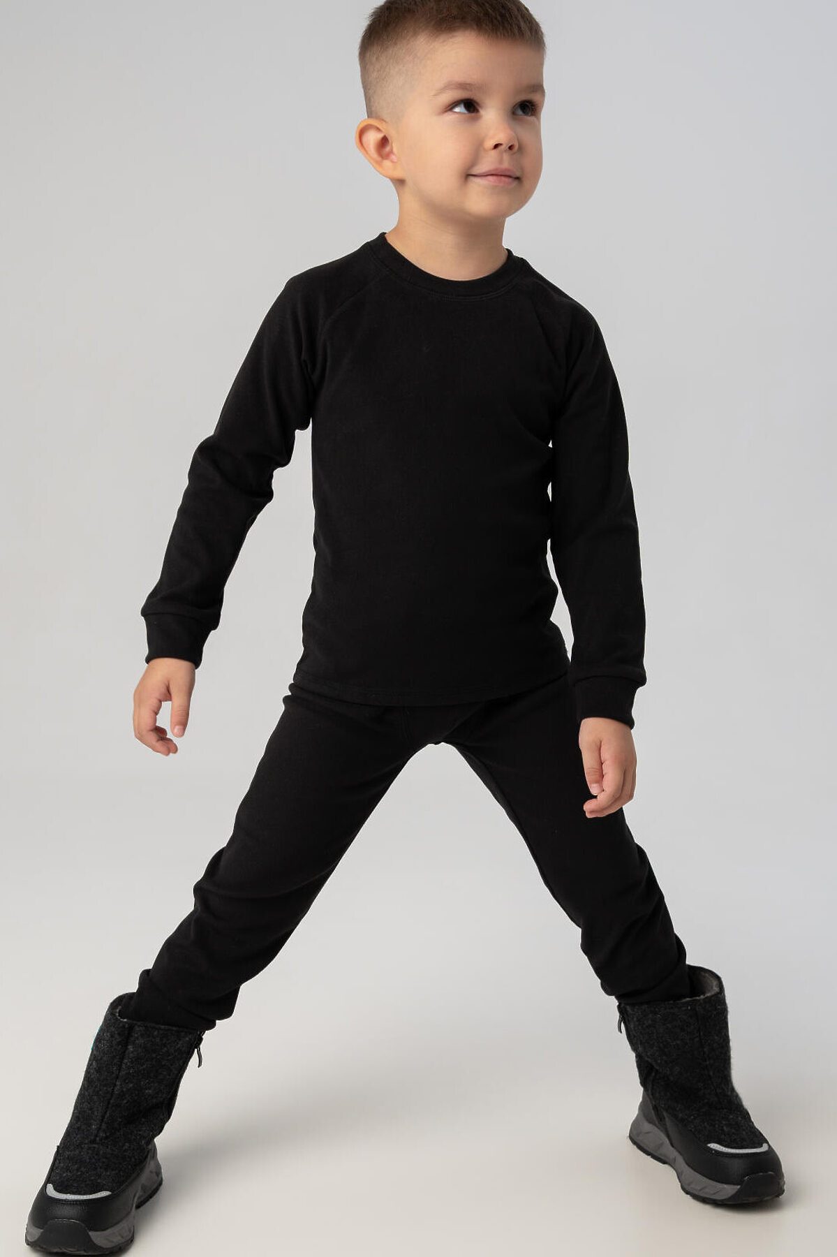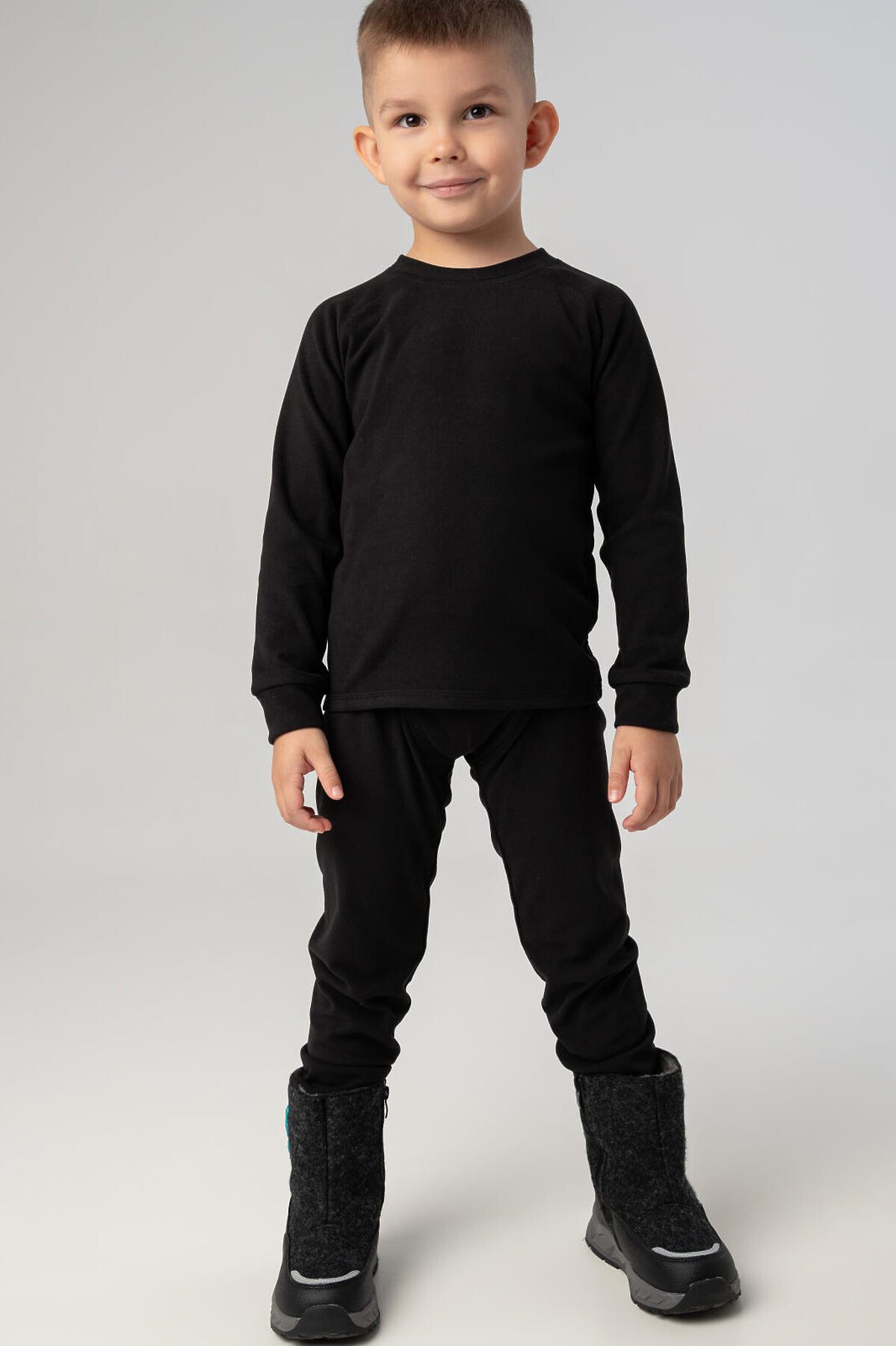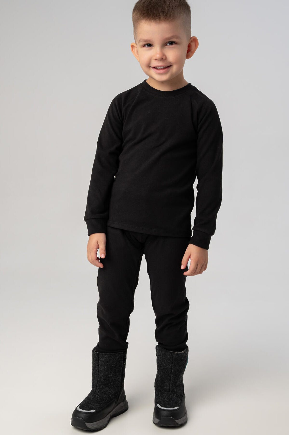 Детское однотонное черное термобельё для мальчика от PlayToday — идеальный первый слой для холодного сезона. Комплект из кофты и брюк с начёсом сохраняет тепло тела, эффективно отводит влагу и быстро сохнет. Мягкий эластичный материал не сковывает движений и обеспечивает комфортную посадку, а плоские швы не натирают даже при длительной носке. Благодаря удобному крою и нежной к телу ткани, термобельё отлично подходит как для прогулок на свежем воздухе, так и для активных занятий спортом. Преимущества модели: + плотность 240гр/м2, микроначес + начёс с внутренней стороны — дополнительное тепло и мягкость + отвод влаги и терморегуляция — сохраняет комфорт при любой активности + эластичная ткань — не сковывает движений + плоские швы — отсутствие натирания и максимальный комфорт + комфортная посадка — идеально сидит по фигуре + универсальный цвет Когда и как носить: Термобельё от PlayToday — это must-have для осени и зимы. Используйте как базовый слой под одежду в холодную погоду: на прогулки, в поездки, в детский сад или на спорт. Оно подойдёт для активных игр на улице, лыжных тренировок, катания на санках или просто длительных зимних прогулок. Благодаря быстрому отводу влаги и теплоизоляции ребёнку будет комфортно даже при смене активности. Советы по стилю: Термобельё отлично сочетается с утеплёнными мембранными комплектами и комбинезонами, зимними брюками и куртками PlayToday. Для создания уютного и функционального образа добавьте флисовую толстовку или жилет. Можно использовать и как пижаму для холодных ночей — мягкий начёс делает комплект особенно приятным к телу. Размеры: 98-122 для мальчиков дошкольного и младшего школьного возраста от 3 до 7 лет. Сделайте холодное время года тёплым и комфортным для вашего ребёнка — с термобельём от PlayToday ничто не помешает активным зимним приключениям!