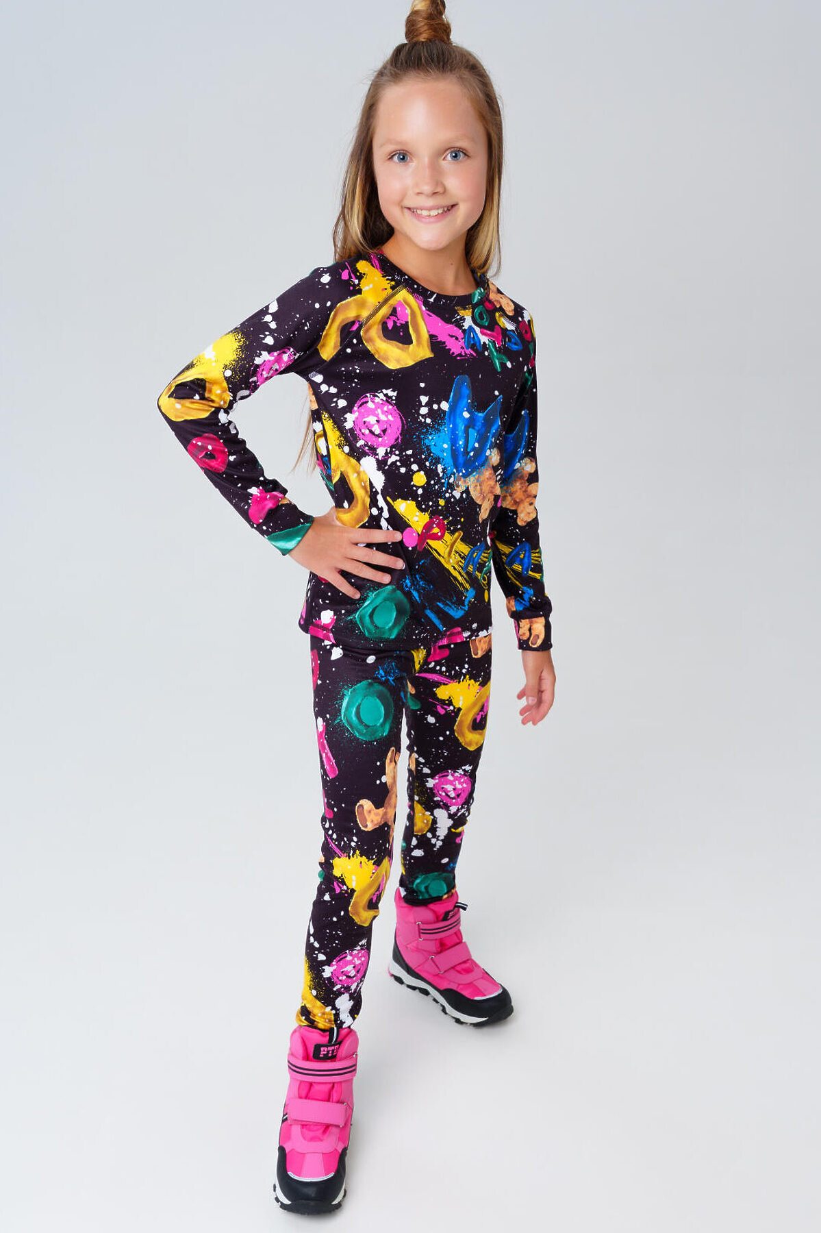 Термобельё для девочки подростка от PlayToday — идеальный первый слой для холодного сезона. Комплект из кофты и брюк с начёсом сохраняет тепло тела, эффективно отводит влагу и быстро сохнет. Мягкий эластичный материал не сковывает движений и обеспечивает комфортную посадку, а плоские швы не натирают даже при длительной носке. Благодаря удобному крою и нежной к телу ткани, термобельё отлично подходит как для прогулок на свежем воздухе, так и для активных занятий спортом. Преимущества модели: + плотность 220гр/м, начес + начёс с внутренней стороны — дополнительное тепло и мягкость + отвод влаги и терморегуляция — сохраняет комфорт при любой активности + эластичная ткань — не сковывает движений + плоские швы — отсутствие натирания и максимальный комфорт + комфортная посадка — идеально сидит по фигуре Когда и как носить: Термобельё подростковое от PlayToday — это must-have для осени и зимы. Используйте как базовый слой под одежду в холодную погоду: на прогулки, в поездки, в школу или на спорт. Оно подойдёт для активных игр на улице, лыжных тренировок, катания на санках или просто длительных зимних прогулок. Благодаря быстрому отводу влаги и теплоизоляции ребёнку будет комфортно даже при смене активности. Советы по стилю: Термобельё отлично сочетается с утеплёнными мембранными комплектами и комбинезонами, зимними брюками и куртками PlayToday. Для создания уютного и функционального образа добавьте флисовую толстовку или жилет. Можно использовать и как пижаму для холодных ночей — мягкий начёс делает комплект особенно приятным к телу. Размеры: 128-170 для девочек подростков и школьниц от 8 до 17 лет. Сделайте холодное время года тёплым и комфортным для вашего ребёнка — с термобельём от PlayToday ничто не помешает активным зимним приключениям!