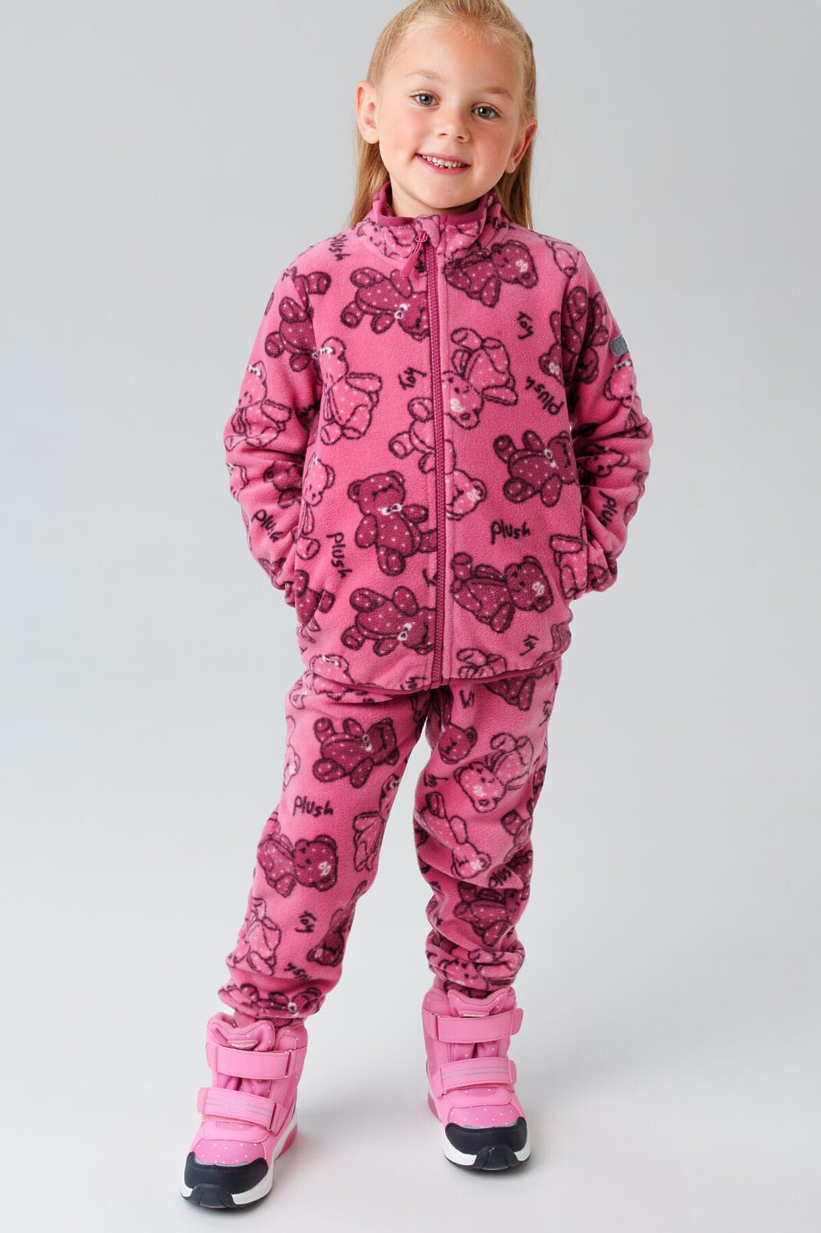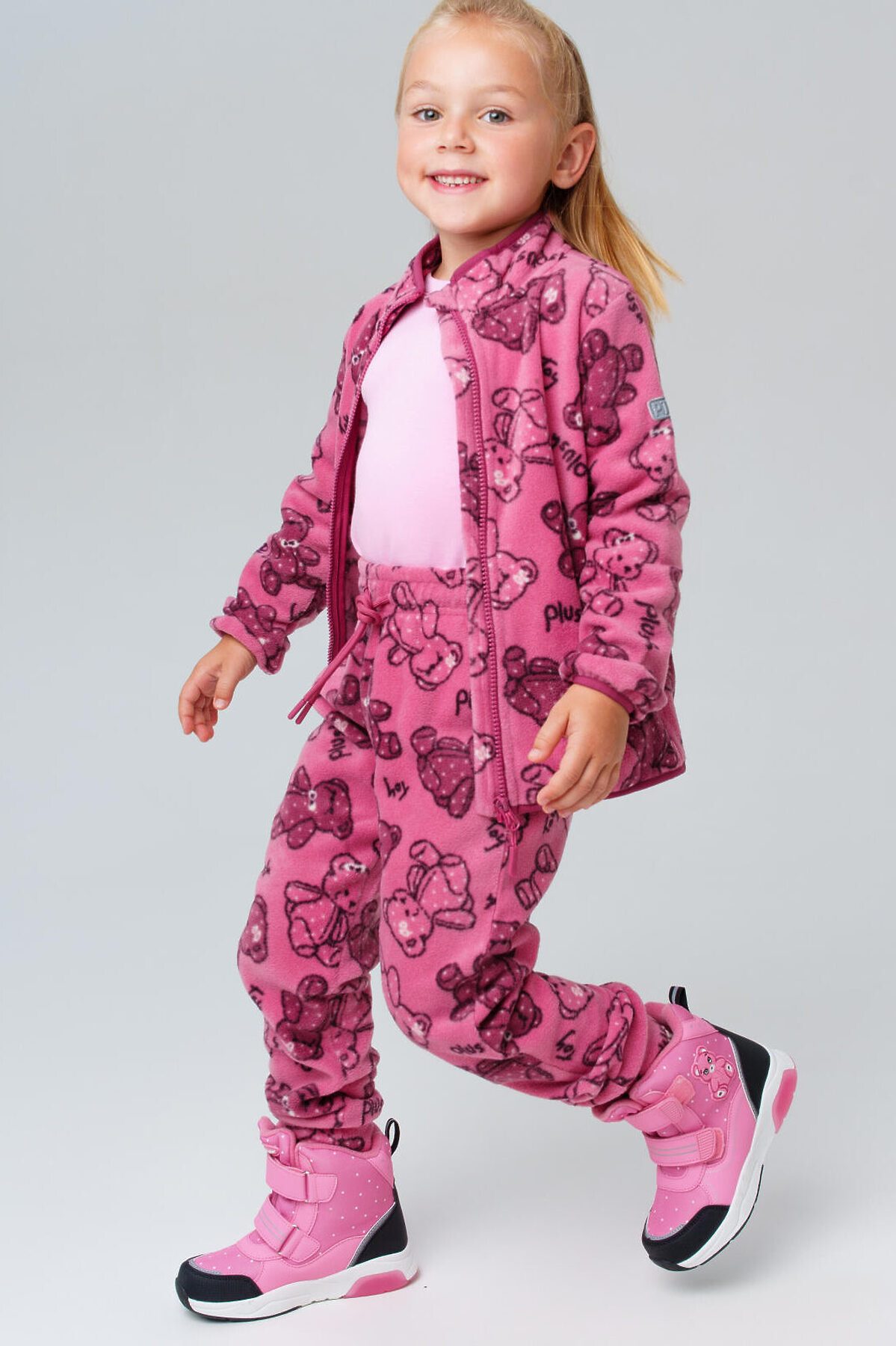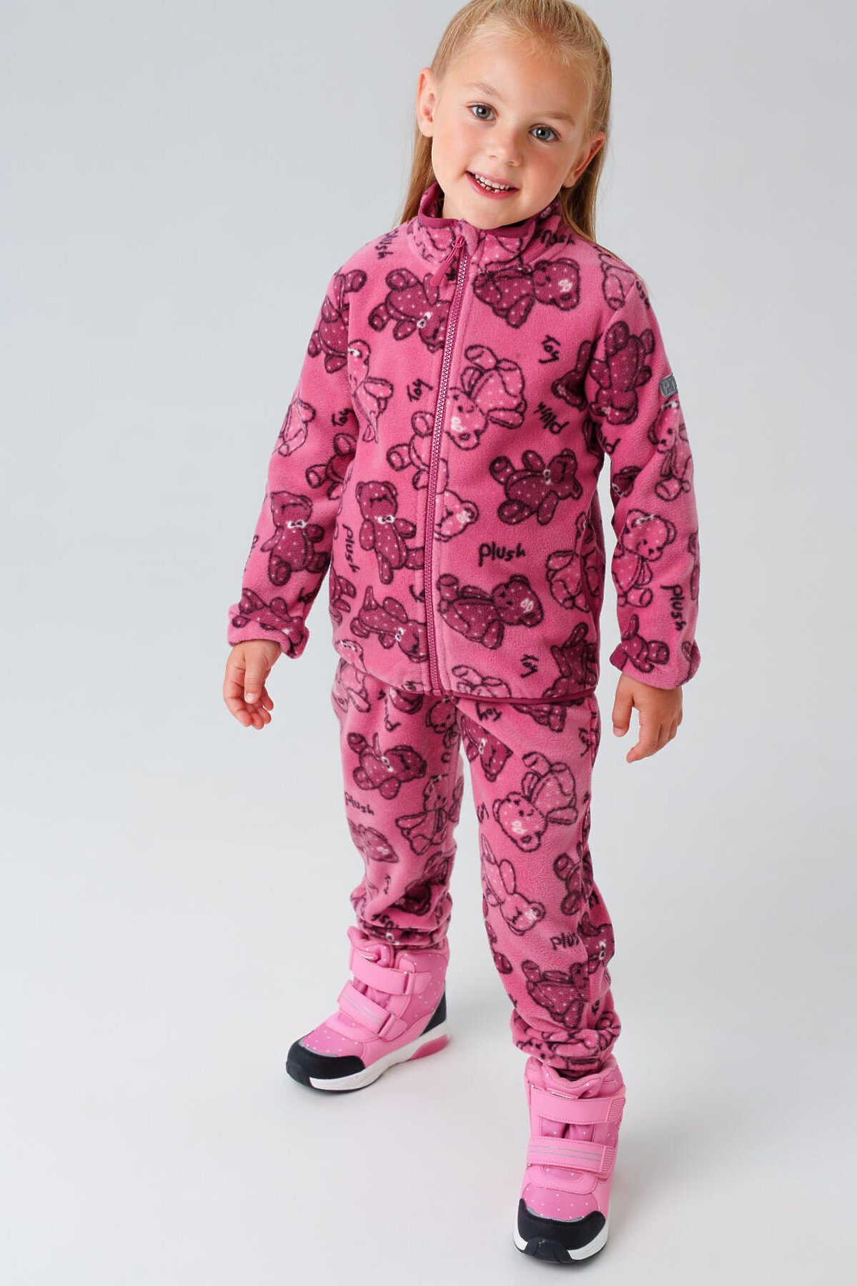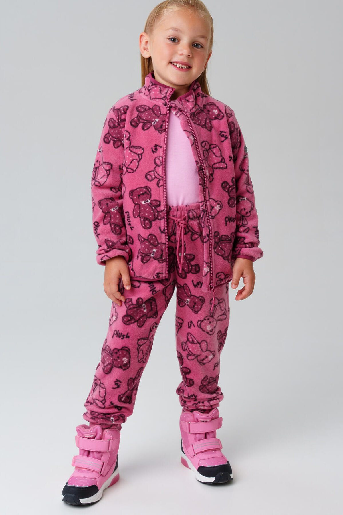 Детский трикотажный флисовый комплект костюм из толстовки флиски на молнии и флисовых брюк на резинке для девочки от PlayToday — уют, тепло и свобода движений каждый день. Преимущества модели: + тёплый флис с начёсом (260 г/м²) — мягкий, дышащий, сохраняет тепло + куртка на молнии — легко надевается + два боковых кармана на куртке — удобно для мелочей + резинки на манжетах и по низу брюк — надёжная посадка и защита от холода + штаны резинке со шнурком + универсальный комплект — можно носить вместе или по отдельности Комплект состоит из куртки на молнии и удобных брюк, выполнен из мягкого флиса линии WARM плотностью 260 г/м². Материал с тёплым начёсом внутри обеспечивает отличную терморегуляцию и комфорт в прохладную погоду. Этот комплект подойдёт как для улицы, так и для помещения — идеально для детского сада, прогулок и активных игр, или в качестве поддевы под верхнюю одежду. Этот флисовый костюм для девочки станет отличным решением для прохладных осенних и весенних дней, а также как утепляющий слой под верхнюю одежду зимой. Прекрасно подходит для дома, сада, поездок и прогулок на свежем воздухе. Если вы ищете тёплый костюм для девочки из флиса, этот вариант объединяет в себе стиль, комфорт и функциональность. Советы по стилю: Комплект отлично сочетается с курткой, жилетом, шапкой-бини и спортивной обувью. Можно надевать под мембранный комбинезон или комбинировать с термобельём в холодную погоду. Универсальный базовый образ для активного ребёнка. размерный ряд: модель представлена на рост 98–122 см — для девочке 3–7 лет.