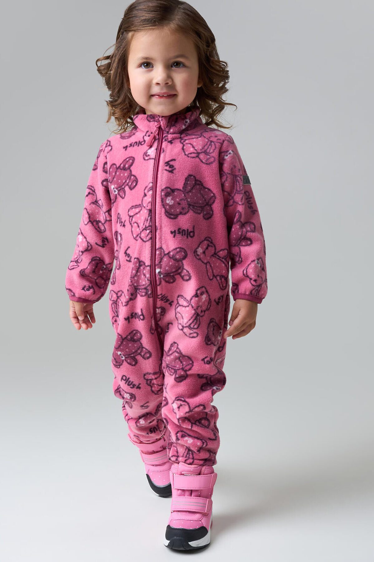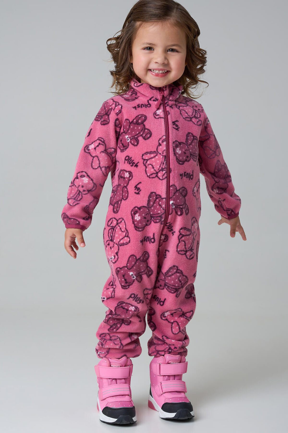 Детский флисовый трикотажный комбинезон для девочки от PlayToday — тепло, комфорт и защита в каждом элементе. Преимущества модели: + тёплый флис с начесом (260 г/м²) — сохраняет тепло и не сковывает движения + цельный дизайн комбинезона — дополнительная защита от холода + резинки на манжетах — предотвращают попадание ветра и холода Комбинезон выполнен из мягкого флиса линии WARM плотностью 260 г/м² с начесом, который отлично сохраняет тепло и обеспечивает комфорт ребёнку в прохладную погоду. Эластичные резинки на манжетах надёжно фиксируют рукава, не пропуская холодный воздух и ветер. Этот флисовый комбинезон — идеальный выбор для детской верхней одежды, подходит для девочек младшего возраста. Отлично подойдёт как утеплённый слой для холодной погоды, для активных игр на улице и прогулок в осенне-зимний период. Модель удобна в носке и не стесняет движений, что особенно важно для малышей. Советы по стилю: Надевайте под зимнюю куртку или комбинезон, а в межсезонье — как самостоятельный утепляющий слой. Дополните образ тёплыми аксессуарами — шапкой, варежками и шарфом, чтобы создать полный и комфортный комплект для холодного сезона. Размерный ряд: модель представлена в размерах 80–92 — для девочек от 1 года до 3 лет.