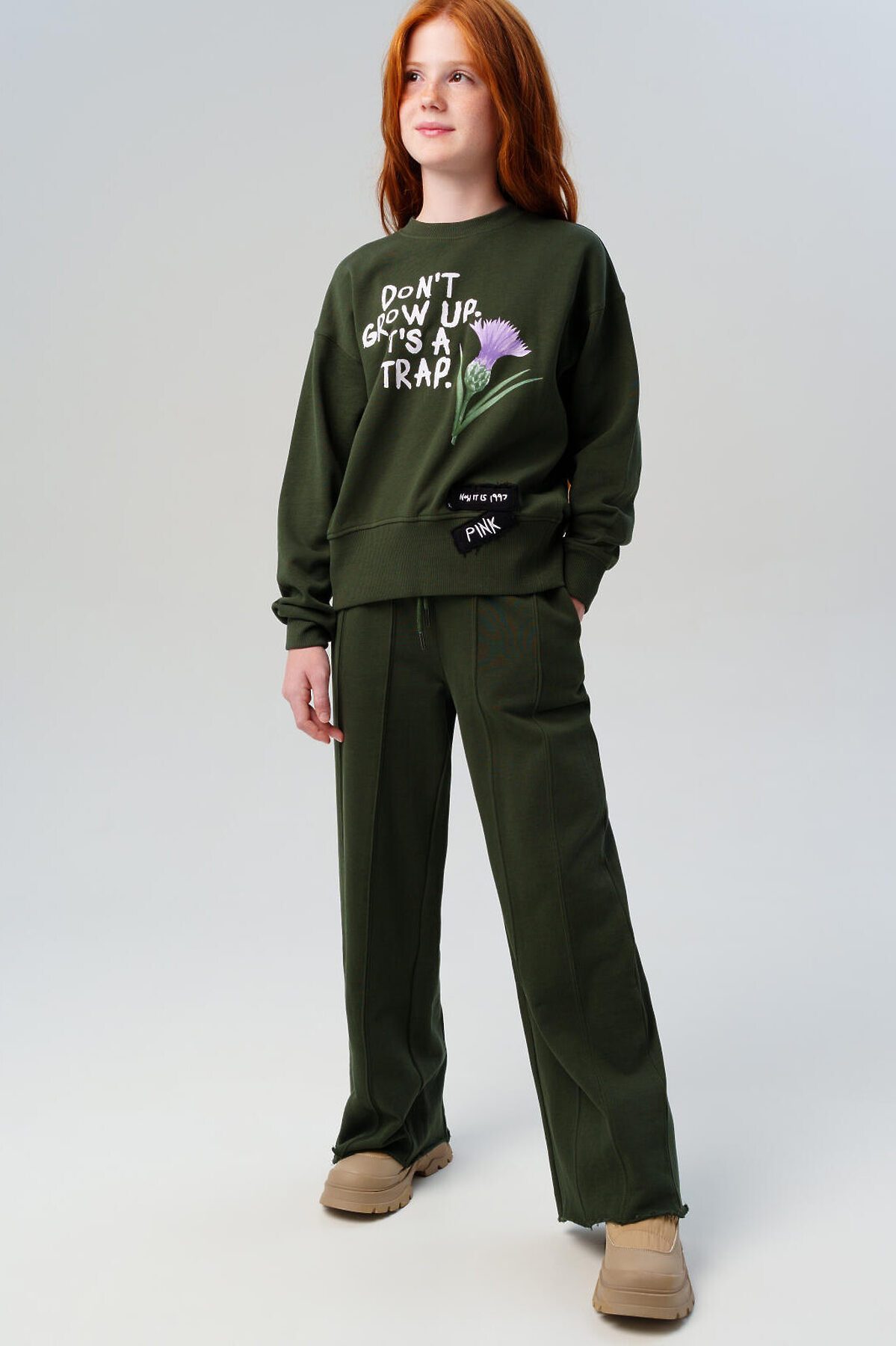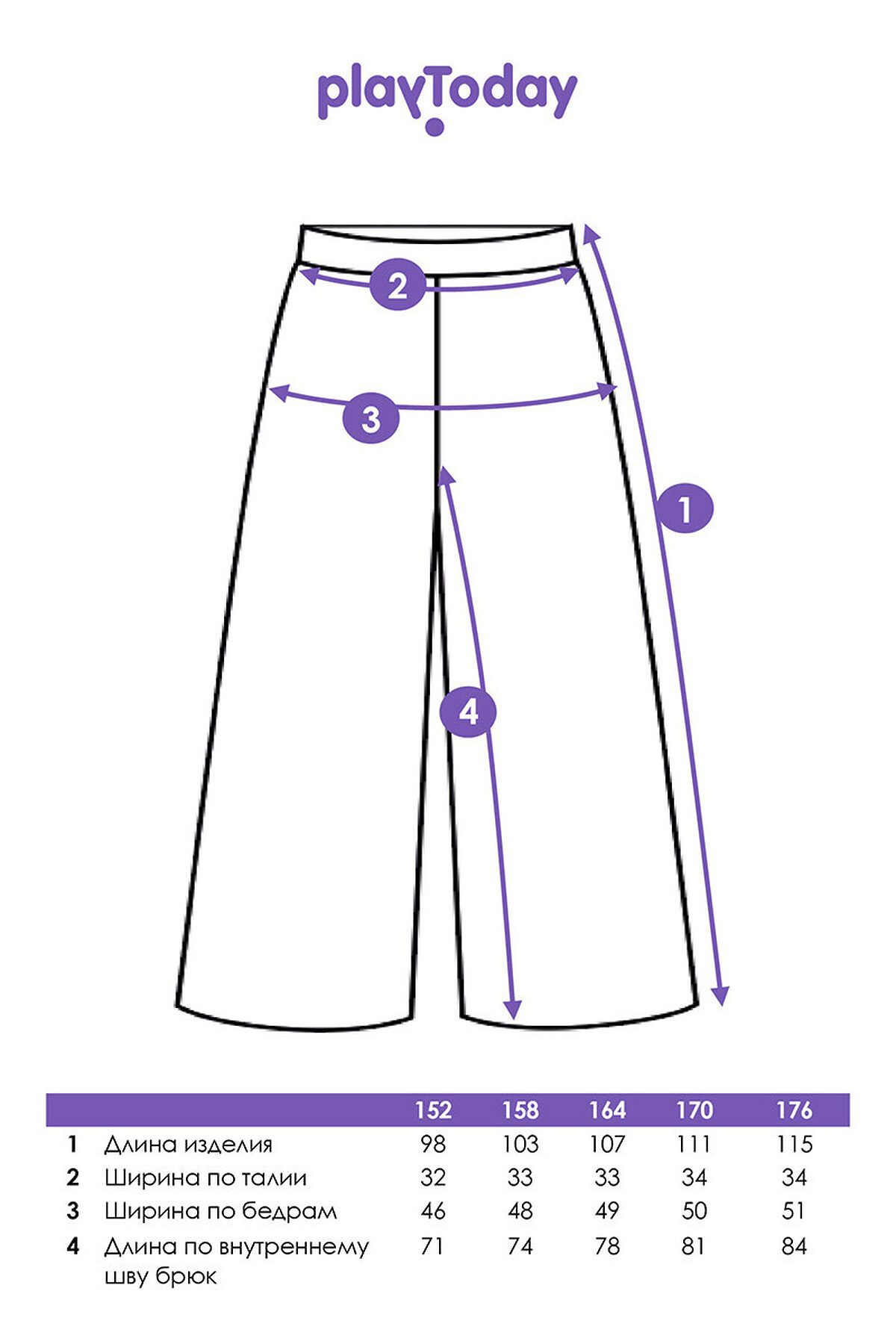 Трикотажные брюки палаццо на резинке для девочки подростка от PlayToday. Преимущества модели: + Трикотажные штаны для девочек подростков — базовый элемент гардероба + Брюки на резинке со шнурком — комфортная посадка, легко регулируются + 2 боковых кармана — практично и удобно + Брюки для школы, прогулок, спорта и отдыха + Мягкий и приятный к телу материал — комфорт на целый день + Свободный крой — не стесняет движений, отлично подходит для активных девочек + Размеры от 146 до 176 см — для подростков разного роста + Лаконичный дизайн — легко комбинируется с худи, футболками, джемперами Универсальные брюки на каждый день для подростков. Изготовлены из мягкого дышащего трикотажа, отлично сидят по фигуре, не сковывают движения и легко сочетаются с верхом. Когда и как носить: Подходят для повседневной носки — в школу, на прогулку, тренировку, в поездку или на отдых. Универсальная модель для демисезона и прохладного лета. Советы по стилю: Носите с толстовками, лонгсливами, футболками, бомберами или джинсовками. Добавьте кроссовки и рюкзак — получится удобный и стильный городской образ в стиле стритвир или спорт-шик. Отличный выбор для модной девочки-подростка! Подходит для девочек от 11 до 17 лет.