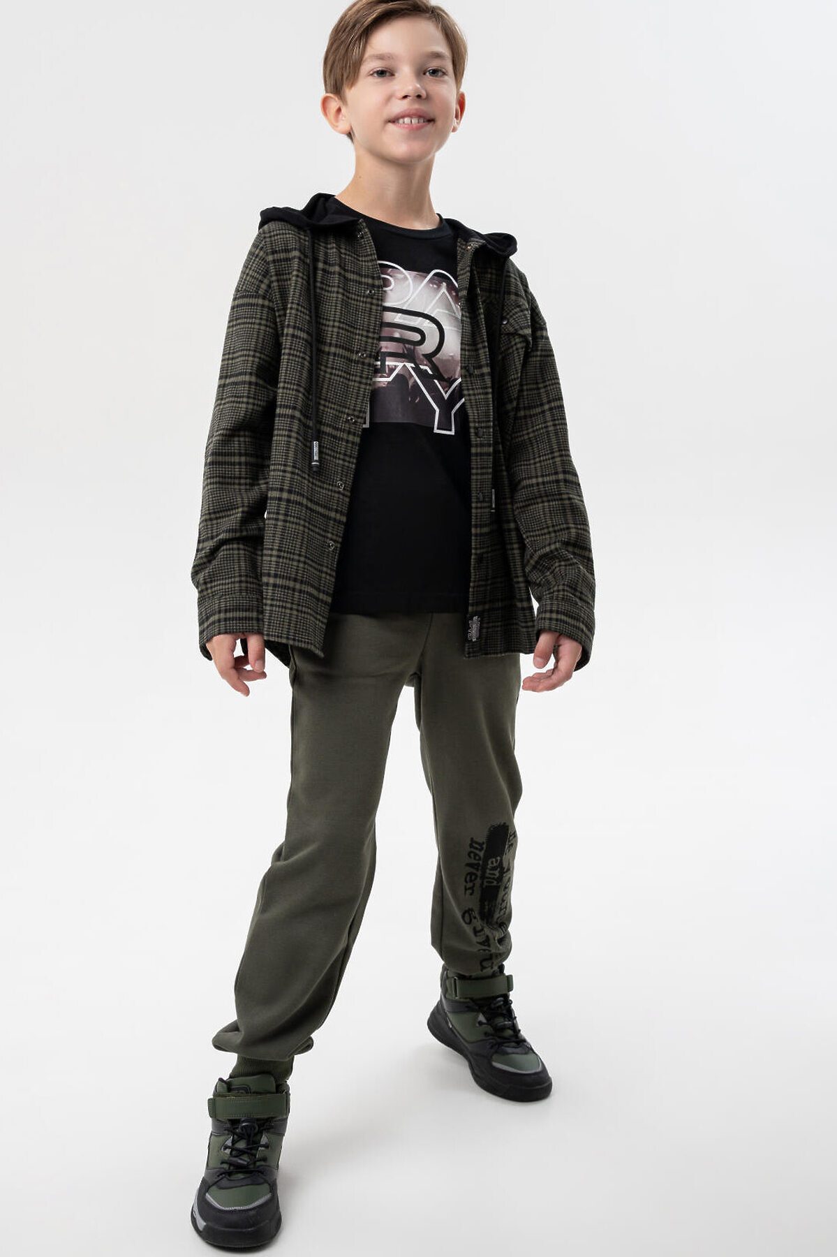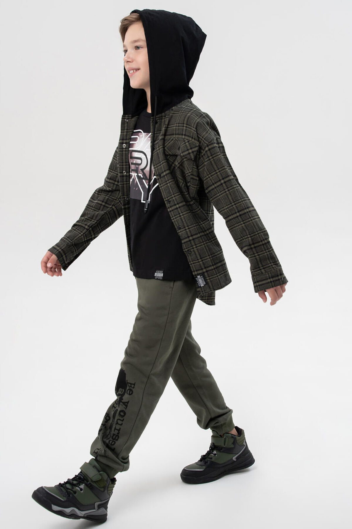 Фланелевая рубашка в клетку для мальчика подростка от PlayToday — стильная и практичная вещь, которая станет базой в гардеробе школьника. Натуральная фланель из 100% хлопка дарит мягкость, тепло и комфорт в носке, а капюшон добавляет современный спортивный акцент. Преимущества модели: + 100% хлопок — натуральная ткань, дышащая и безопасная для кожи + мягкая фланель — приятна к телу и отлично согревает в прохладную погоду + удобная застежка на кнопки — легко надевать и снимать + накладной карман и стильные принты — современный дизайн + капюшон — защита от ветра и дополнительный комфорт + регулировка капюшона шнурком Когда и как носить: Эта рубашка идеально подойдет для школы, прогулок, встреч с друзьями и повседневных образов. Ее можно носить как самостоятельный элемент с джинсами или брюками, а также использовать как легкую верхнюю одежду поверх футболки. Советы по стилю: Сочетайте рубашку с джинсами и кедами от PlayToday для создания современного подросткового образа или надевайте поверх базовой футболки для многослойного casual-лука. Размеры: 128-176 для мальчиков подростков и школьников от 8 до 17 лет Модная и удобная фланелевая рубашка в клетку с капюшоном — стильное решение для подростков от PlayToday!
