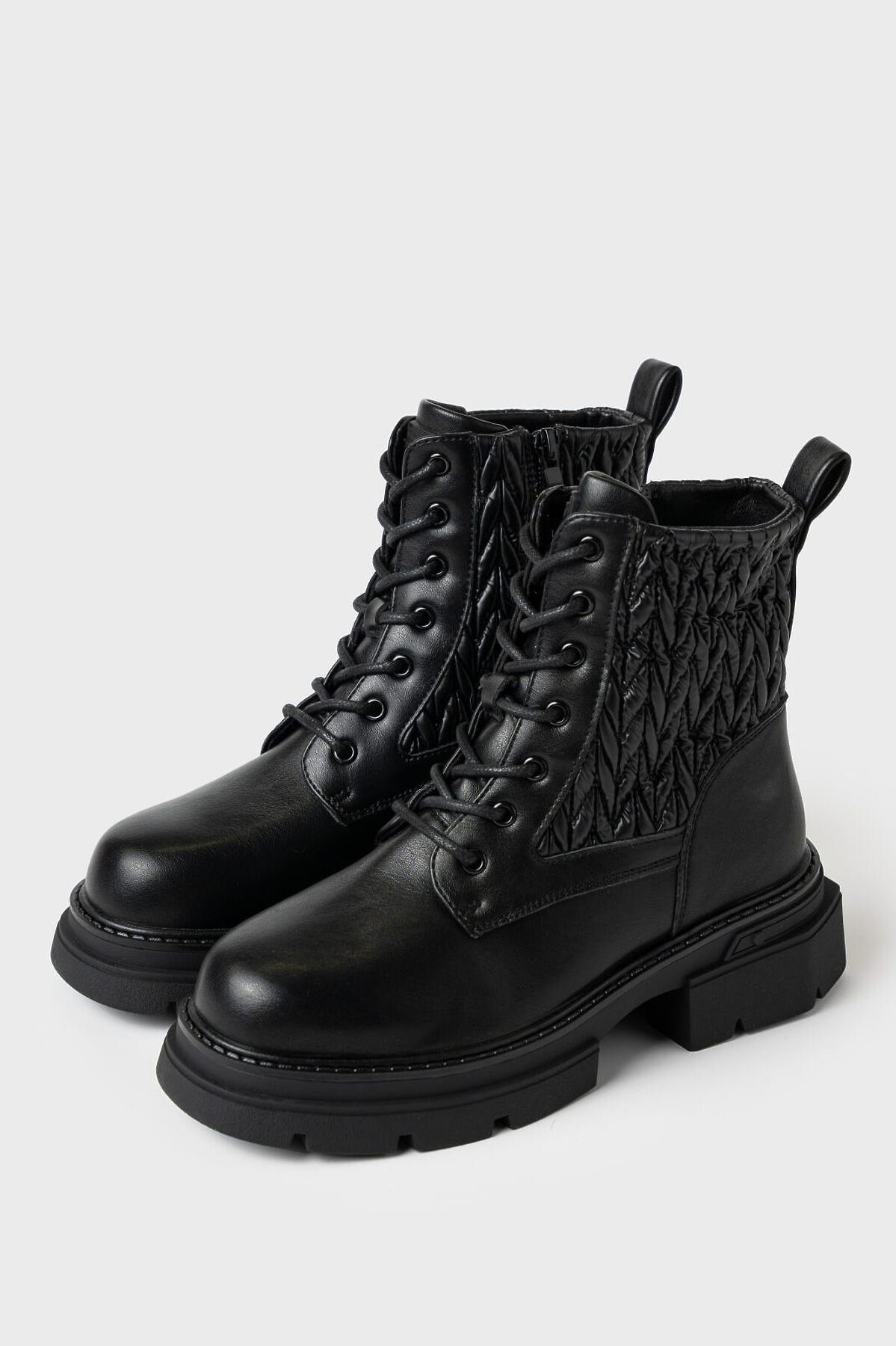 Зимние трендовые ботинки для девочки подростка от PlayToday — тепло, комфорт и стиль в каждом шаге! Преимущества ботинок PlayToday: + верх из прочной искусственной кожи с мягким стёганым голенищем с эффектом вязки — обеспечивает надёжную защиту от холода и придаёт образу модный акцент + утеплённая подкладка и съёмная стелька из шерстяного меха (70%) — сохраняют тепло даже в морозы, обеспечивая комфорт при длительной носке + шнуровка и внутренняя молния — удобная посадка, лёгкое надевание и фиксация обуви на ноге + формоустойчивый задник — поддерживает стопу и способствует правильному положению ноги при ходьбе + высокая подошва из ТПР — устойчива к истиранию, не скользит и обеспечивает отличное сцепление с поверхностью + анатомическая колодка — комфорт для повседневной активности и длительных прогулок + модный дизайн с фактурной отделкой — актуальный образ для подростков, которые любят выделяться. Когда и где носить: Идеальны для зимнего сезона. Подходят для школы, прогулок, поездок и активного отдыха. Рекомендуемая температура: от 0°C до -20°C. Советы по стилю: Сочетаются с утеплёнными леггинсами, джинсами, зимними юбками и парками. Эффект стёганой вязки добавляет интересную фактуру и стильный акцент к любому зимнему образу. Размеры и возраст: Доступны в размерах 32–37. Идеально подойдут для девочек от 8 до 16 лет.