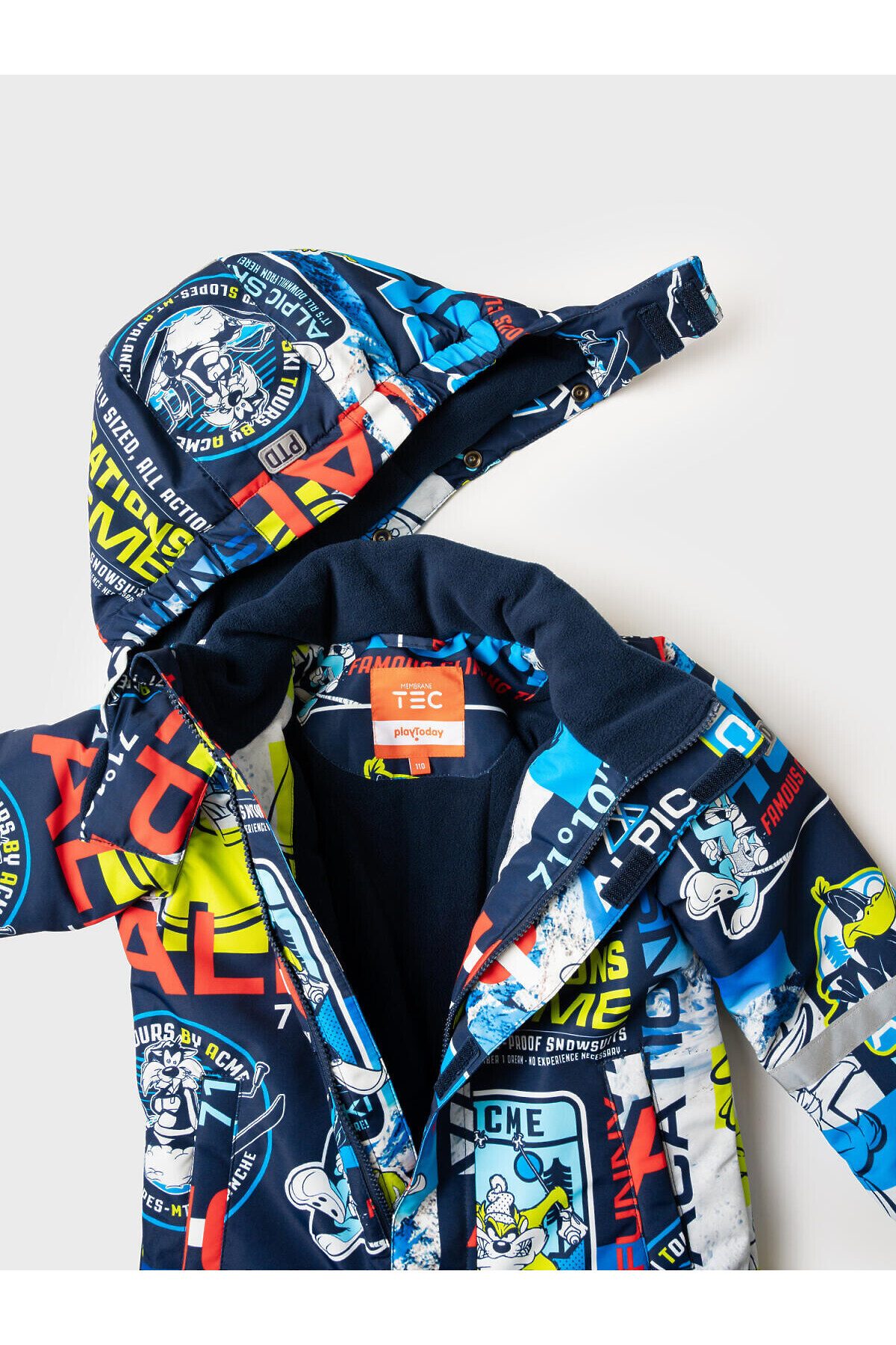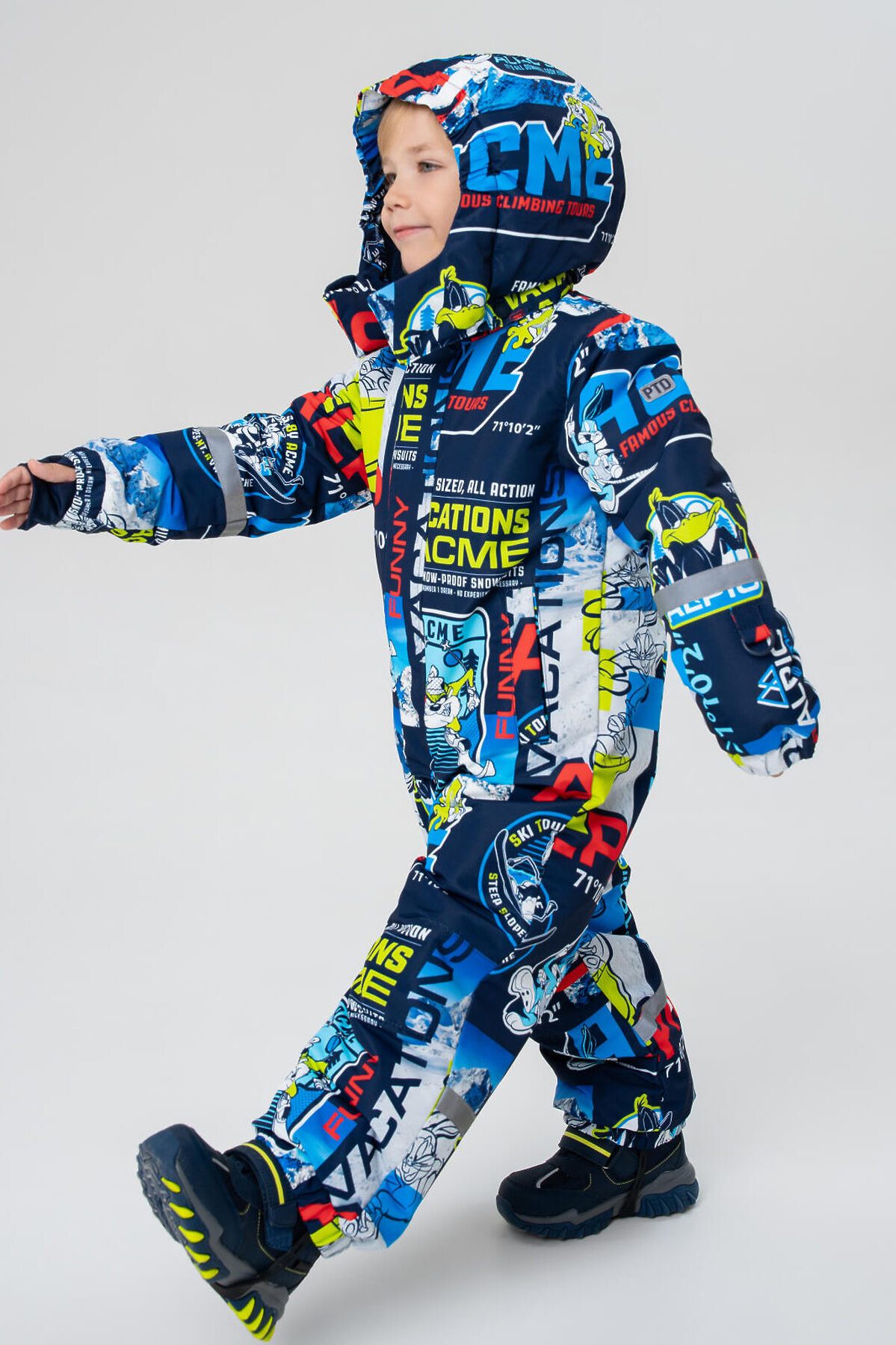 Зимний детский комбинезон Луни Тюнз для мальчика от PlayToday — надежная защита и комфорт в холодное время года с температурным режимом от –5 до –20 °C. Эта модель создана специально для активных детей, которым важны тепло, свобода движений и практичность. Преимущества модели: + температурный режим от –5 до –20 °C — идеален для холодных зимних дней + мембрана 5000*5000 — высокая защита от ветра и влаги при отличной воздухопроницаемости + мягкая флисовая подкладка — сохраняет тепло и обеспечивает комфорт + внешняя ветрозащитная планка на липучке + съемный капюшон на резинке — удобно регулируется и надежно защищает от непогоды + утяжка по талии со стопперами — обеспечивает идеальную посадку и удержание тепла + рукава на резинке и эластичный манжет с прорезью для пальца — препятствуют проникновению холода и снега + карманы на липучке — удобные и безопасные для хранения мелочей + крепления для варежек/перчаток на рукавах + силиконовые штрипки — фиксируют брючины комбинезона на обуви, предотвращая попадание снега + светоотражающие элементы Размерный ряд: 98-122 см — оптимально для мальчиков дошкольного и младшего школьного возраста от 3 до 7 лет. Когда носить: Идеально подходит для прогулок на улице, зимних игр, походов в школу или детский сад в холодный сезон. Советы по стилю: Сочетайте комбинезон с яркими шапками, варежками и утепленной обувью. Добавьте шарф и теплый свитер, чтобы создать стильный и комфортный зимний образ. PlayToday заботится о том, чтобы ваш ребенок оставался активным и защищённым в любую погоду!