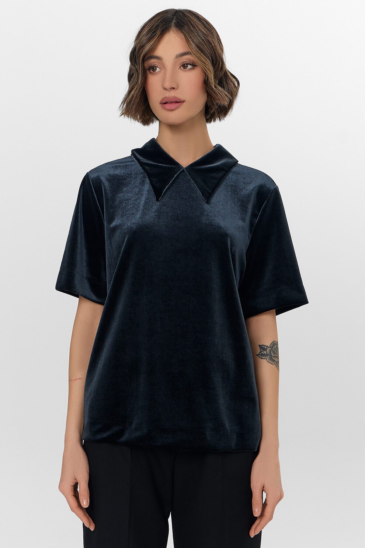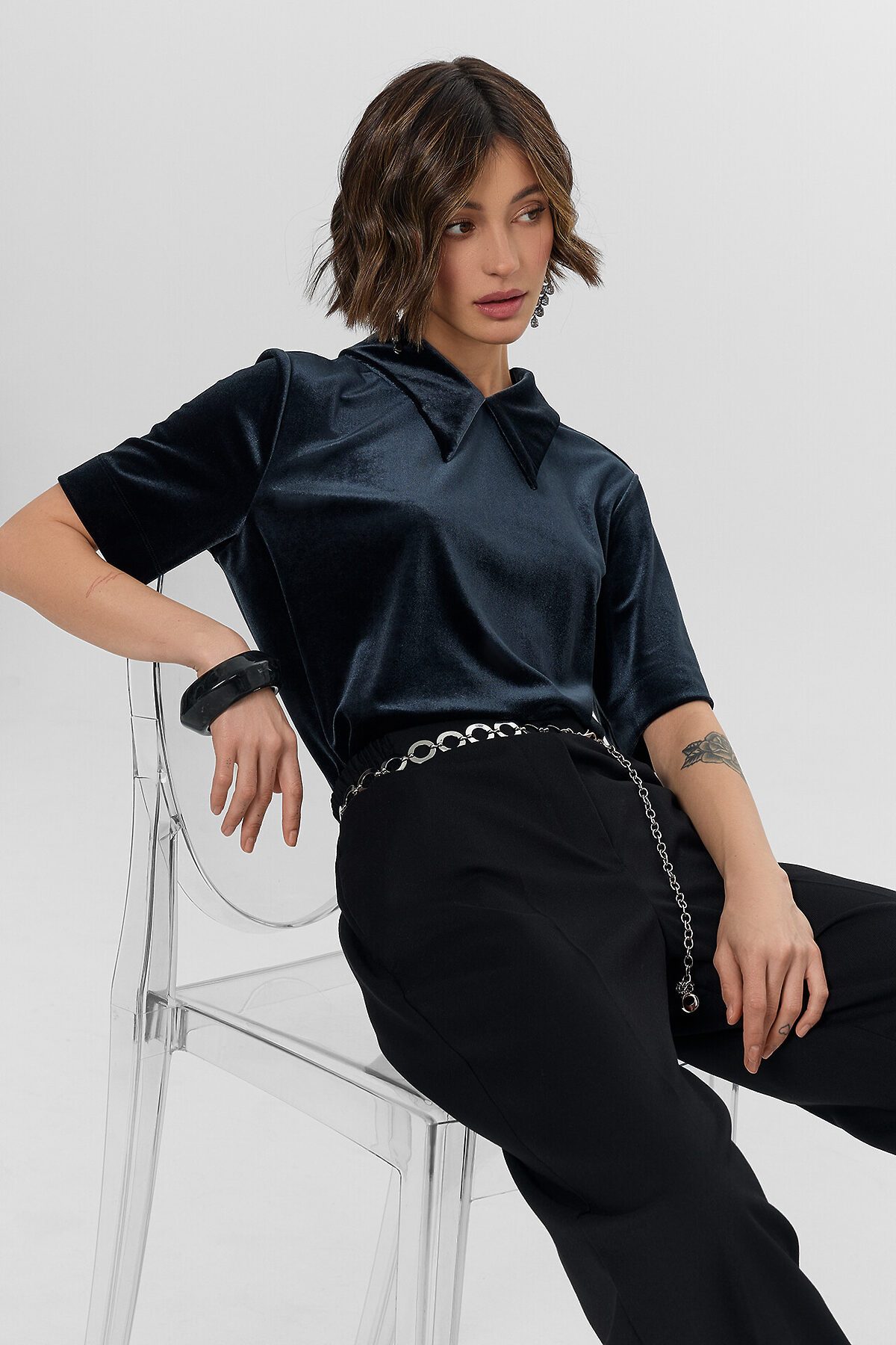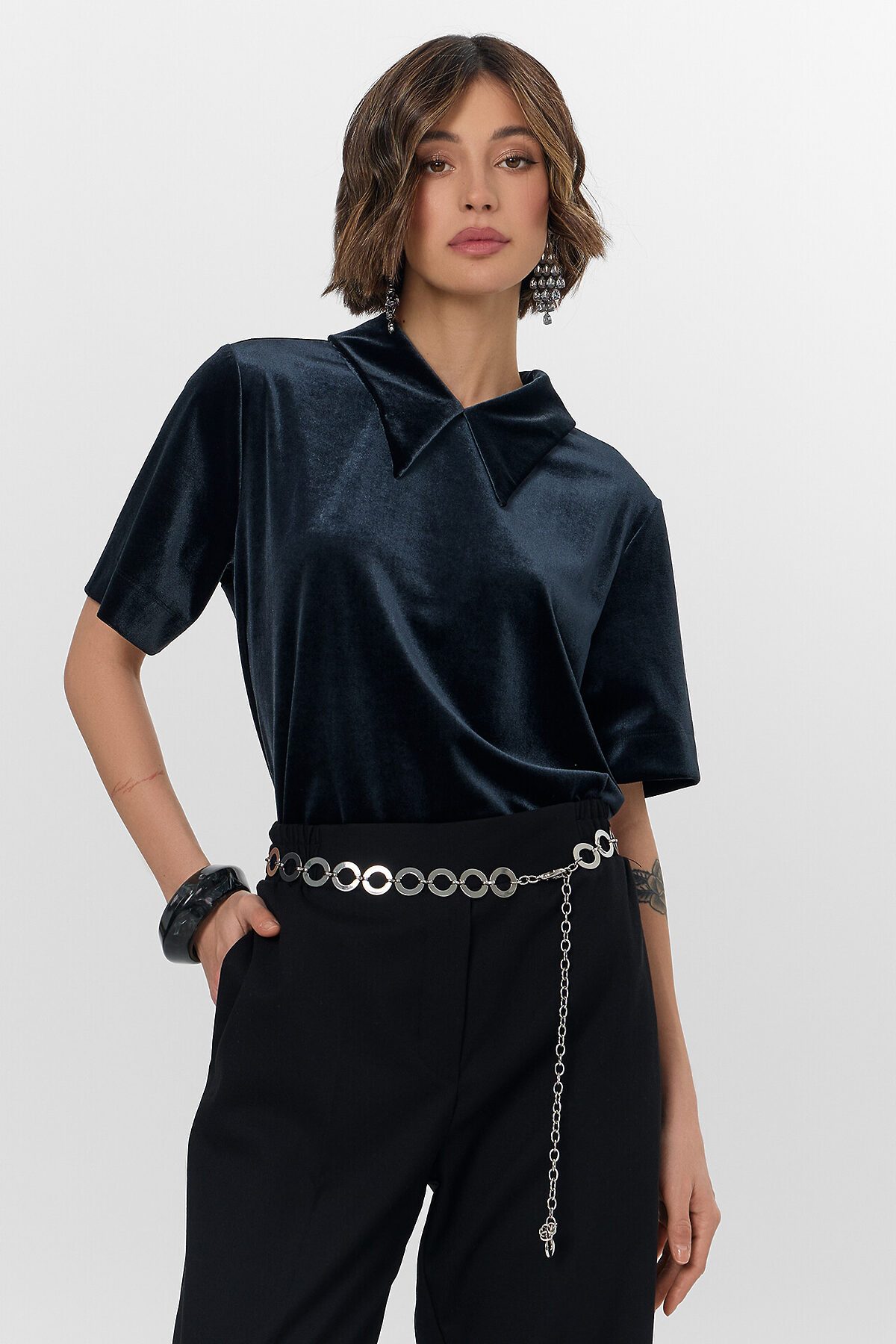 Женское поло прямого кроя станет универсальным решением для новогоднего торжества и праздничных мероприятий. Свободный силуэт без боковых швов обеспечивает комфорт в течение всего вечера. Короткие рукава и отложной воротник сохраняют элегантный стиль, идеальный для торжественных событий.
