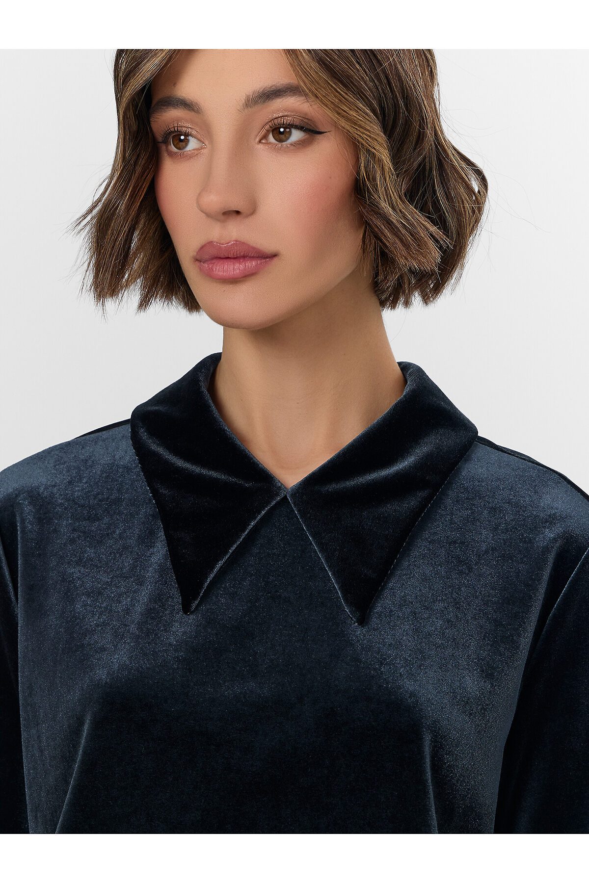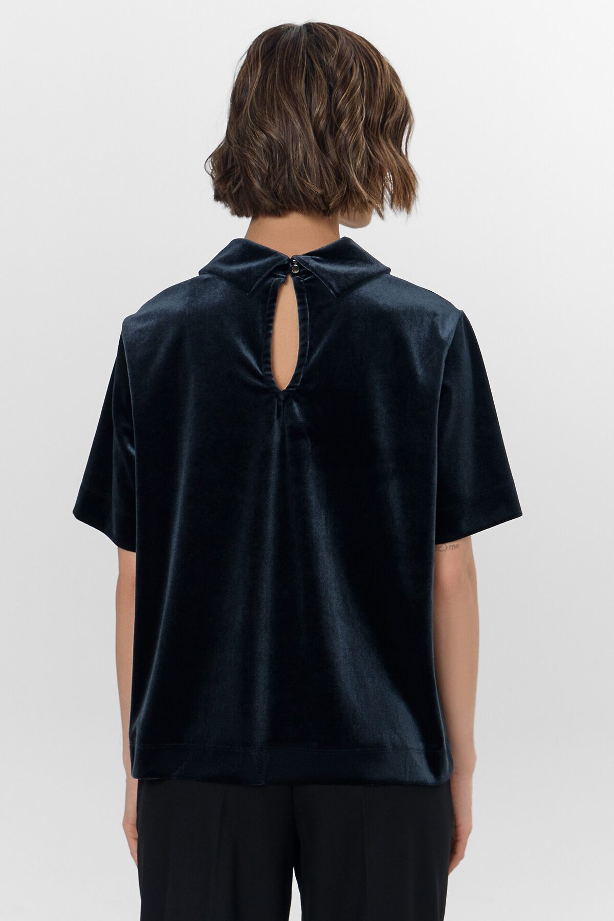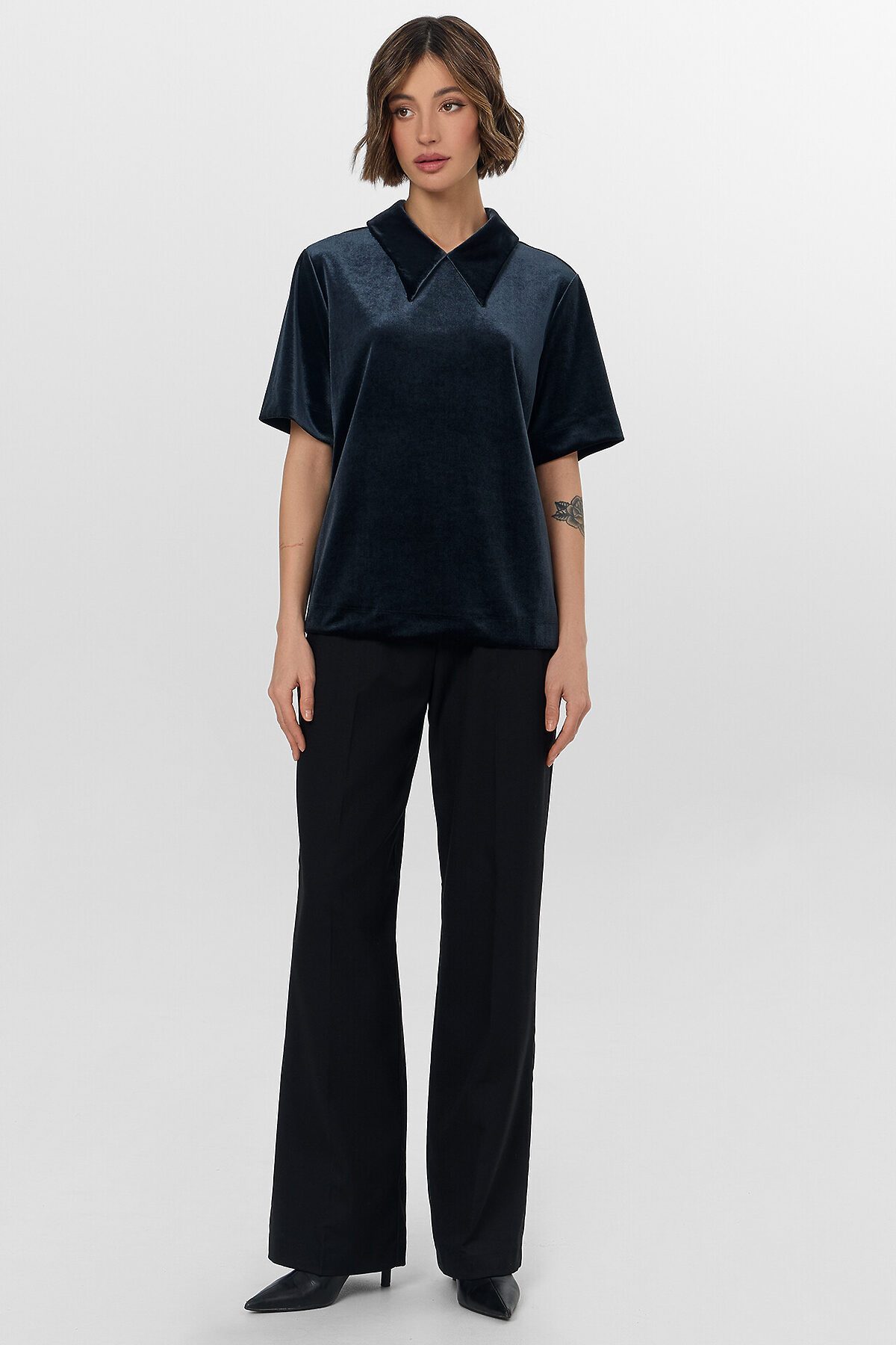 Женское поло прямого кроя станет универсальным решением для новогоднего торжества и праздничных мероприятий. Свободный силуэт без боковых швов обеспечивает комфорт в течение всего вечера. Короткие рукава и отложной воротник сохраняют элегантный стиль, идеальный для торжественных событий.