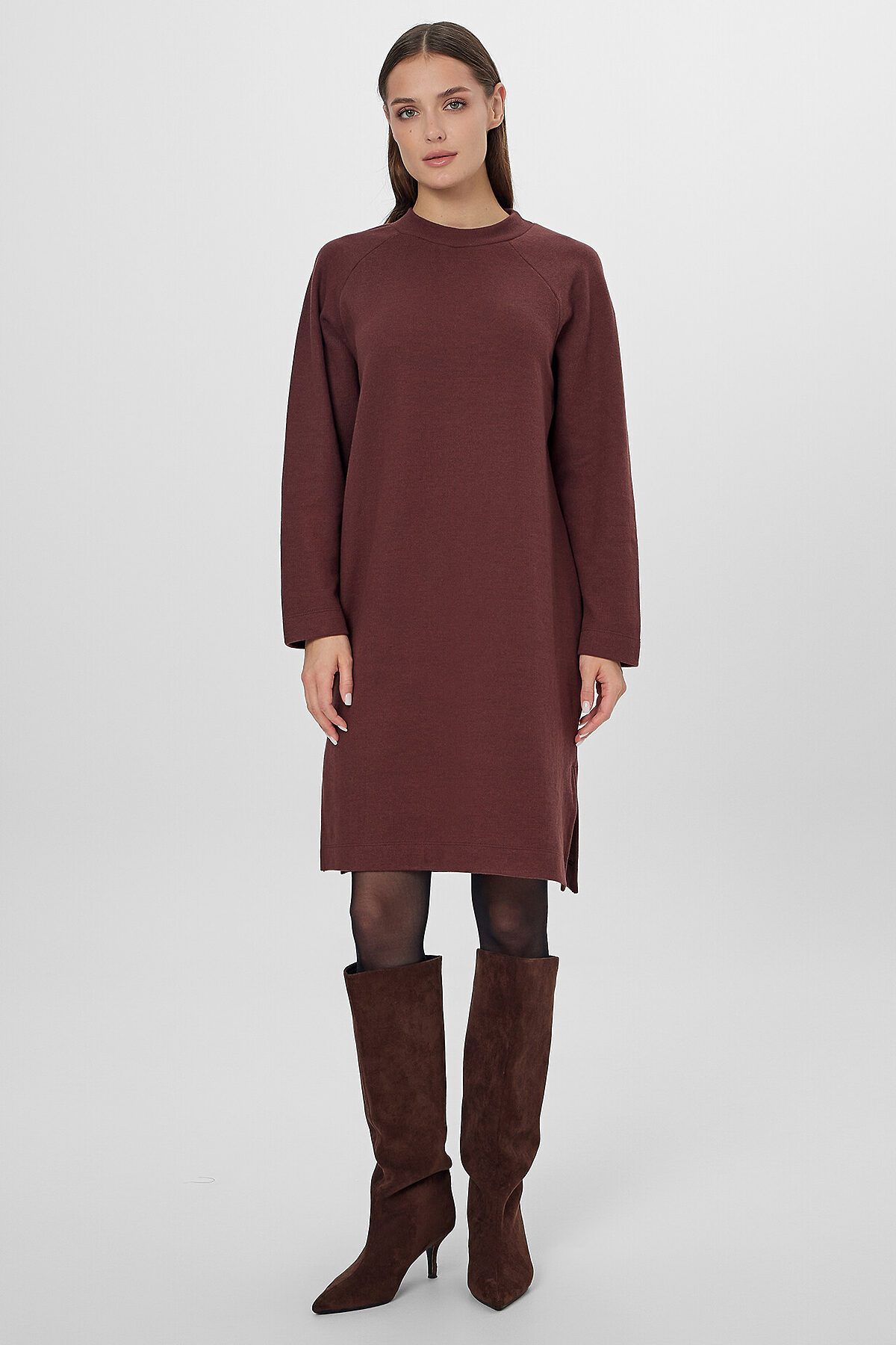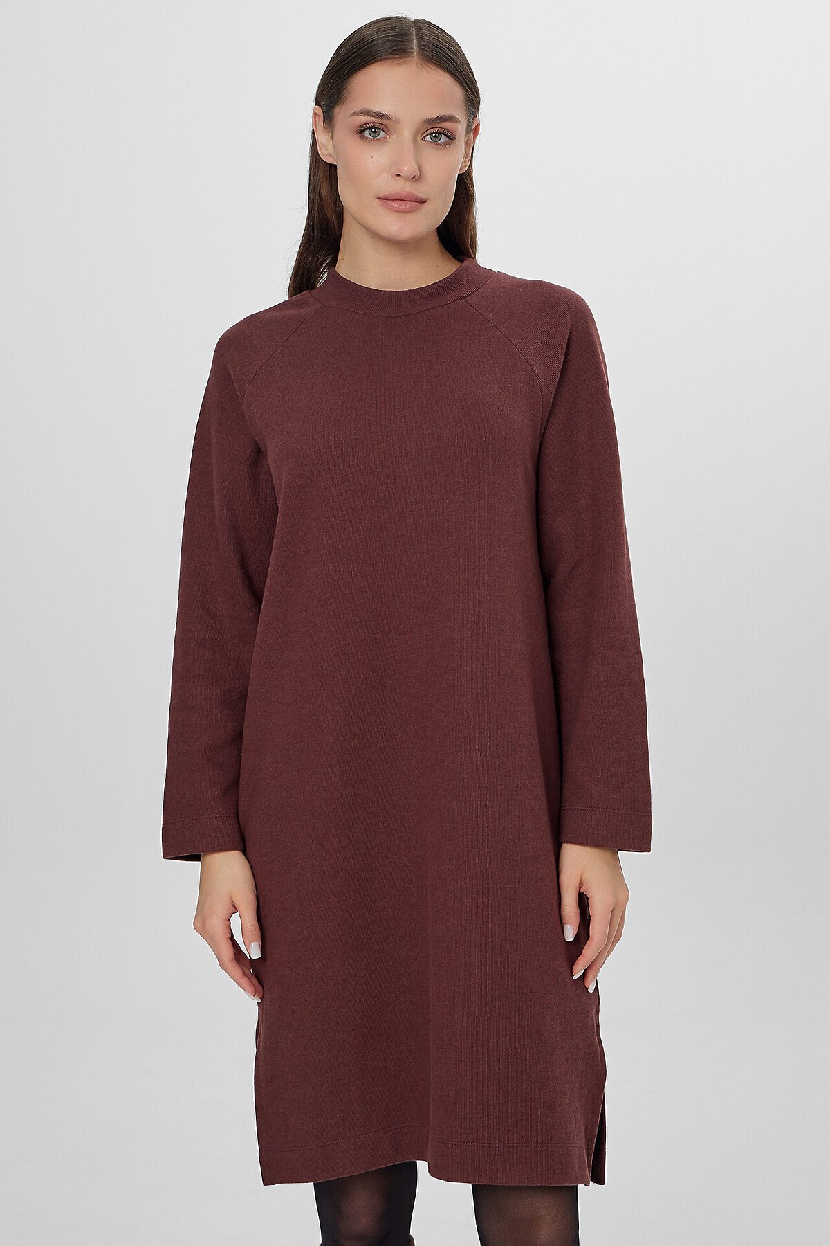 Однотонное платье-свитшот прямого силуэта — это уют и стиль для вашего повседневного гардероба. Модель выполнена из мягкого селаника, который сочетает нежность натуральных волокон и практичность полиэстера. Платье сохраняет тепло, хорошо держит форму и не требует особого ухода.