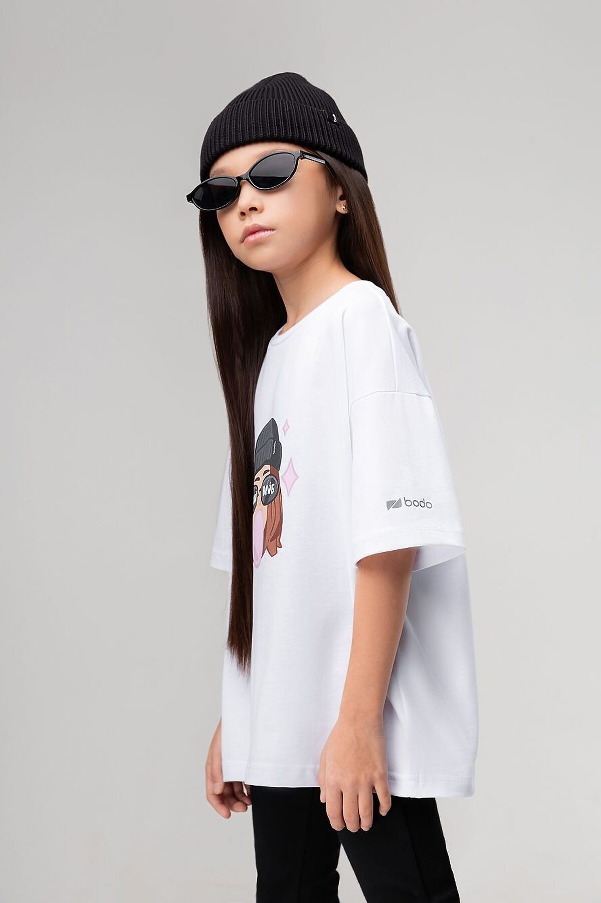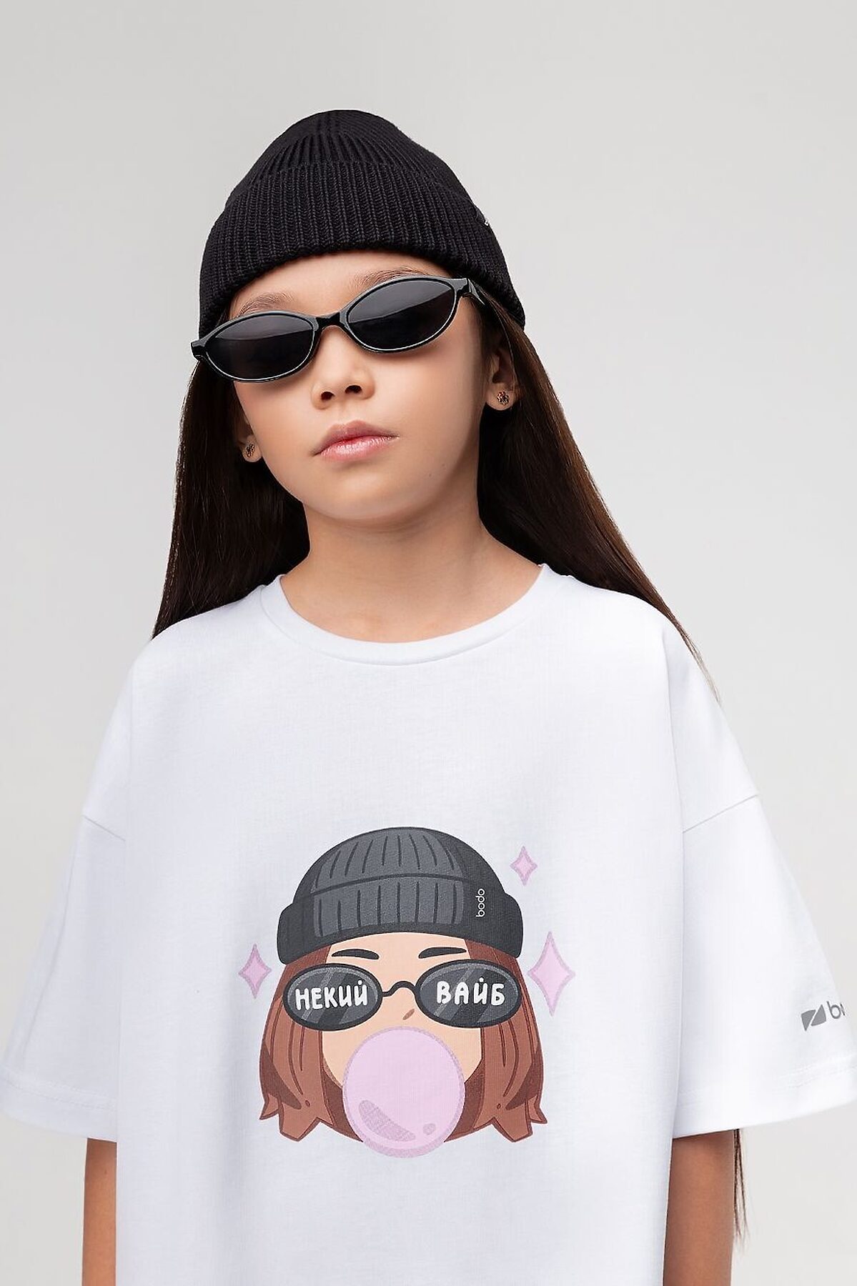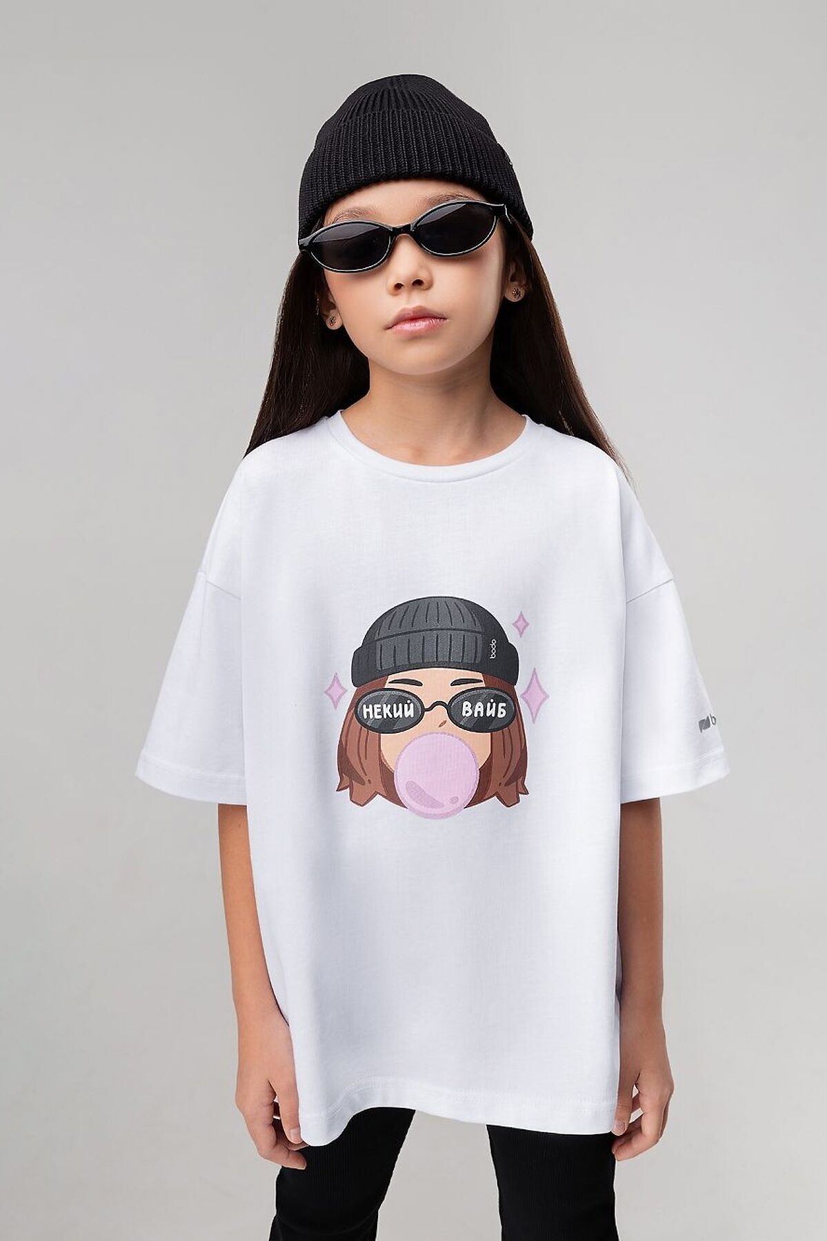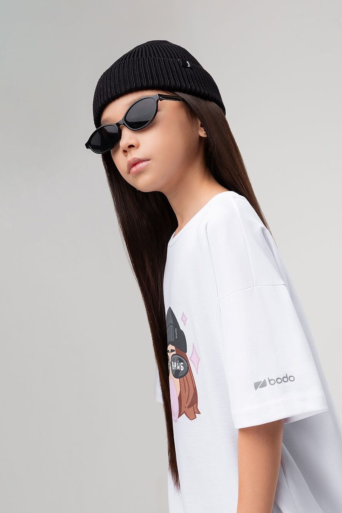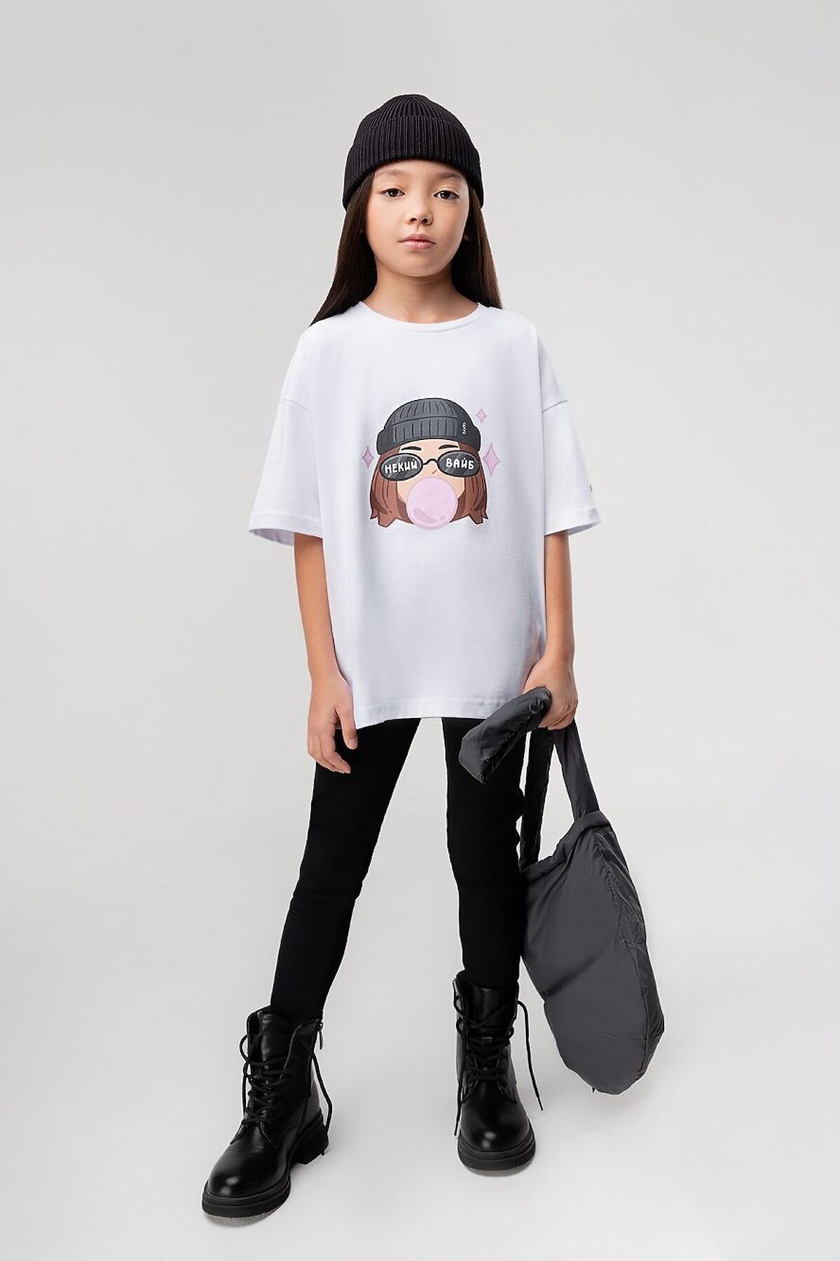 Свобная футболка с коротким рукавом. На полочке принт "Матрешка".
