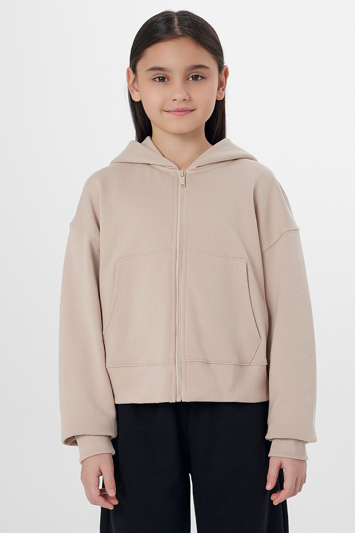 Толстовка с капюшоном для девочек станет отличным выбором для спортивных образов. Длинные рукава с эластичными манжетами обеспечивают дополнительный комфорт и удерживают тепло. Спущенная линия плеча придает изделию расслабленный и современный вид. Застежка на молнии и карман кенгуру добавляют функциональности и удобства, позволяя легко надевать и снимать толстовку и носить с собой необходимые мелочи. Дополните эту толстовку подходящими брюками, чтобы создать полноценный спортивный костюм, который будет идеально подходить для активного отдыха и повседневных дел.