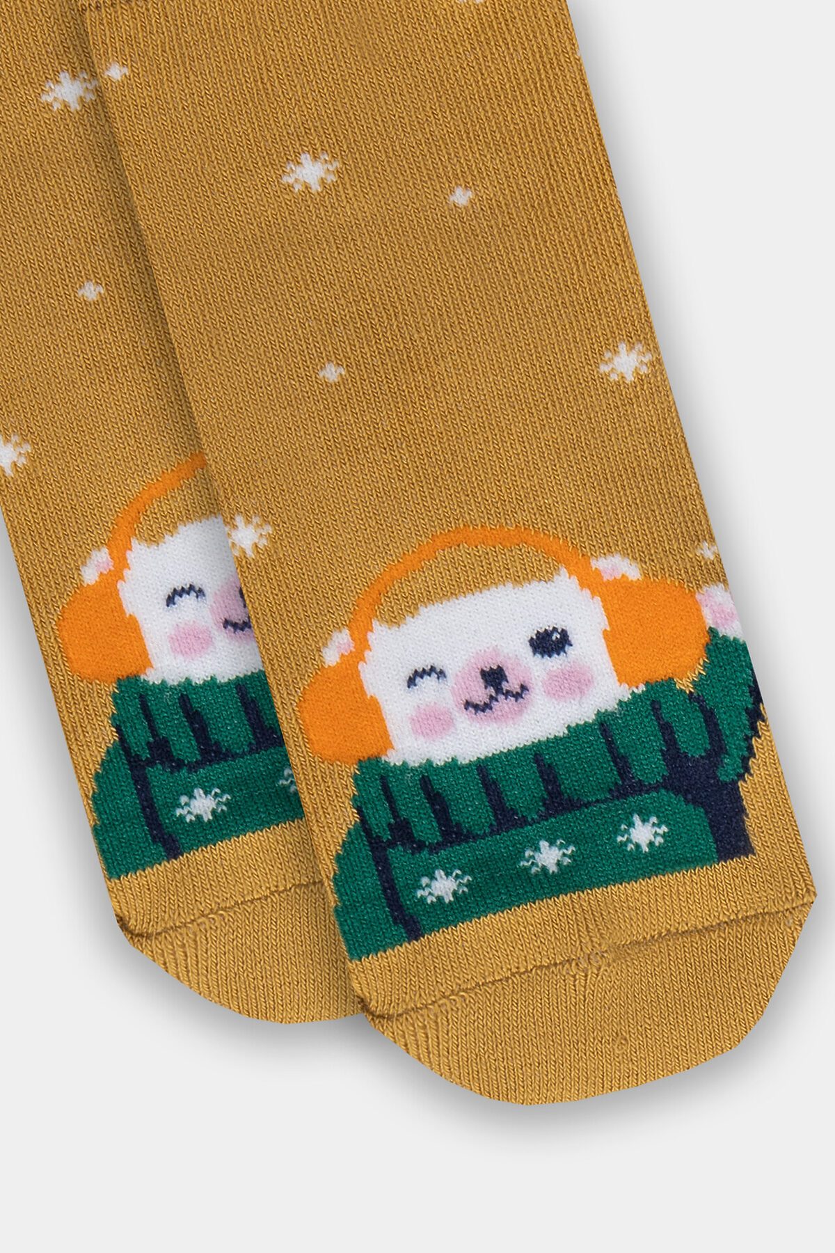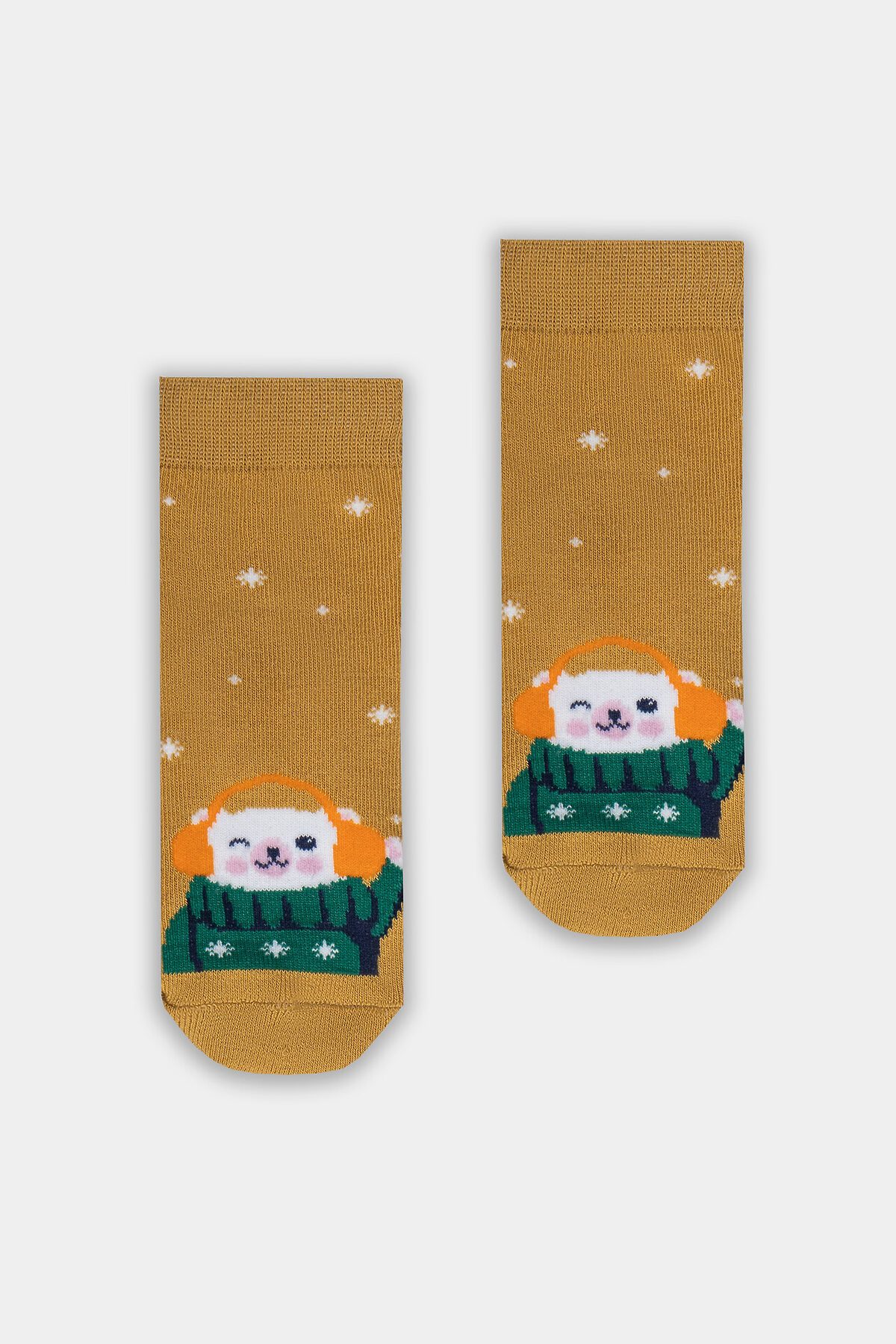 Новогодние носки детские с плюшевым следом и рисунком в виде медведя. Выполнены из высококачественного гребенного хлопка - тонкого, прочного и эластичного. Натуральные волокна отлично пропускают воздух и впитывают влагу, обеспечивают ощущение комфорта в течение дня. Благодаря небольшому количеству эластана в составе, носочки хорошо облегают и сохраняют форму, практичны и долговечны. Пятка и мысок дополнительно усилены для защиты от протирания при активном движении. Резинка мягко, но надежно удерживает носки, не передавливая ногу и не оставляя на коже следов. Отличный вариант для круглогодичного использования. Мягкие и комфортные. Рекомендуем в качестве подарка на Новый год и Рождество!
