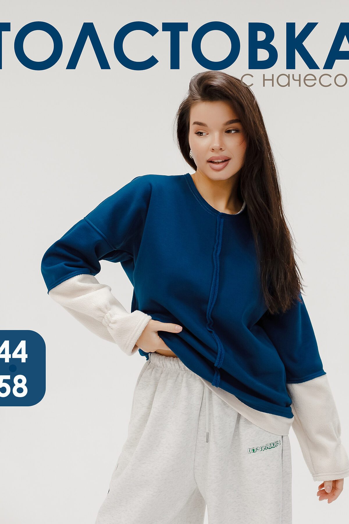 Толстовка оверсайз выполнена из приятной на теле и практичной ткани футер с мехом. Состав 80% хлопок и 20% полиэстер обеспечивает комфорт, хорошую воздухопроницаемость и долгий срок службы изделия. Размер с 44 по 58 благодаря свободному крою идеально подходит для разных типов фигуры и легко сидит как в расслабленном оверсайз, так и в более аккуратном силуэте. Модель толстовки сконструирована по авторскому дизайну из двух расцветок. Основной цвет дополняет другая расцветка на рукавах, по низу изделия и чуть на воротнике. Первый элемент это воротник с необработанным краем, который добавляет современной графики образу, а рукав на резинке удерживает тепло и придаёт аккуратную посадку. Толстовка тёплая и приятная к телу, она выполнена с начесом для дополнительного уюта и комфорта в холодное время года. Начес не линяет и не образует каташки, что сохраняет презентабельный вид даже после многократных стирок и активной носки. Однотонная расцветка делает вещь универсальной базовой частью гардероба и даёт свободу для стильных комплектов. Модель выдержана в стиле y2k, поэтому отлично смотрится в сочетании с ретро-элементами и современными акцентами. Свитшот прекрасно вписывается в спортивный стиль и одновременно служит надёжной базовой вещью для повседневной носки. Её легко комбинировать с джинсами или леггинсами, а также с юбками и шортами для более смелых образов. Эта толстовка практичное решение для тех, кто ценит тепло, комфорт и актуальный городской стиль в одном изделии.