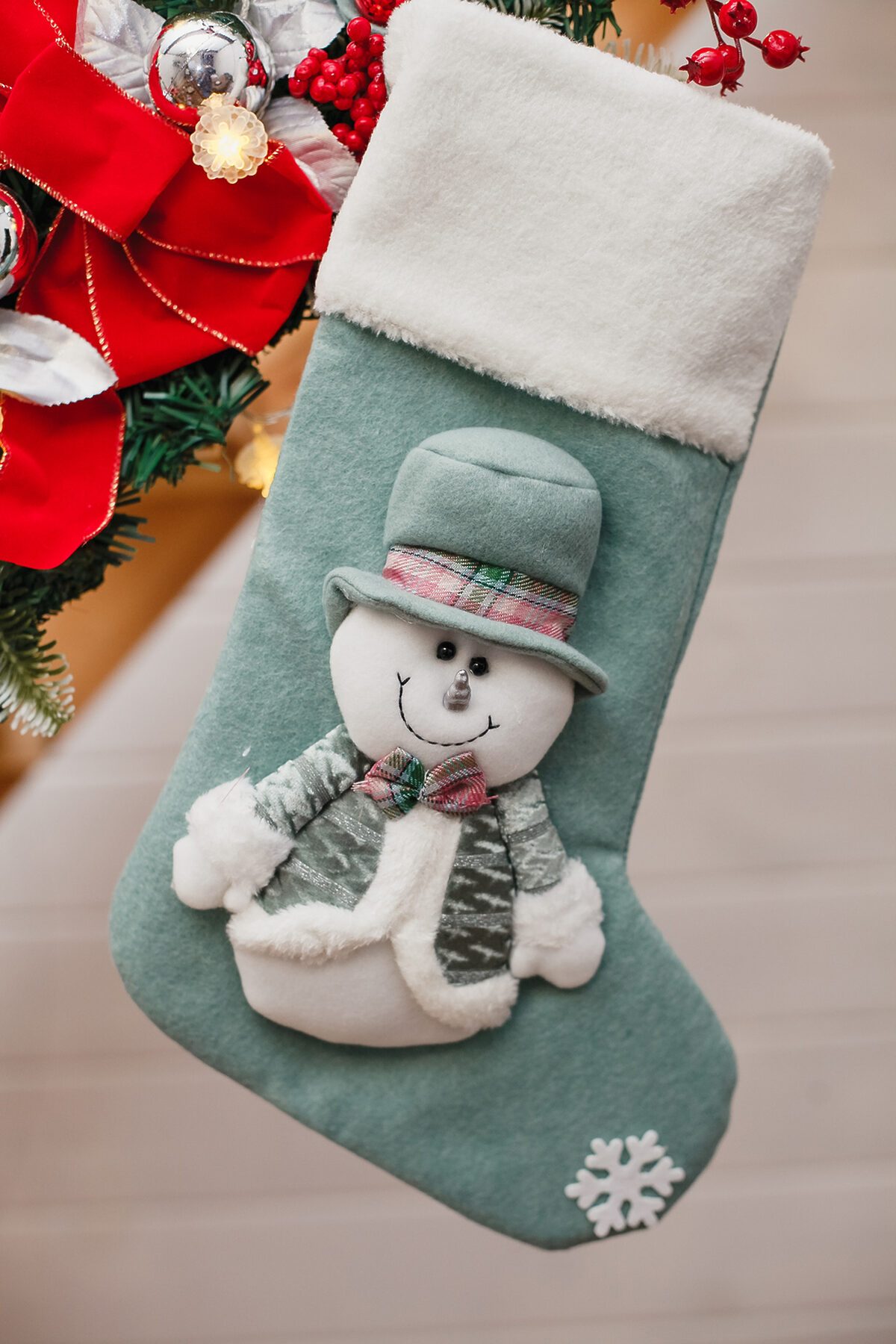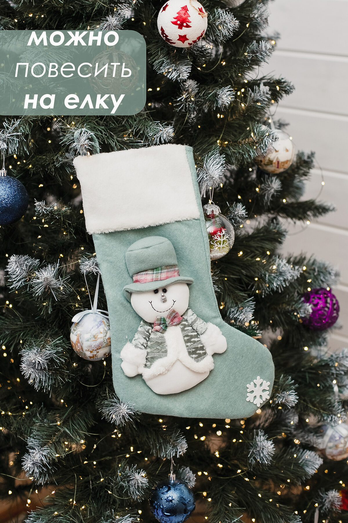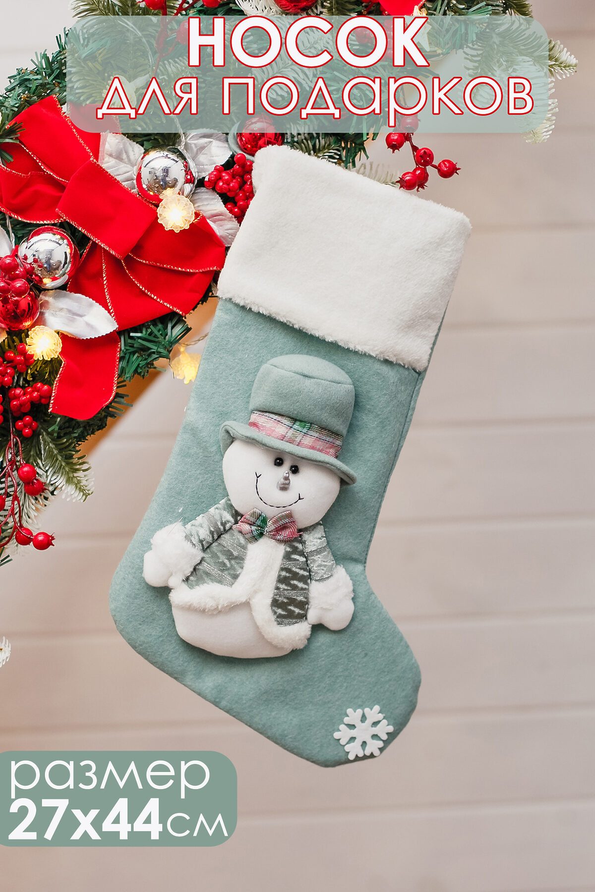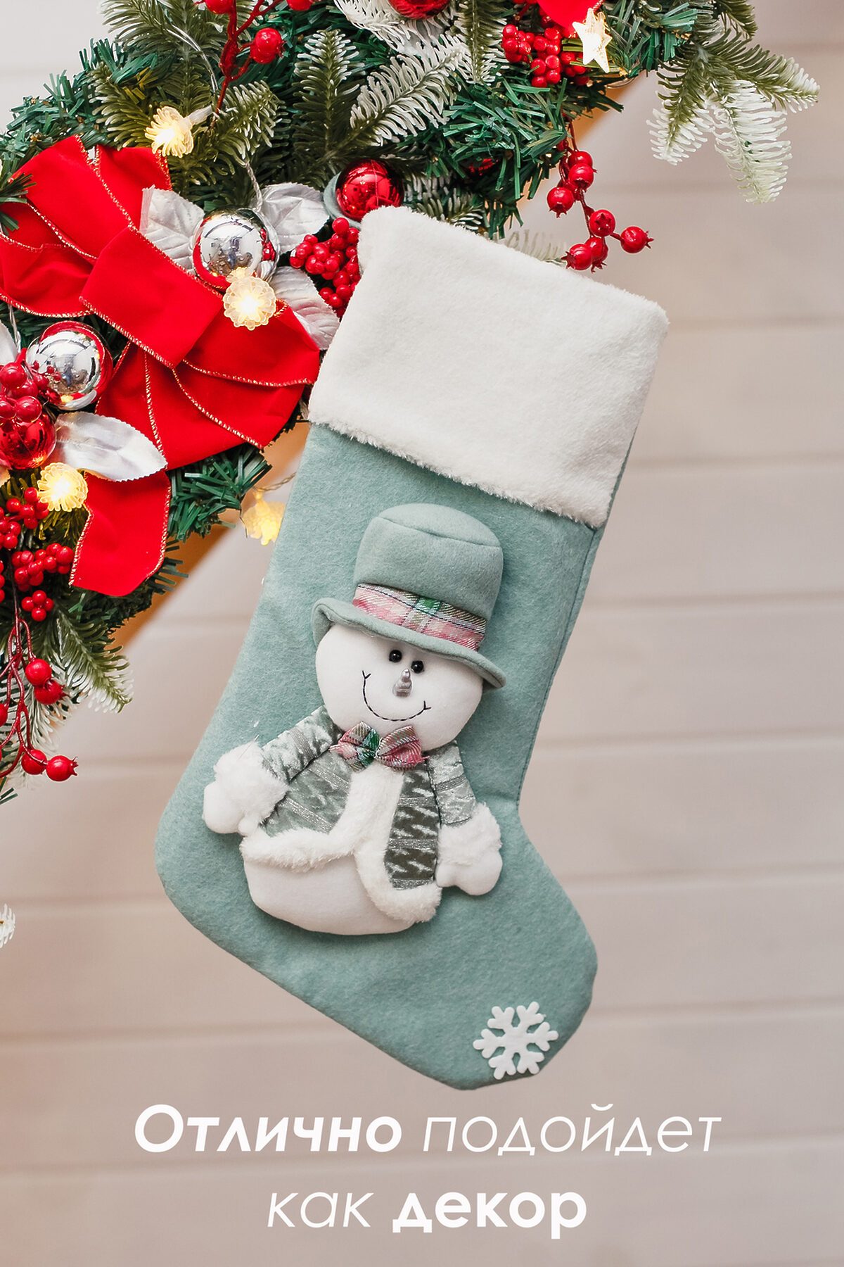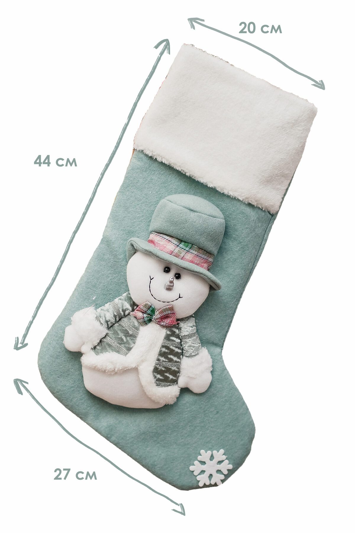 Новогодний носок для подарков зеленый НАТАЛИ, снеговик