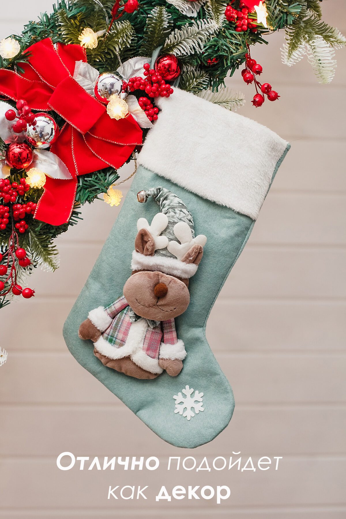 Подарочный носок‑сапожок это одновременно милый декор и удобная, экологичная упаковка для новогодних презентов. Корпус выполнен из плотной ткани. Аппликация олень или мишка вырезана и сшита из фетра, дополнена декоративной строчкой, помпонами и элементами, придающими лицам животных выразительность и объём. Главная фишка модели висячие ножки. Ножки добавляют динамики при подвешивании и создают игривый акцент на камине, поручне или ёлке. Верхний край снабжён петлёй для подвеса. Это отличный выбор для семейной упаковки, корпоративных наборов и тематических подарков. Носок выглядит как самостоятельный подарок. Сапожек новогодний не просто упаковка: он сам по себе становится частью подарка и может использоваться снова и снова.