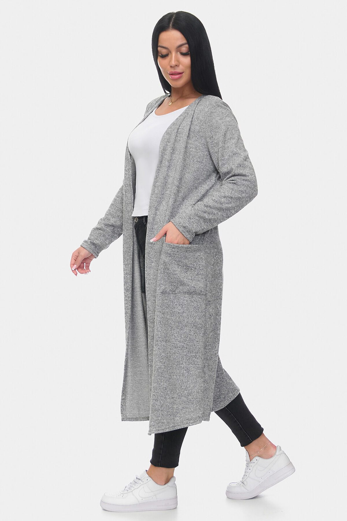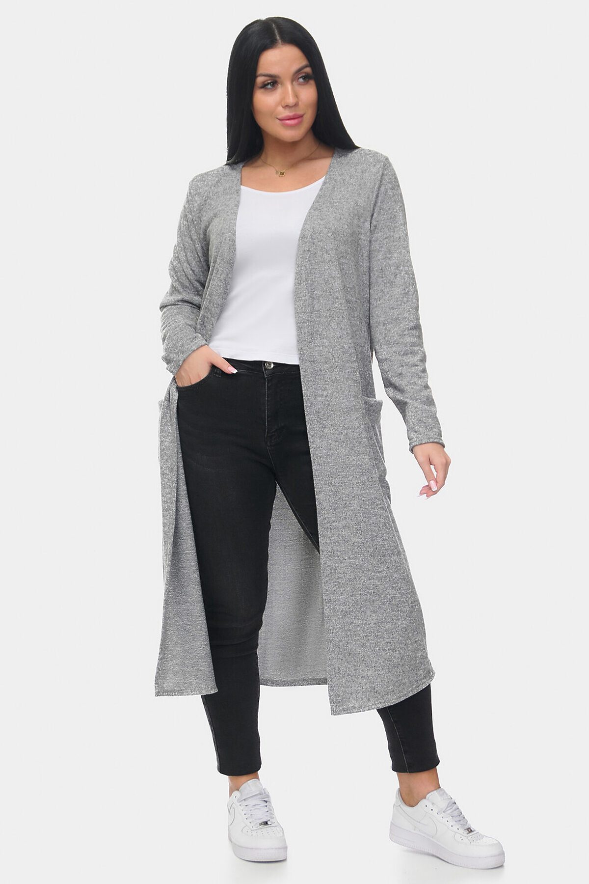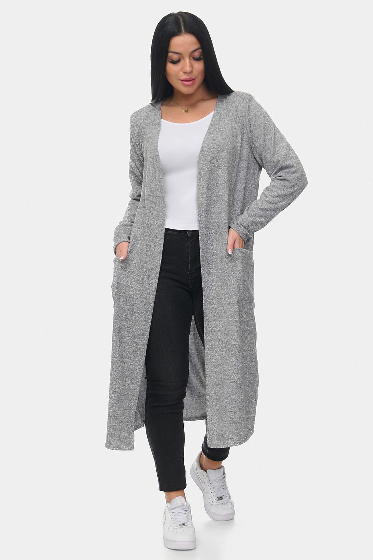 Стильный и уютный длинный кардиган из мягкой ангоры софт. Модель прямого кроя с удобными накладными карманами и открытой линией переда. Приятный на ощупь материал обеспечивает комфорт и тепло, идеально подходит для повседневных образов. Отлично сочетается с джинсами и брюками.