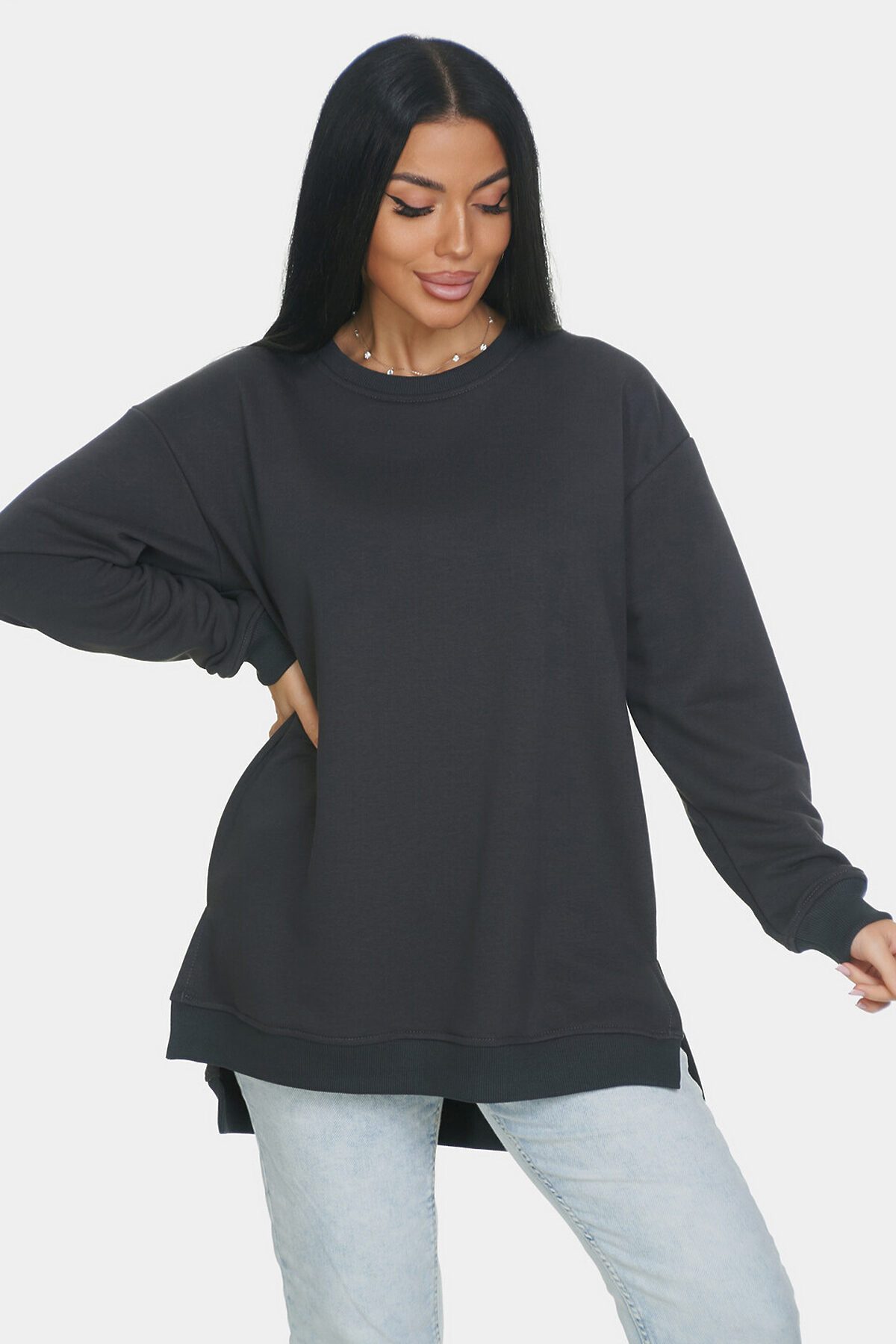 Базовая оверсайз кофта со спущенным рукавом на все случаи жизни. Манжеты и горловина выполнены из эластичного материала кашкорсе. Идеально подходит для прохладной погоды. Материал изделия - 3-х ниточный футер-петля. Без начеса.