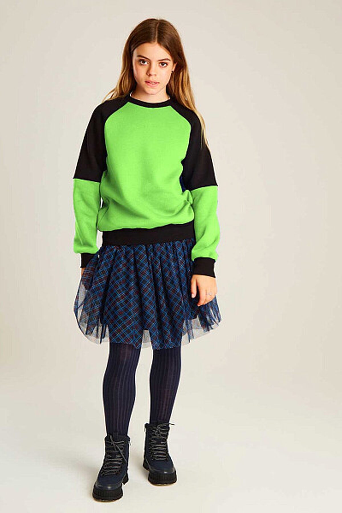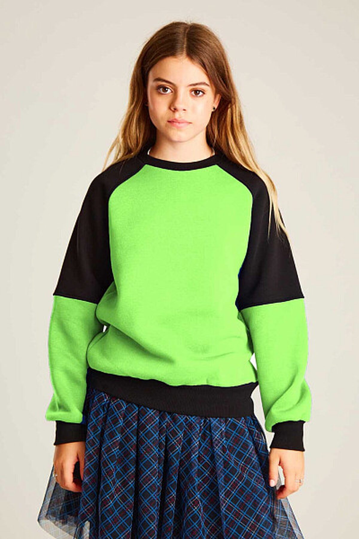 Джемпер для девочек с актуальными рукавами реглан. Он выполнен из высококачественного трикотажного полотна, что обеспечивает комфорт и уют в любую погоду. Низ джемпера и манжеты выполнены из мягкой резинки, для надежной защиты от внезапной непогоды и ветра. Джемпер выполнен в актуальном стиле колор-блок в сочетании черного цвета и ярко-зеленого.