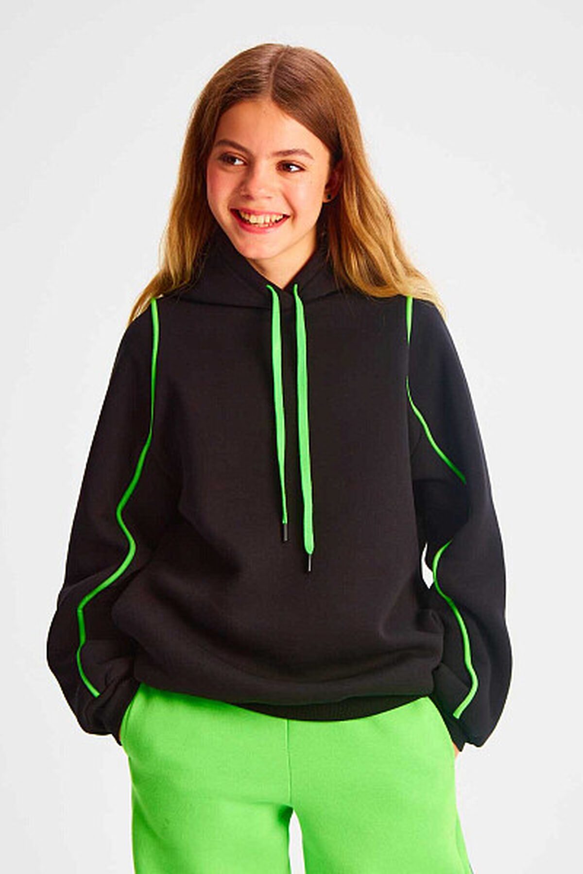 Толстовка для девочек изготовлена из высококачественного материала и имеет начёс, который сохраняет тепло и придает ей мягкость. Кроме того, капюшон со шнурком обеспечивает дополнительную защиту от холода и ветра. Толстовка доступна в разных размерах и цветах, что позволяет выбрать оптимальный вариант для каждого ребенка. Она отлично подходит для прогулок на свежем воздухе, занятий спортом и повседневной носки.