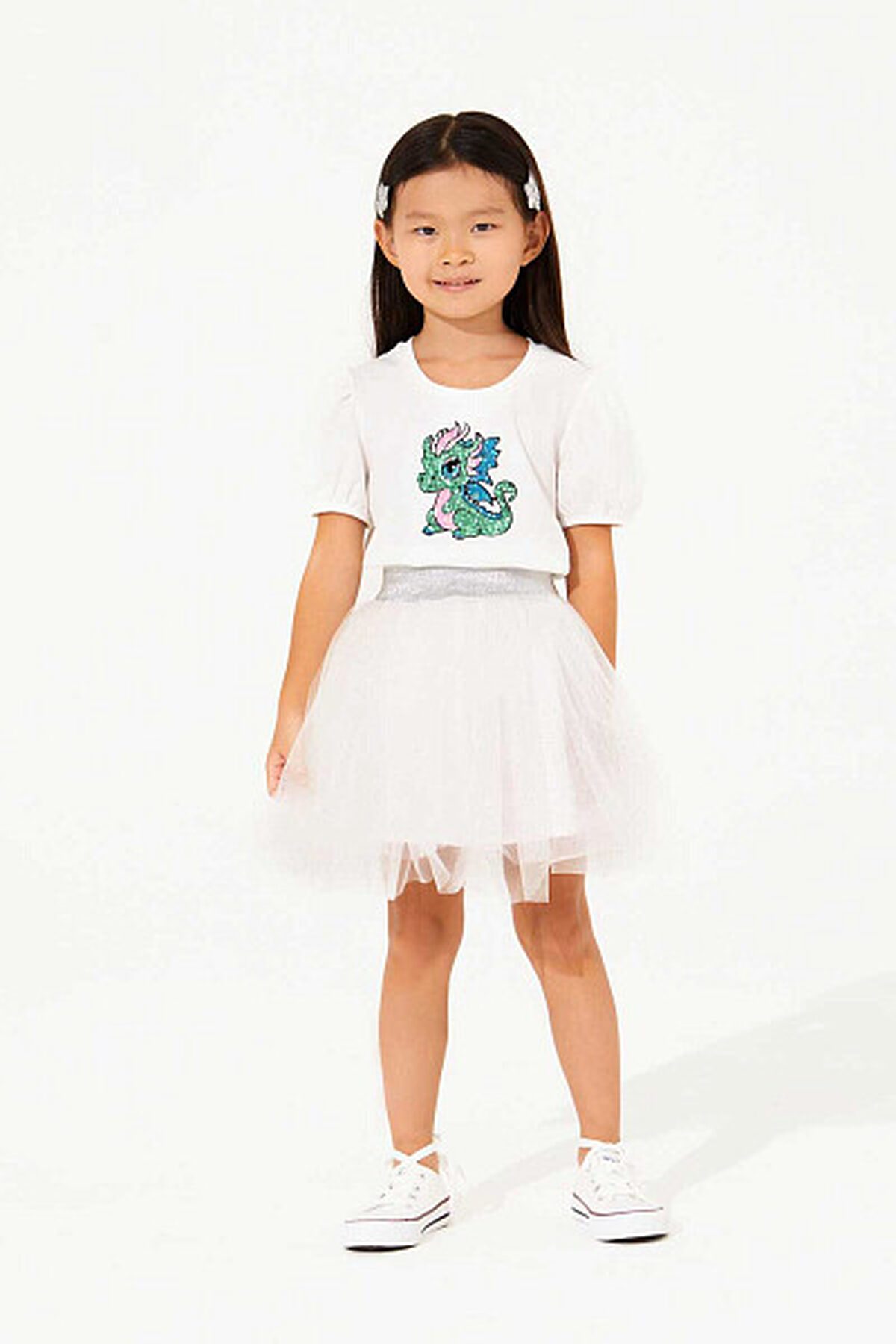 Стильная белая футболка для девочек свободного силуэта с рукавами-фонариками, которая подойдет для любого зимнего торжества. Она идеально сочетается как с брюками, так и с юбкой. Футболка изготовлена из мягкого и нежного хлопка, который прекрасно сидит на фигуре и не сковывает движения во время активных игр. Оригинальная аппликация из блестящих пайеток придаст образу оригинальности и яркости.