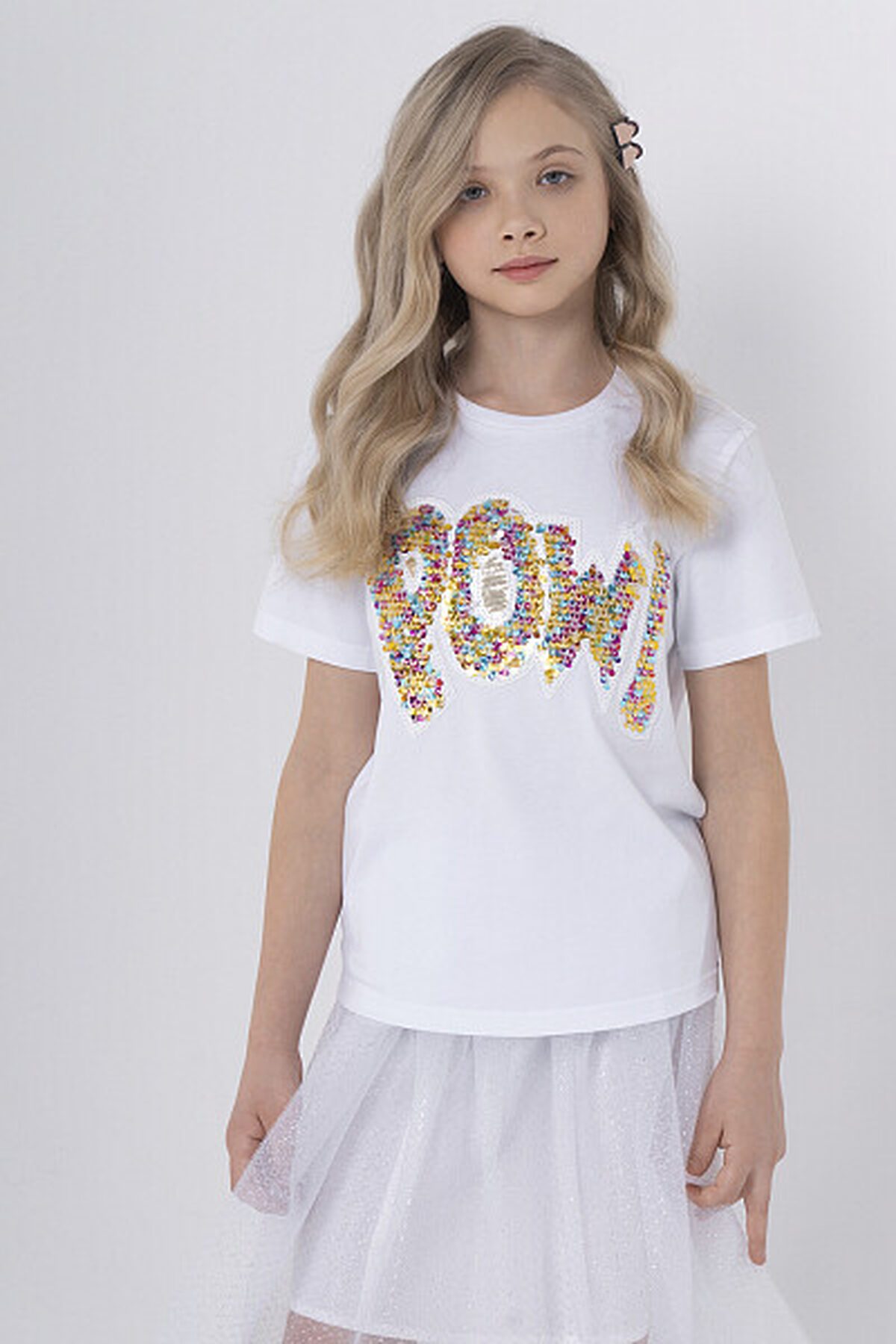 Хлопковая футболка с рисунком из пайеток. Изготовлена из дышащей ткани, она обеспечит комфорт в течение всего дня. Свободный силуэт и широкие рукава позволяют чувствовать себя свободно и уверенно. Эта вещь идеально подходит как для праздника, так и на каждый день.