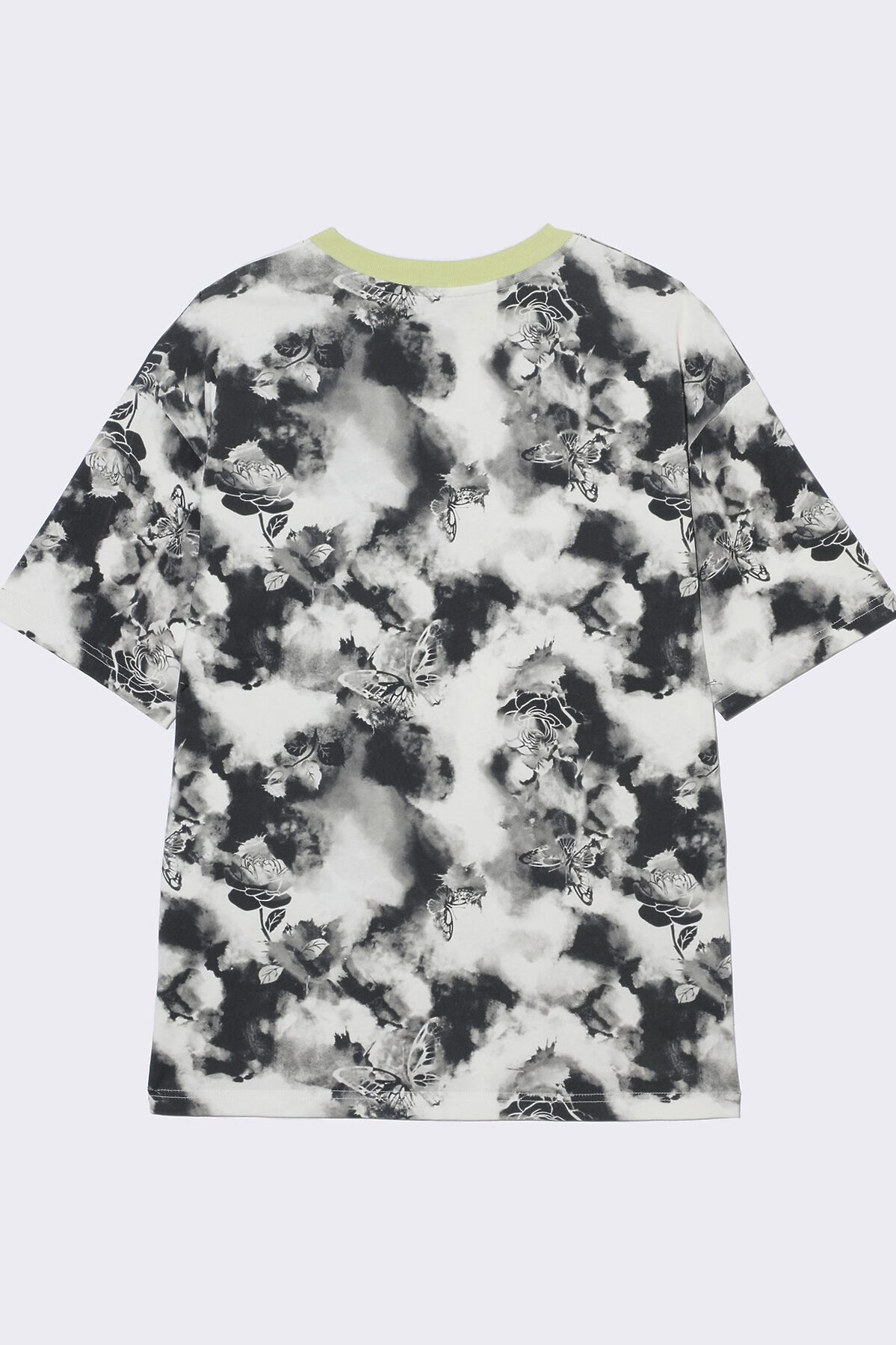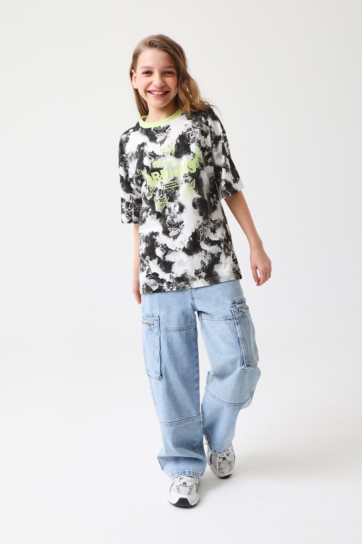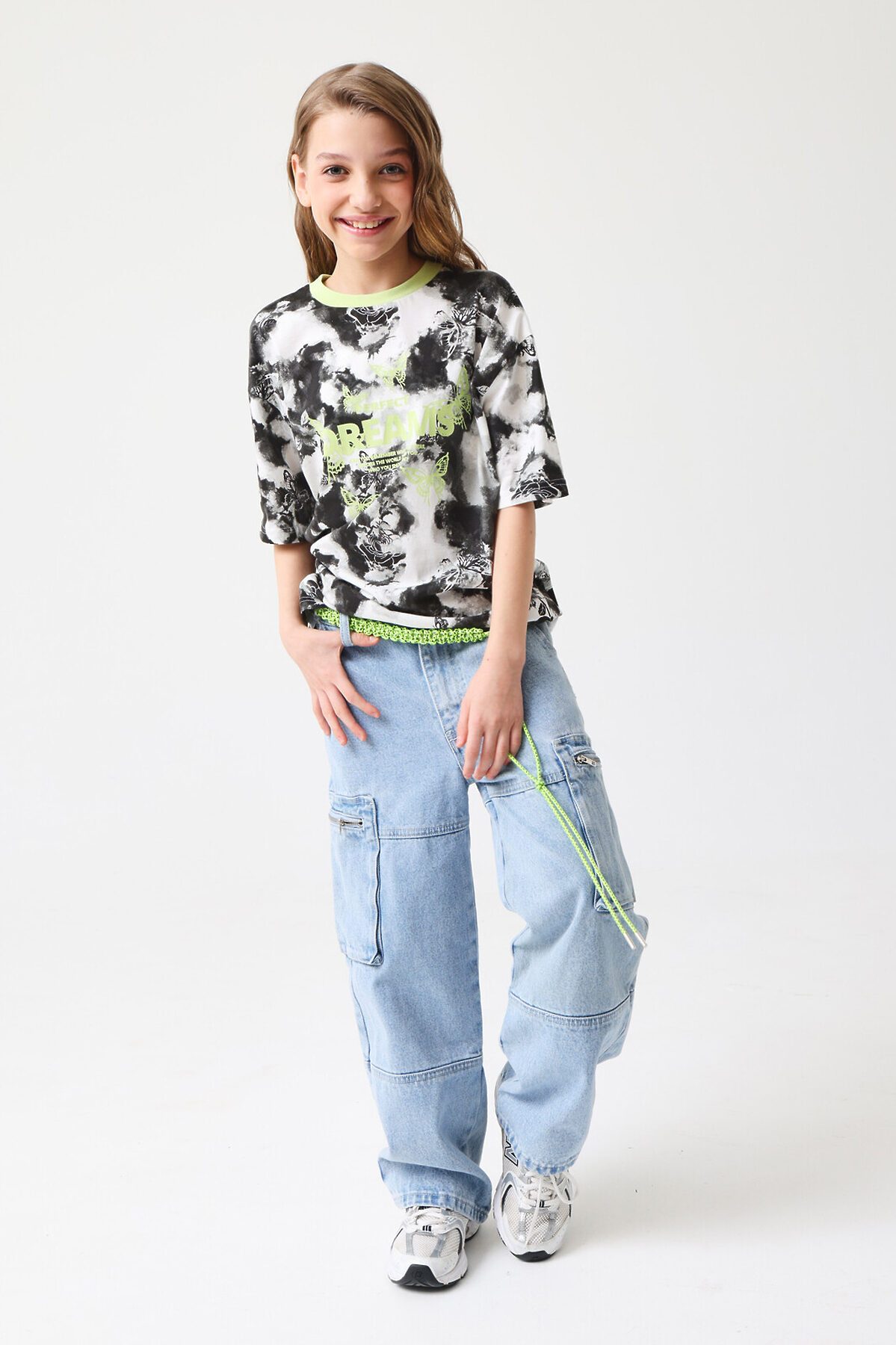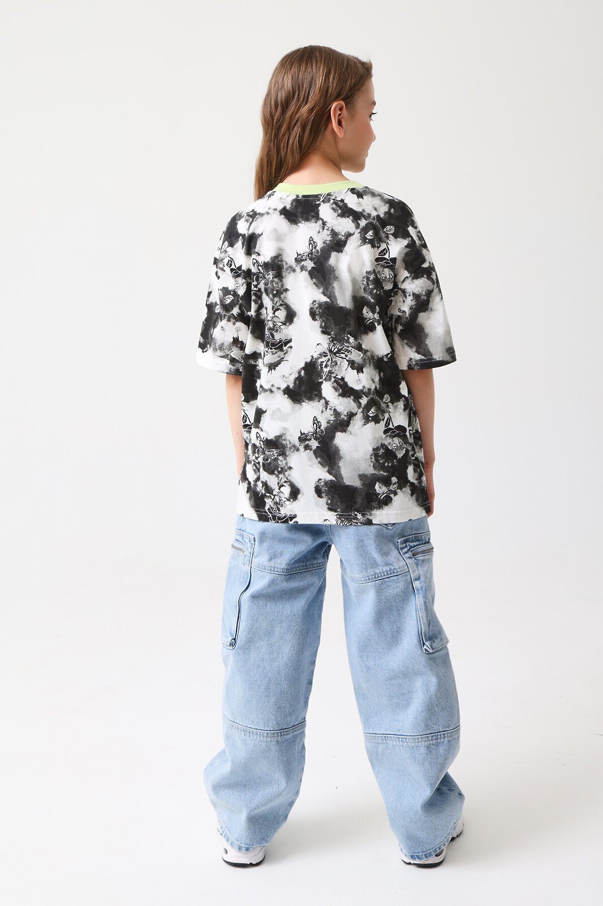 Футболка свободного кроя с короткими рукавами. Модель в трендовом оверсайз силуэте с эффектом "тай-дай" также дополнена большим креативным принтом с яркой надписью на груди. Воротник футболки оформлен контрастной трикотажной резинкой. Отлично подойдет для активного отдыха и повседневной носки. Доступна в 2 цветах.