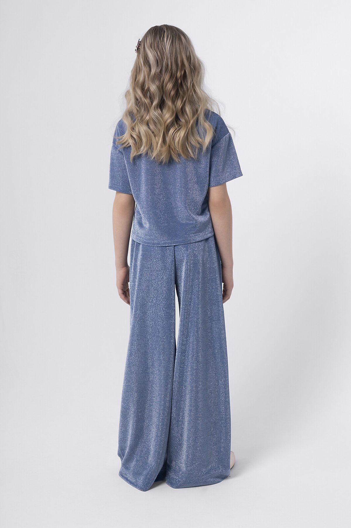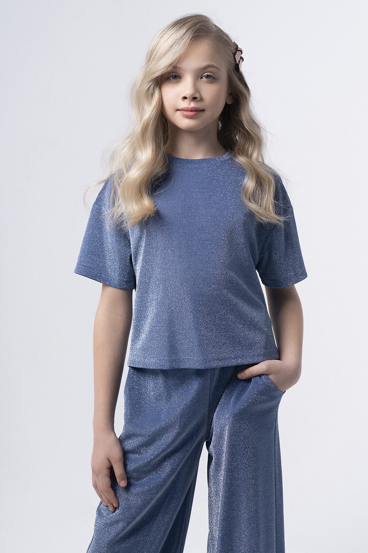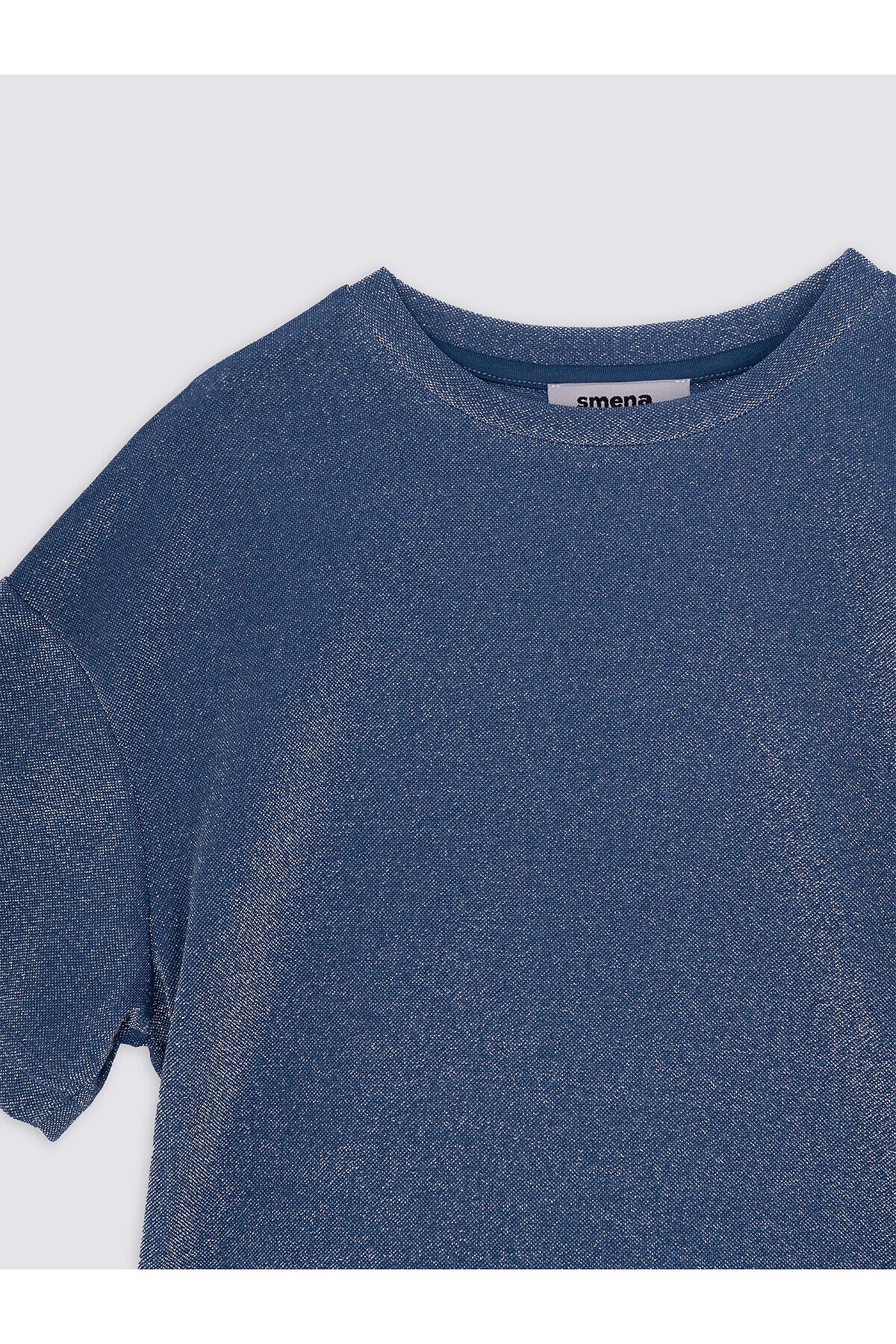 Модная укороченная футболка из голубой мерцающей ткани — стильный выбор для особых случаев и повседневных образов. Лаконичный крой подчёркивает силуэт, а лёгкий блеск материала добавляет нарядности. Идеально сочетается с брюками из праздничной коллекции SMENA.