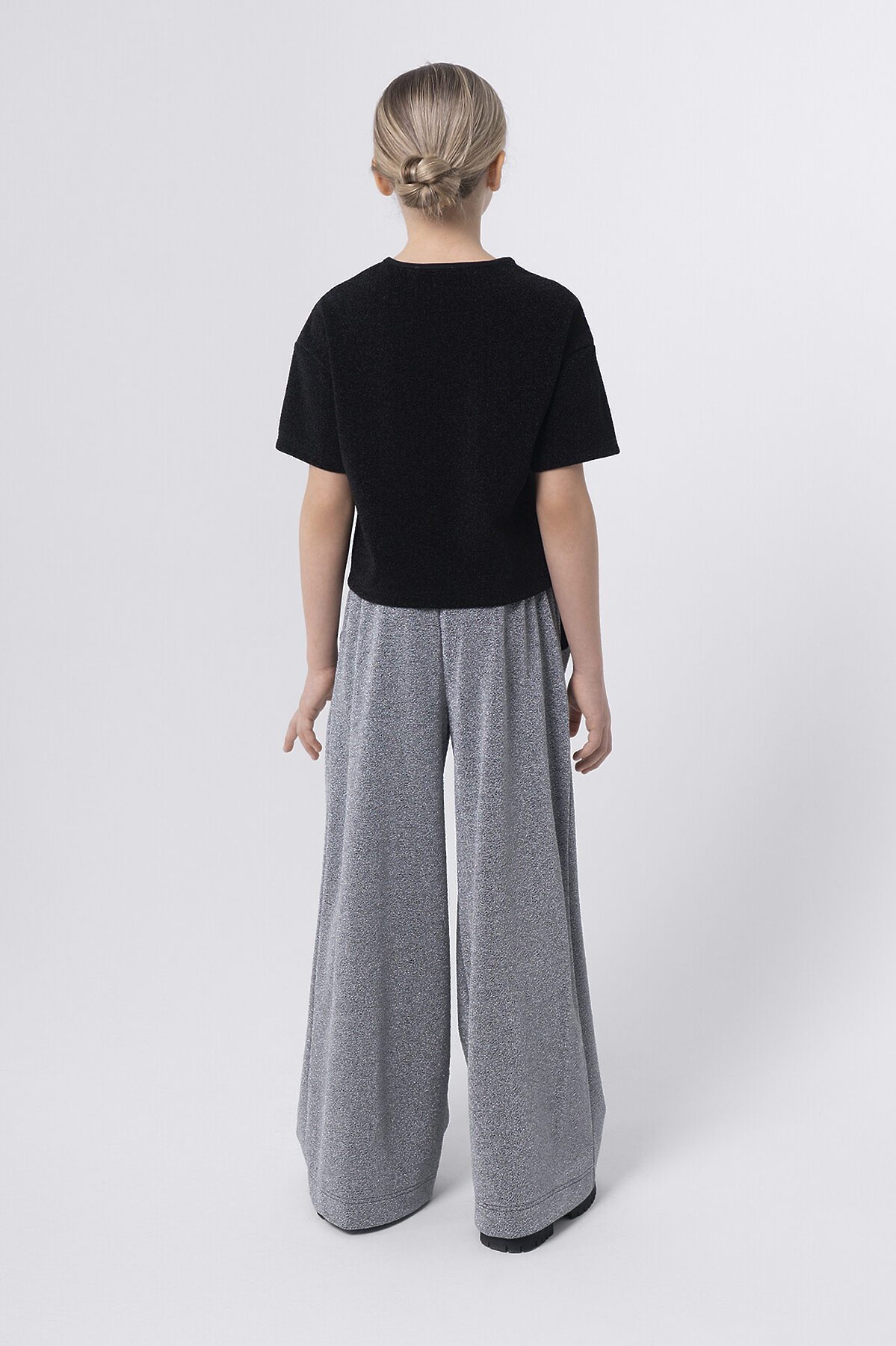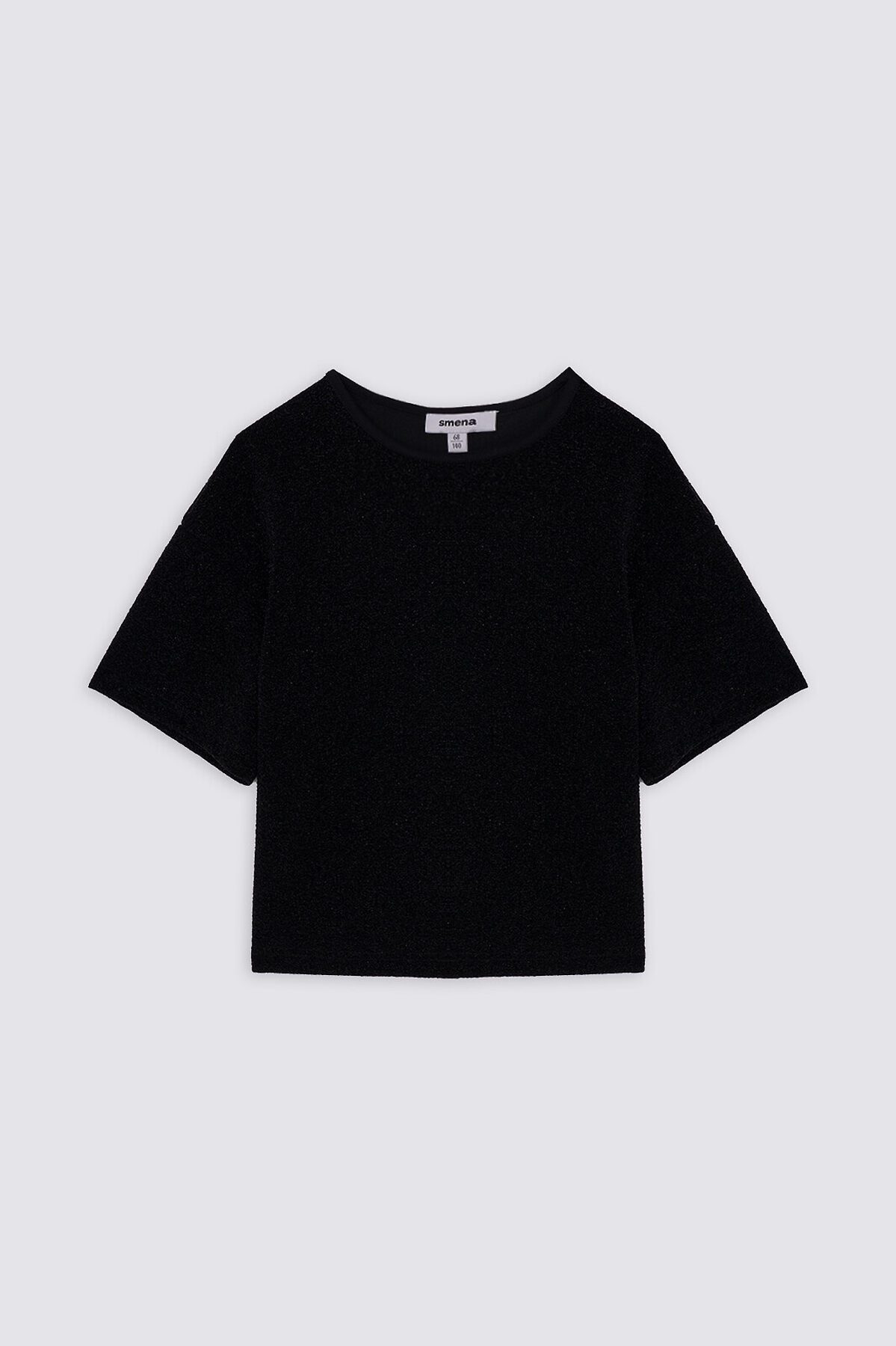 Модная укороченная футболка из чёрной мерцающей ткани — стильный выбор для особых случаев и повседневных образов. Лаконичный крой подчёркивает силуэт, а лёгкий блеск материала добавляет нарядности. Идеально сочетается с брюками из праздничной коллекции SMENA.