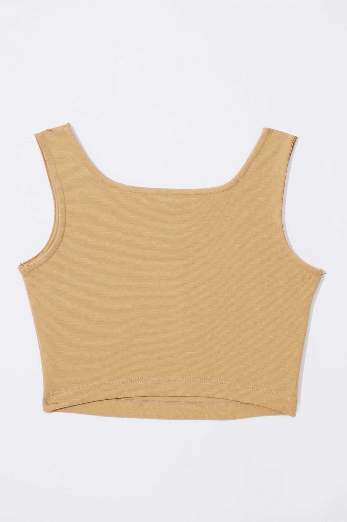 Удобный базовый облегающий топ для девочки, укороченный, с широкими лямками. Выполнен из эластичного трикотажного полотна.