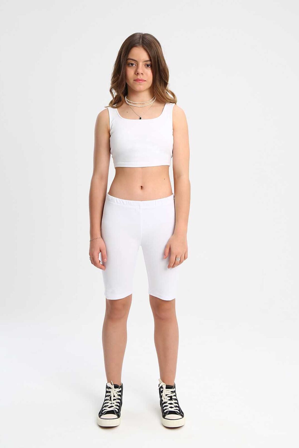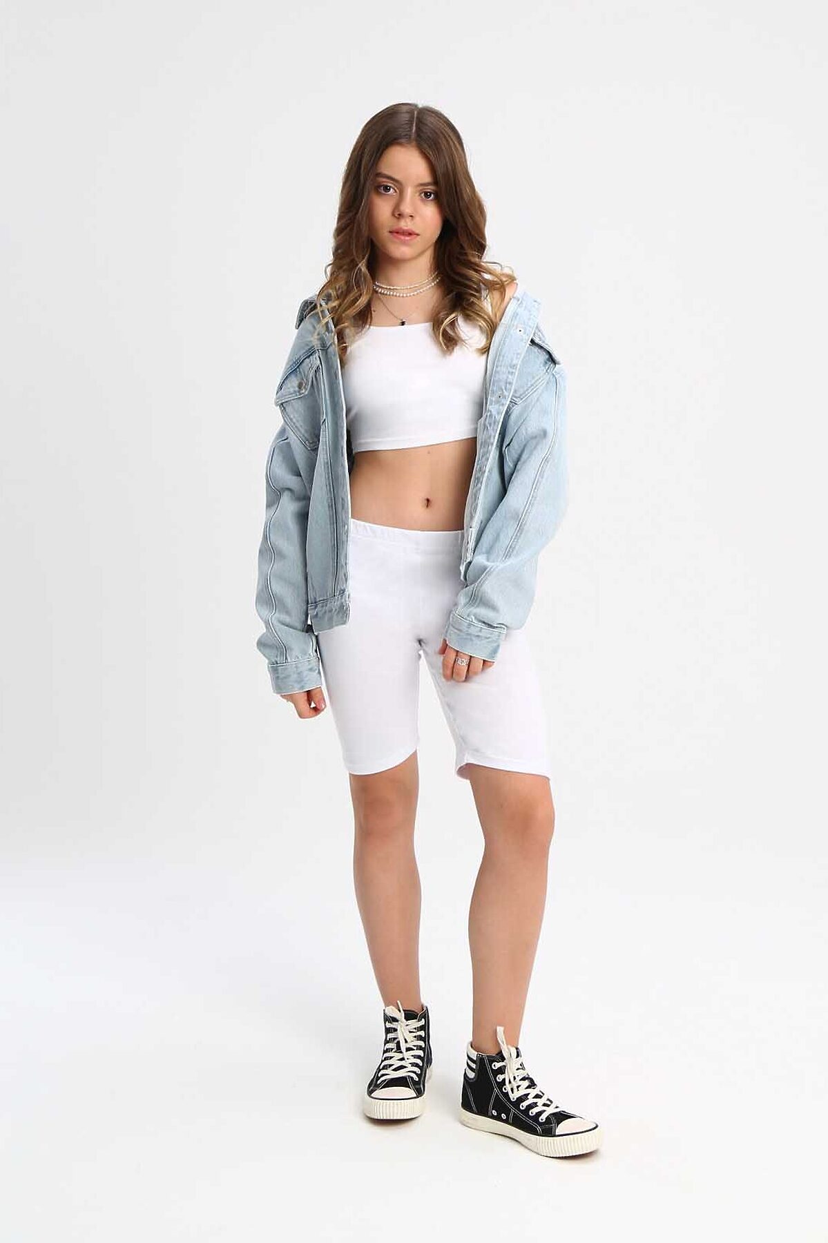 Удобный базовый облегающий топ для девочки, укороченный, с широкими лямками. Выполнен из эластичного трикотажного полотна.