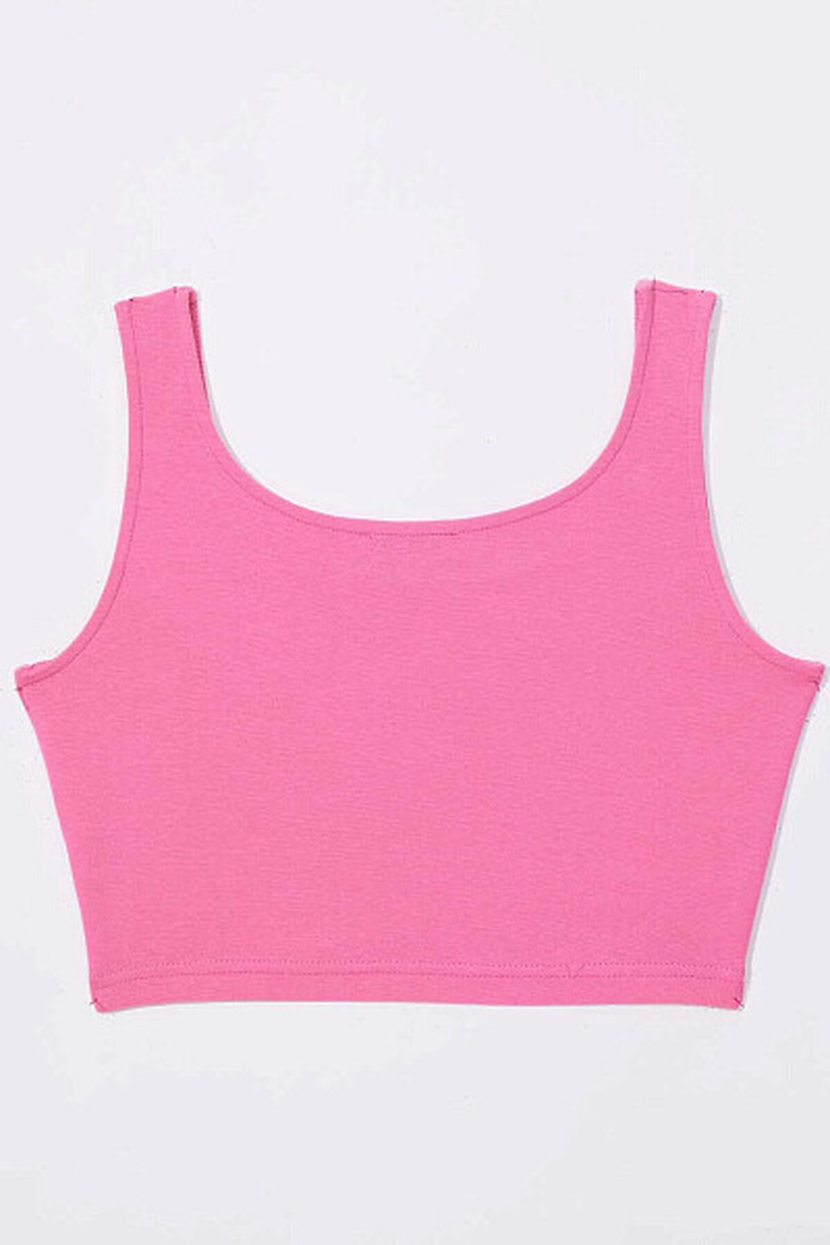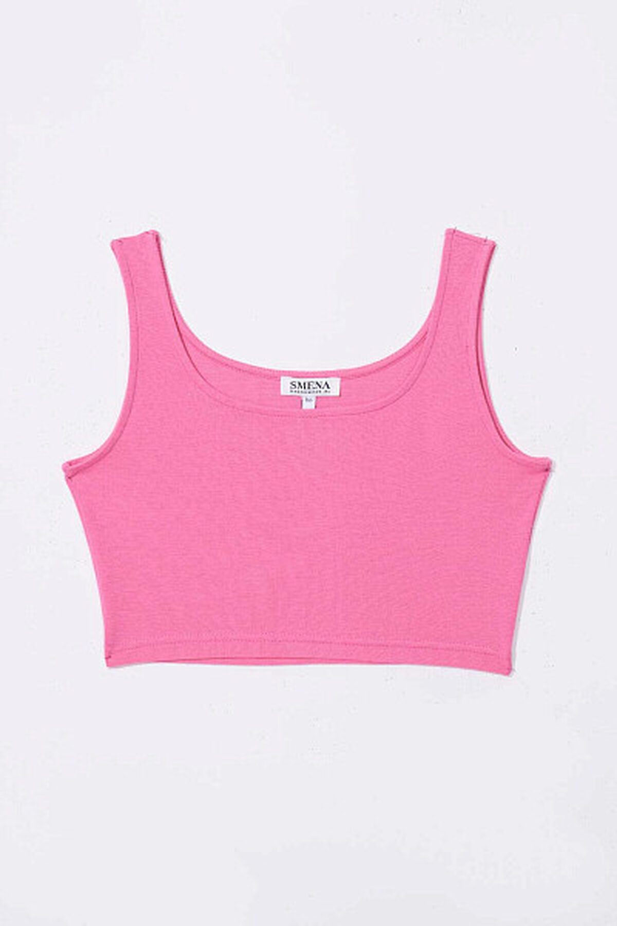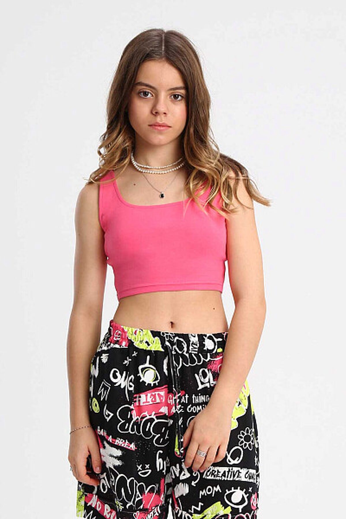 Удобный базовый облегающий топ для девочки, укороченный, с широкими лямками. Выполнен из эластичного трикотажного полотна.