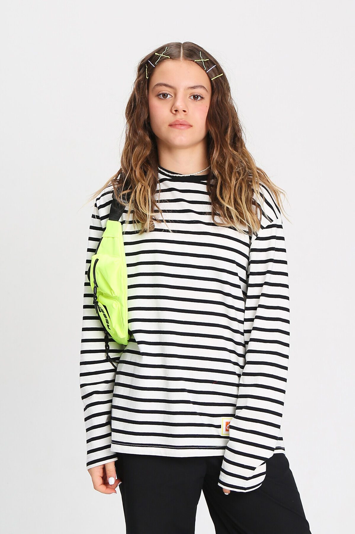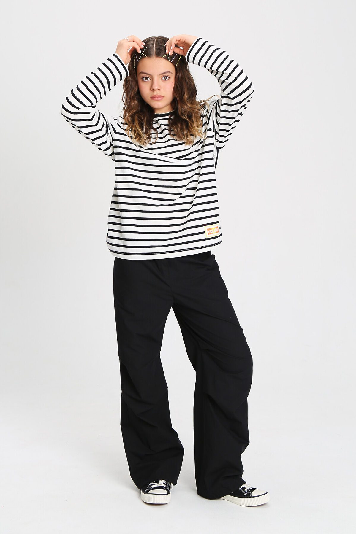 Лонгслив для девочки. Выполнен из высококачественного трикотажного полотна, что обеспечивает комфорт и уют в любую погоду. Он отлично тянется, не сковывает движения и позволяет коже дышать. Лонгслив выполнен в актуальную черно-белую и бело-голубую полоску, что позволяет вписать его в любой гардероб.