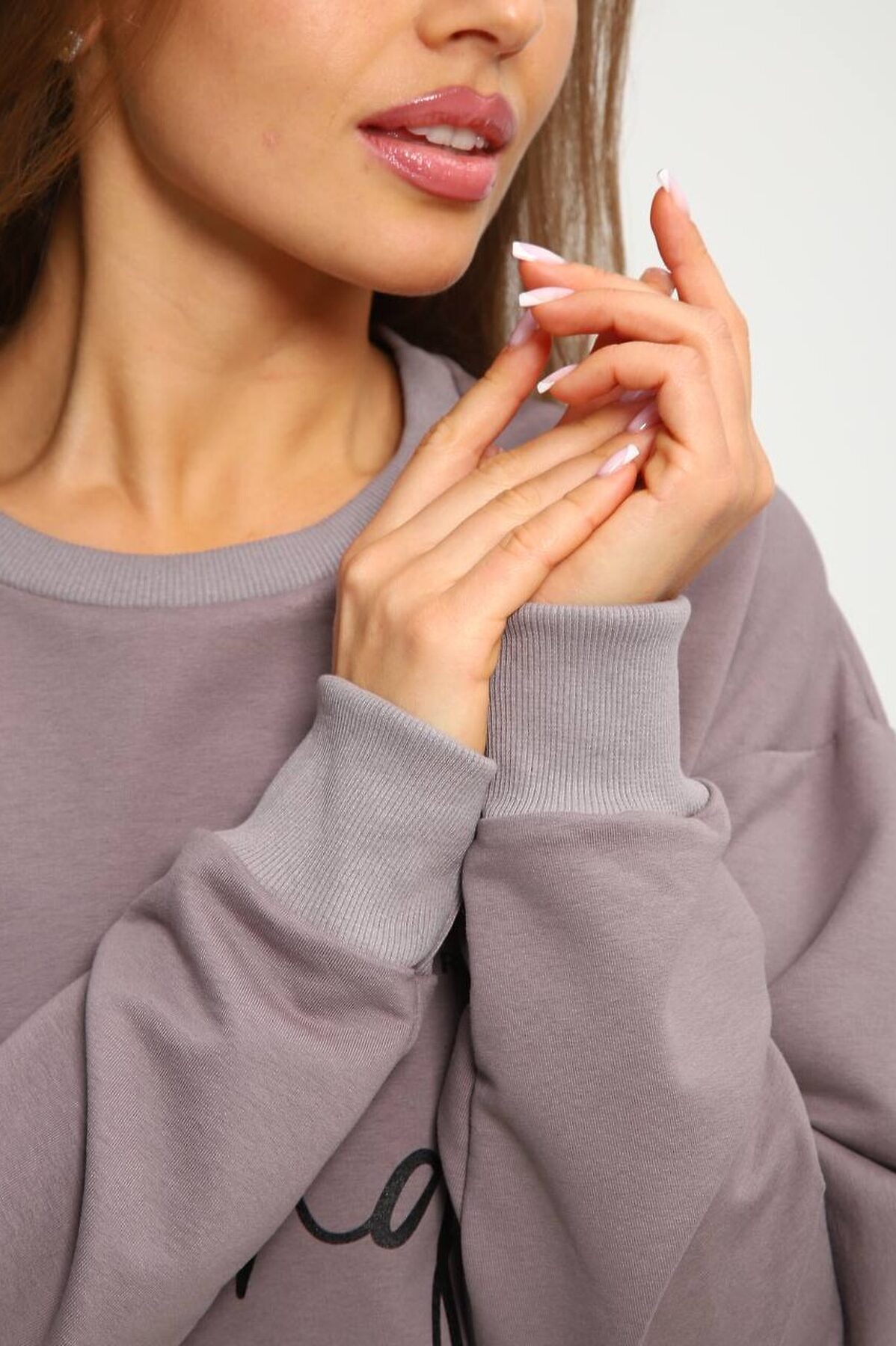 Стильный свитшот из футера 2-х нитки, плотной, но в то же время легкой ткани. Данная модель имеет свободный крой, длинные рукава и эластичные манжеты, что делает его удобным и практичным. На груди имеется стильный принт. Свитшот легко комбинировать с одеждой разных стилистических направлений: отлично сочетается с джинсами, спортивными брюками или юбками, создавая как casual-образ, так и более спортивный или уличный. Модель без начеса на внутренней стороне делает её комфортной в теплую погоду, сохраняя при этом достаточный уровень тепла в прохладные дни. Женский свитшот не сковывает движения, обеспечивает комфортную посадку на любой тип фигуры, подойдет на средний и высокий рост.