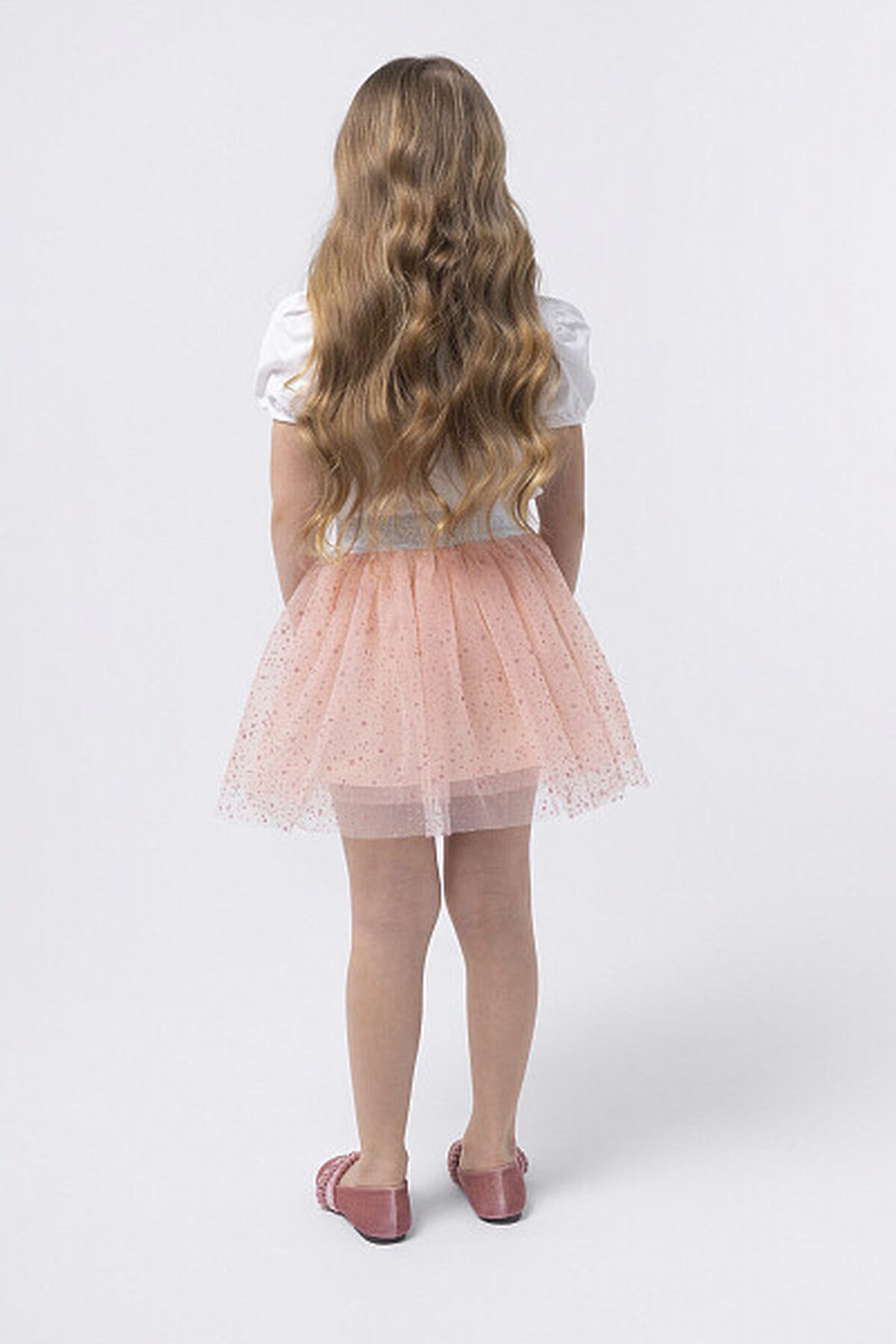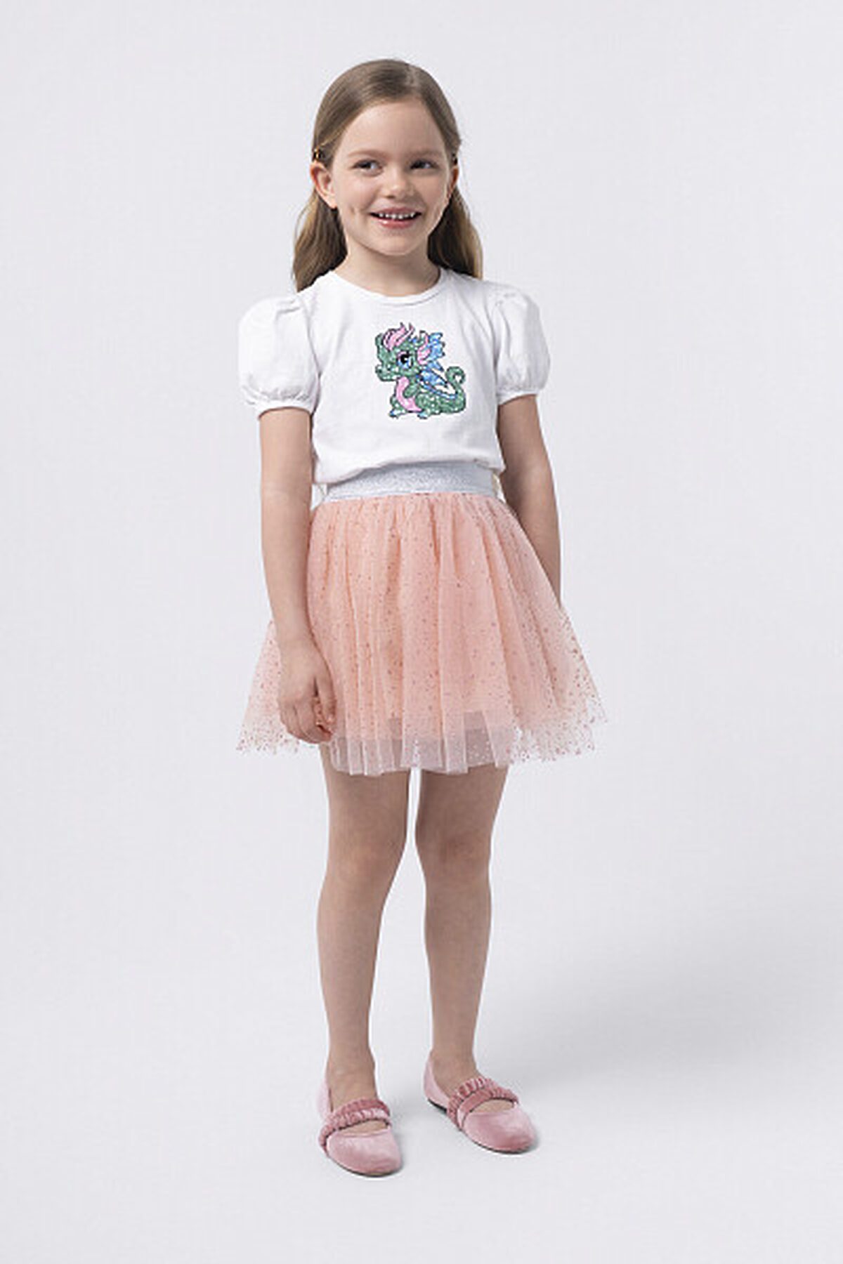 Юбка из двухслойной сетки с хлопковой подкладкой. Красиво драпируется благодаря многослойным сборкам. Пояс с эластичной резинкой обеспечивает идеальную посадку, свободу движений и легкость в носке. Блестящий декор вместе с ярким дизайном подчеркивает уникальное чувство стиля и индивидуальность.