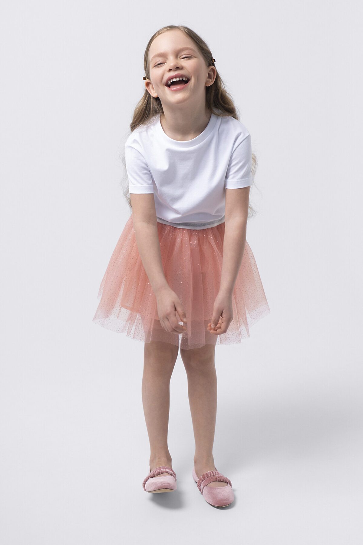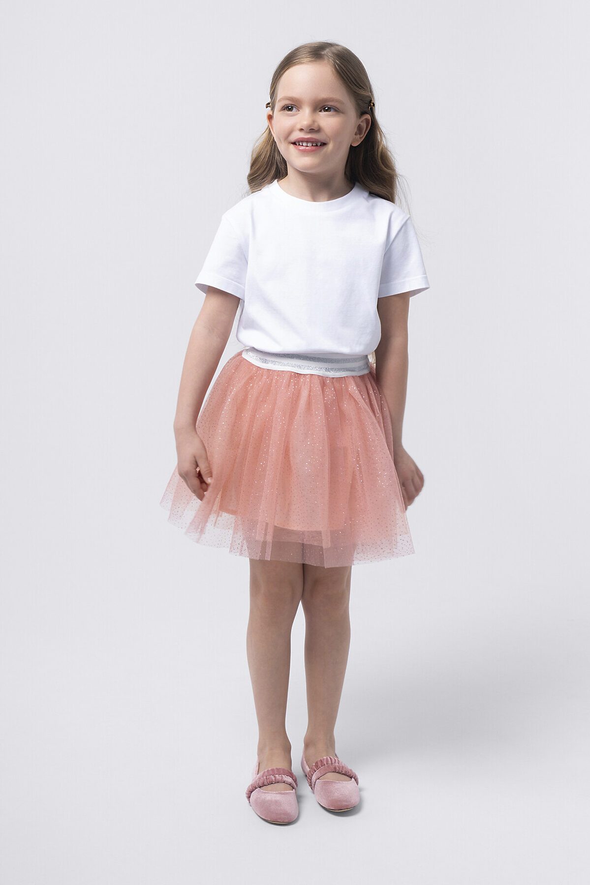 Юбка из двухслойной сетки с хлопковой подкладкой. Красиво драпируется благодаря многослойным сборкам. Пояс с эластичной резинкой обеспечивает идеальную посадку, свободу движений и легкость в носке. Блестящий декор вместе с ярким дизайном подчеркивает уникальное чувство стиля и индивидуальность.