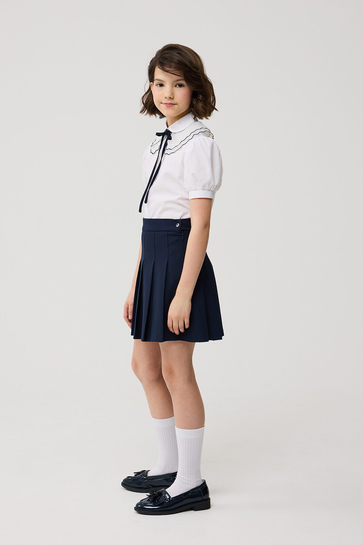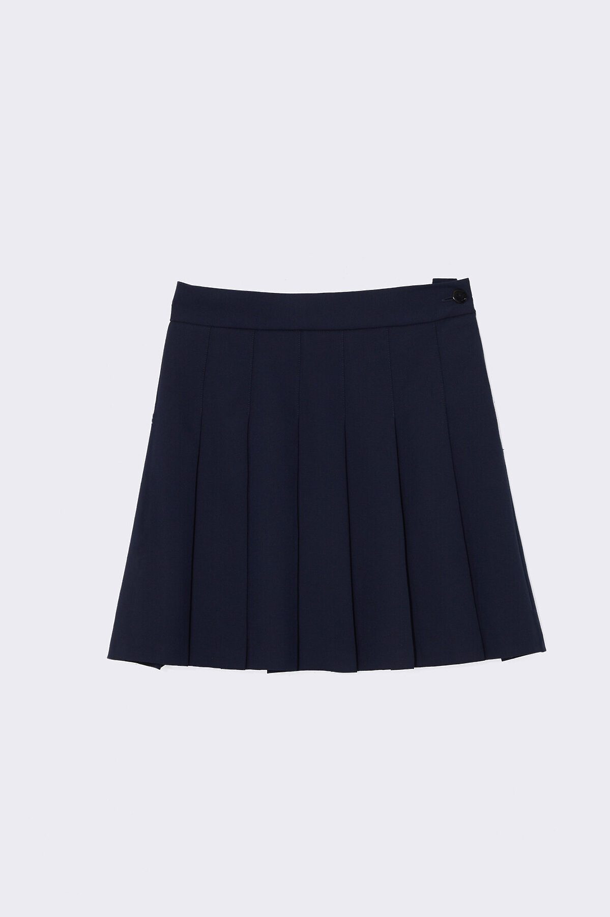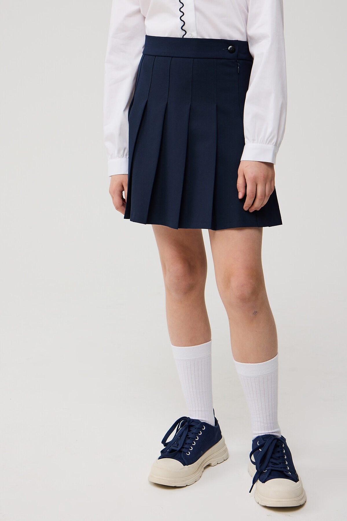 Элегантная юбка тенниска в складку, из износостойкой и устойчивой к смятию поливискозы. Складки частично застрочены Застёгивается на потайную молнию в боковом шве и пуговицу на втачном поясе. Пояс с регулируемой резинкой обеспечивает удобную посадку и комфорт в ежедневной носке. Эластичные волокна в составе обеспечивают комфорт в движении.