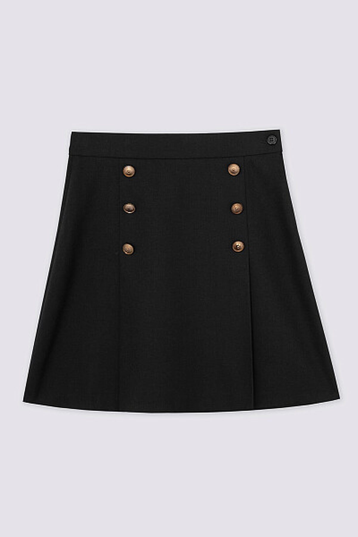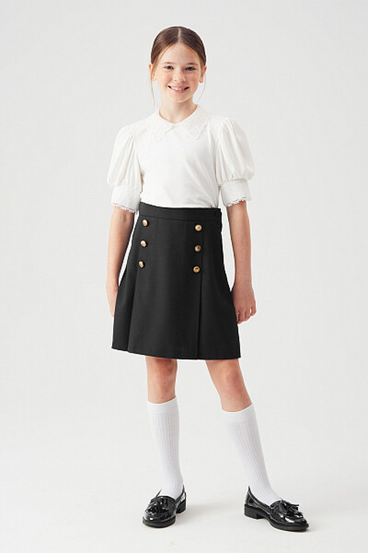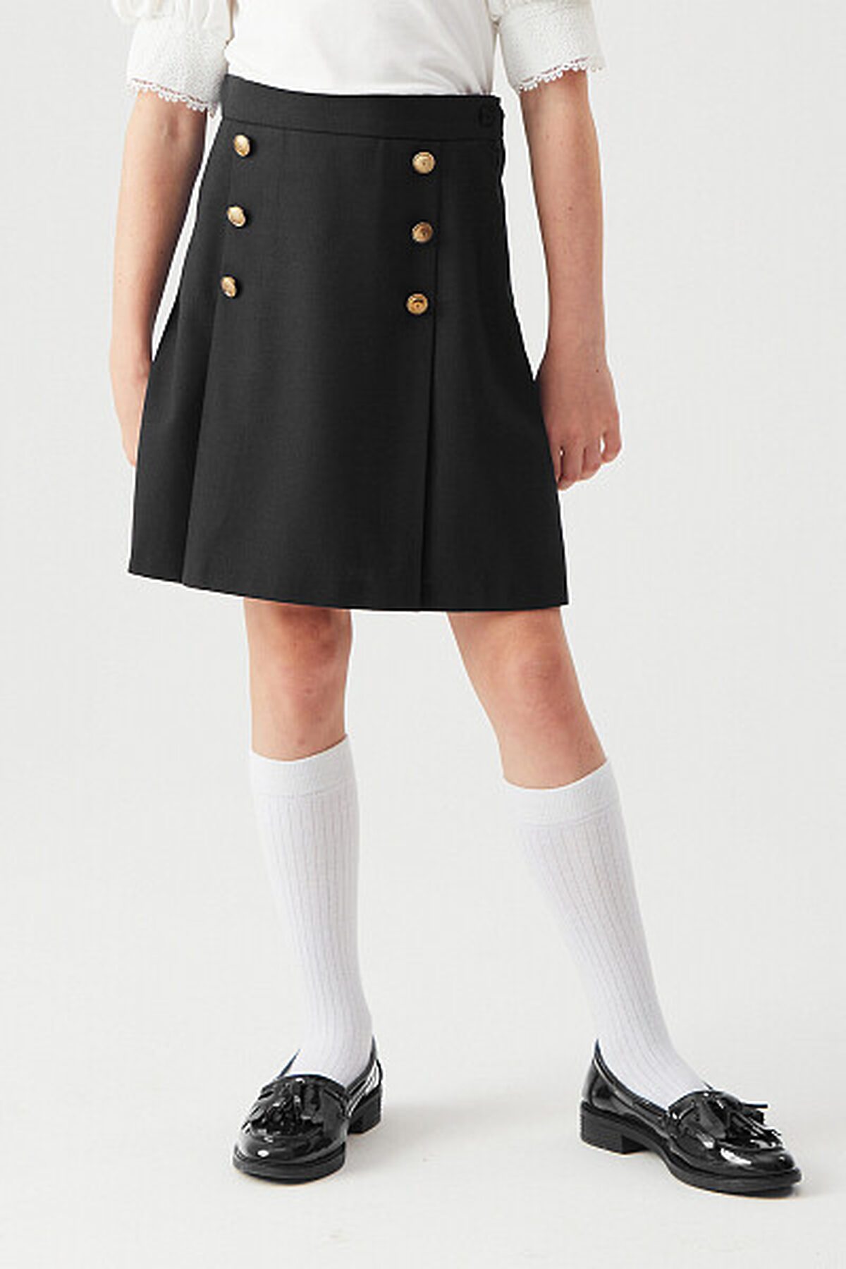 Элегантная школьная одежда для девочек, созданная специально для комфортного и стильного образа. Изделие из качественной ткани идеально подходит для учебных будней. Легкая расклешенная форма создает изящный силуэт и обеспечивает свободу движений. Застежка в левом боковом шве выполнена на потайную тесьму-молнию, что делает ее незаметной и удобной. Также предусмотрена одна обметанная петля с пуговицей на поясе для дополнительной фиксации. На передней части изделия симметрично расположены шесть декоративных пуговиц на ножке, которые добавляют акцент к строгому дизайну. Складки возле швов стачивания гармонично дополняют общий вид, делая модель универсальной как для официальных мероприятий, так и повседневной носки в школе.