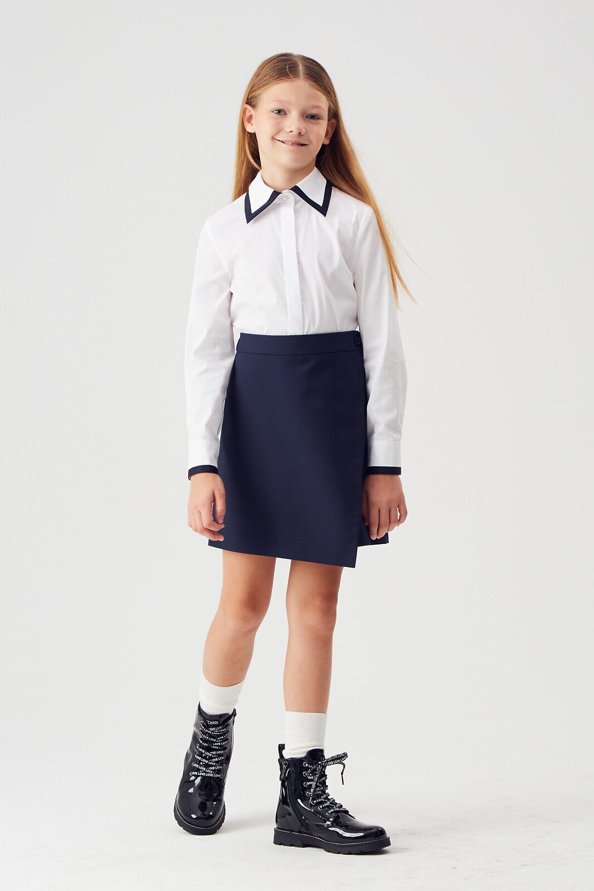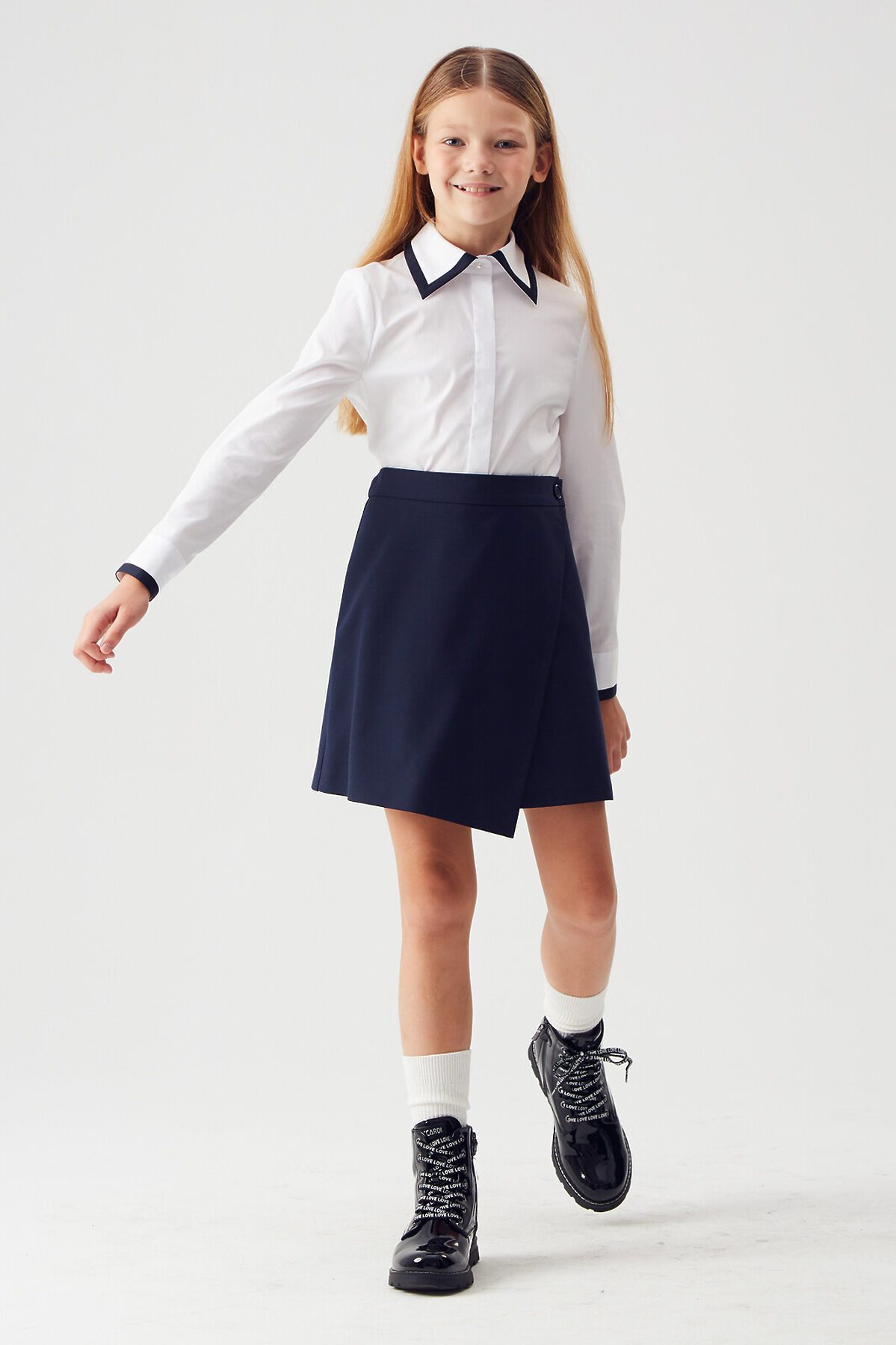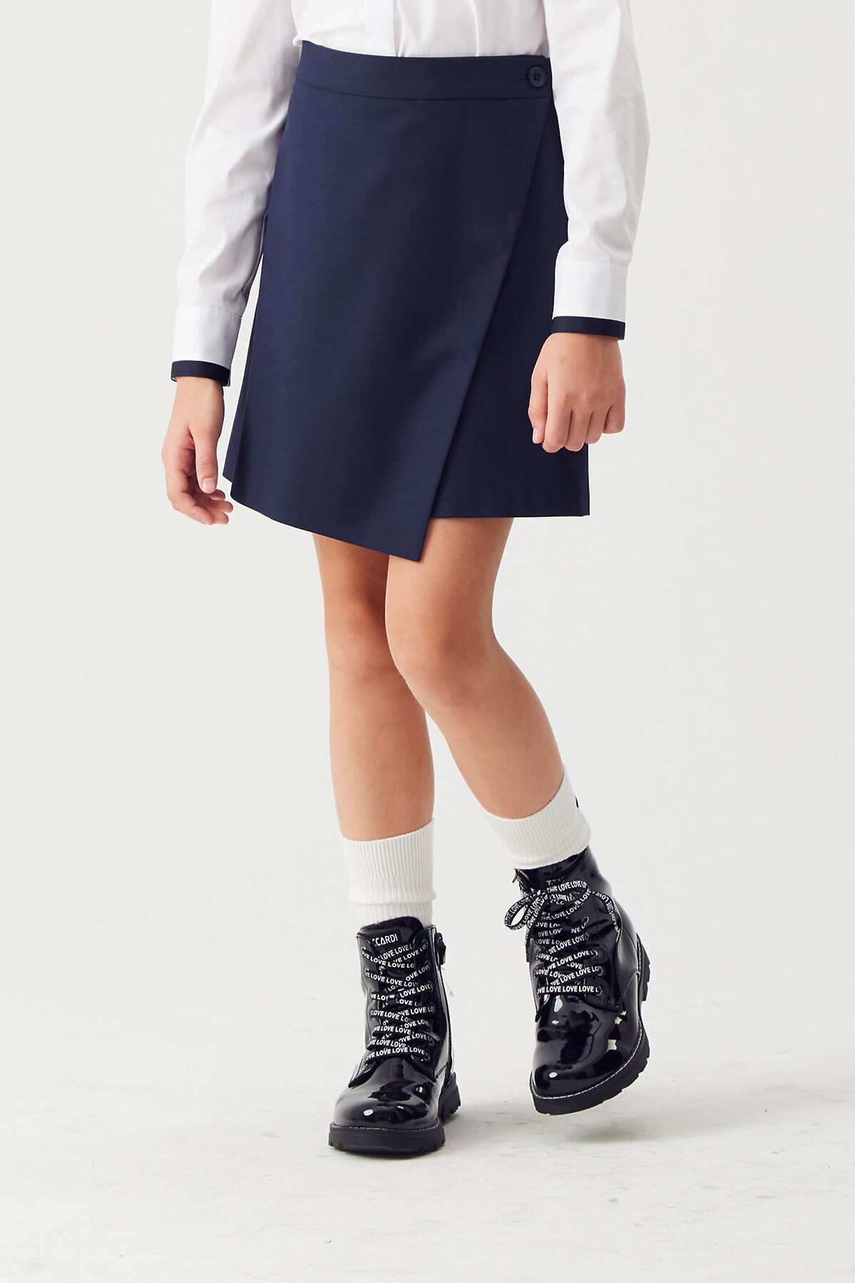 Эта юбка для девочки станет отличным выбором для школьной формы. Изготовлена из ткани, в которой сочетаются синтетические и искусственные нити, что обеспечивает прочность и долговечность. Модель с запАхом не только выглядит стильно, но и удобна в носке, позволяя свободно двигаться на уроках и во время перемен. Уникальная застежка привносит интересный акцент: она смещена на одну прямую наружную петлю с наружной пуговицей и одну внутреннюю прямую петлю с внутренней пуговицей на поясе. Такой дизайн обеспечивает надежную фиксацию изделия и позволяет регулировать посадку, что особенно важно для активных девочек.