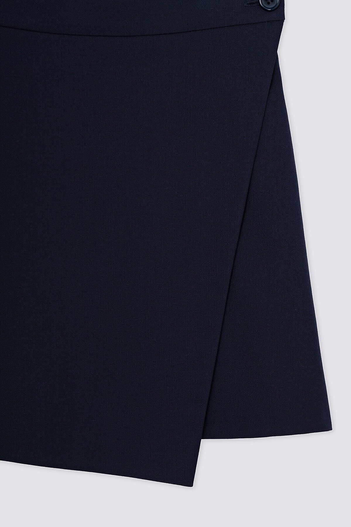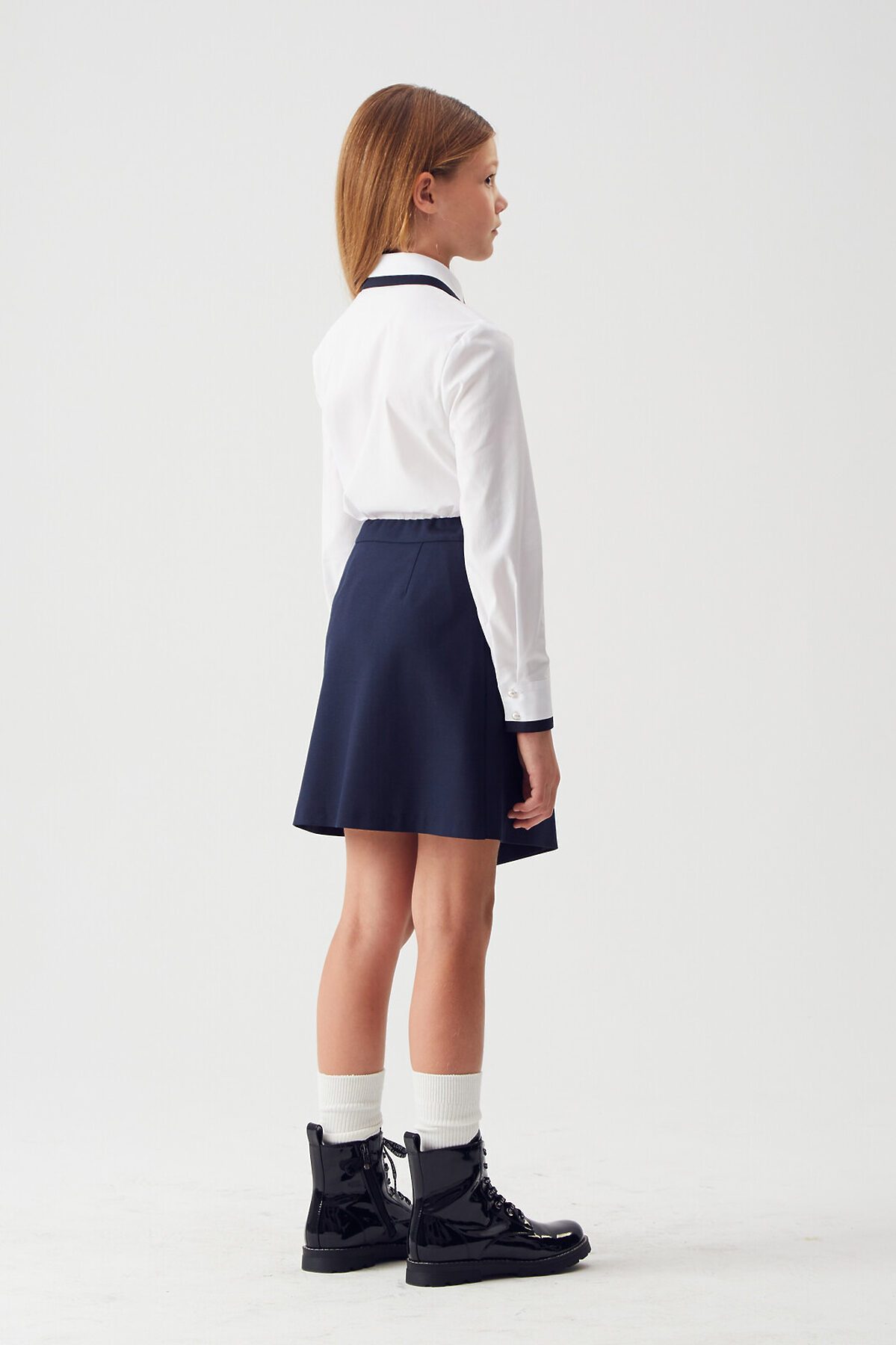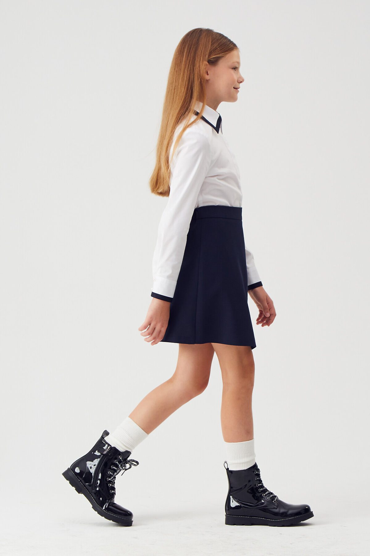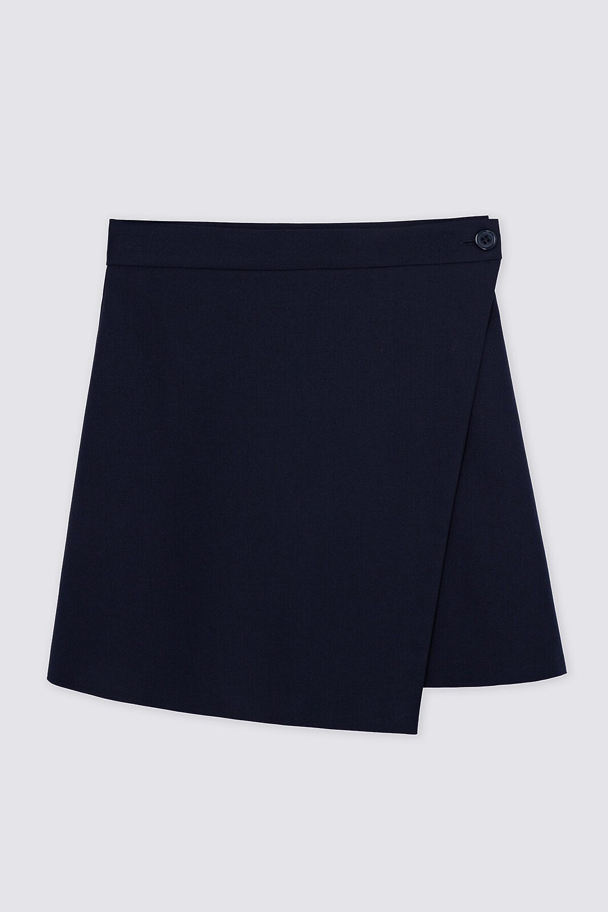 Эта юбка для девочки станет отличным выбором для школьной формы. Изготовлена из ткани, в которой сочетаются синтетические и искусственные нити, что обеспечивает прочность и долговечность. Модель с запАхом не только выглядит стильно, но и удобна в носке, позволяя свободно двигаться на уроках и во время перемен. Уникальная застежка привносит интересный акцент: она смещена на одну прямую наружную петлю с наружной пуговицей и одну внутреннюю прямую петлю с внутренней пуговицей на поясе. Такой дизайн обеспечивает надежную фиксацию изделия и позволяет регулировать посадку, что особенно важно для активных девочек.