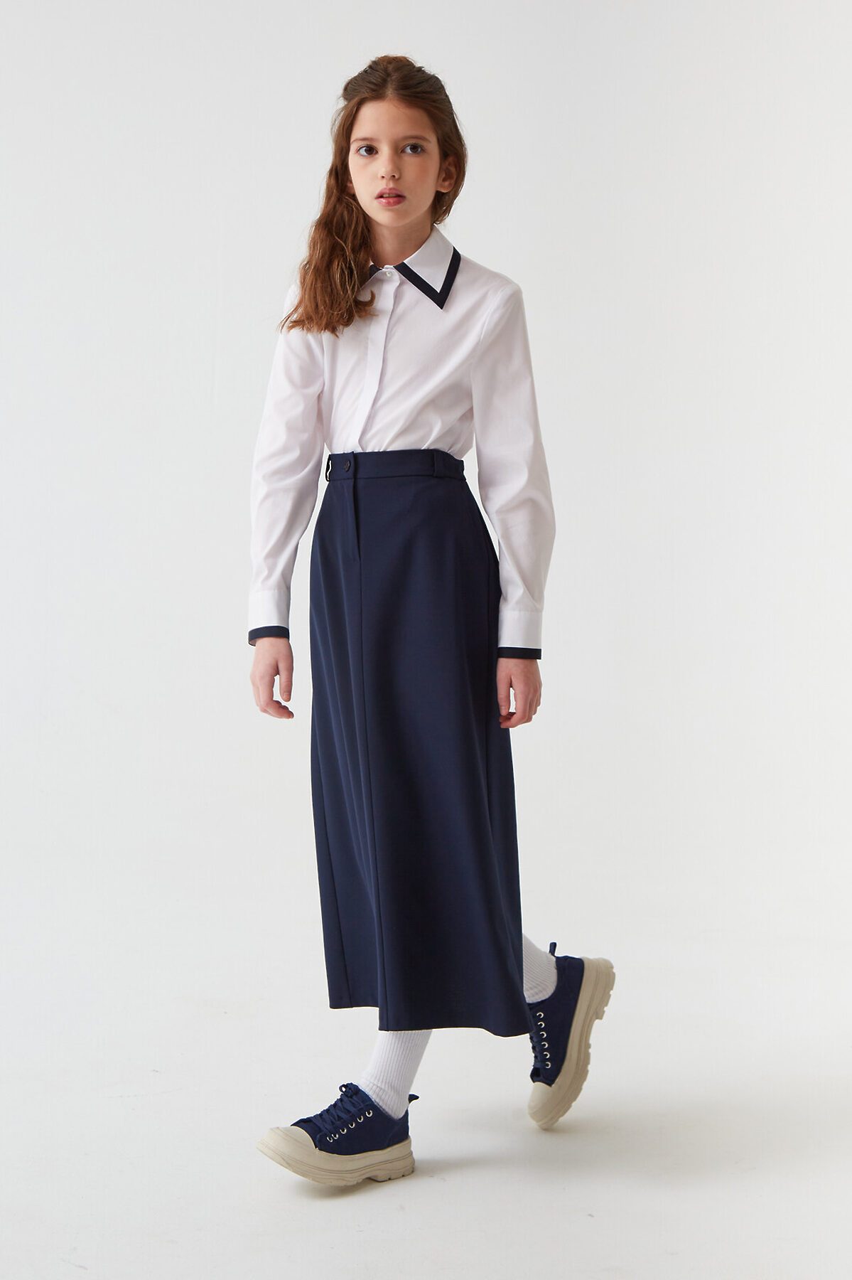 Юбка для девочки, идеально подходящая для школы, станет отличным выбором благодаря сочетанию удобства и стильного дизайна. Изделие выполнено из ткани, состоящей из смеси синтетических и искусственных нитей, что обеспечивает прочность и долговечность материала. Удобная застежка на тесьму-молнию расположена посередине переднего полотнища и обработана гульфиком для дополнительной аккуратности. Пояс фиксируется на прямую петлю с пуговицей, создавая комфортную посадку. Классический крой делает эту вещь универсальной частью школьного гардероба. Материал не требует сложного ухода и сохраняет свой первоначальный вид даже при активной носке.