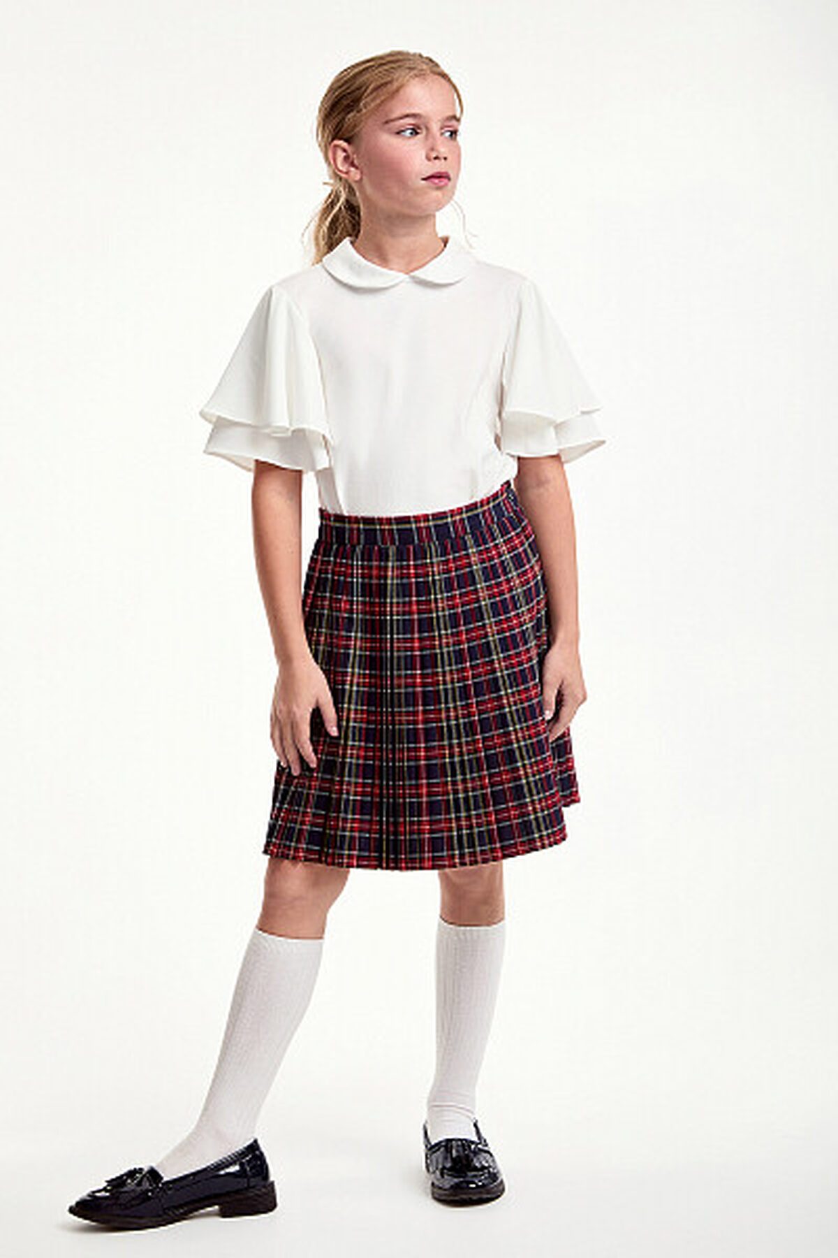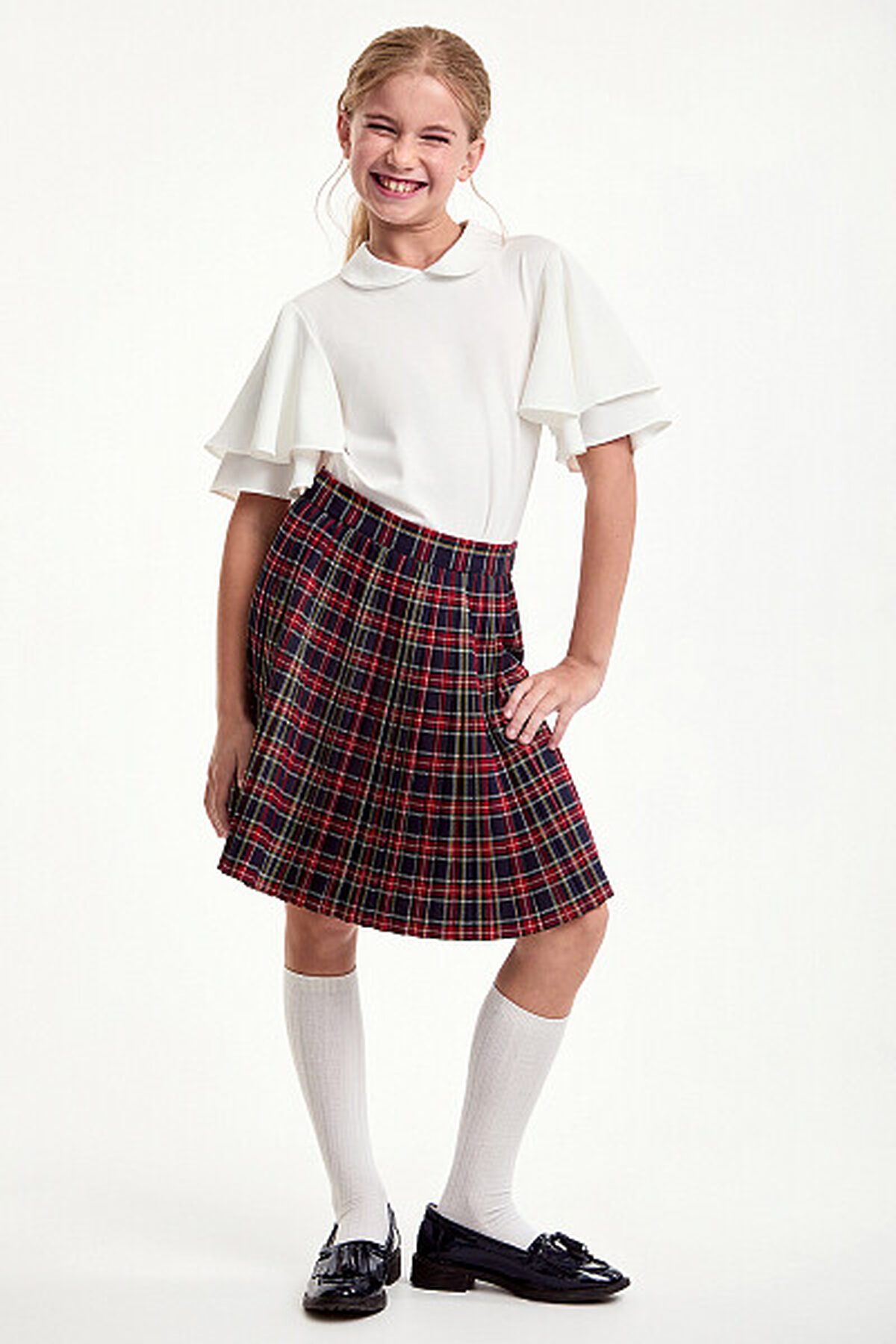 Плиссированная юбка для девочки идеально подходит для школы. Она выполнена с застежкой в левом боковом шве, где аккуратно расположены молния и пуговица, что обеспечивает надежную фиксацию. Плиссированное полотно создает элегантный вид, добавляя изюминку в школьный наряд. Пояс юбки притачной, что гарантирует комфорт и хорошую посадку. Внутри пояса на участке заднего полотнища находится евро-резинка, которая легко регулируется с помощью пуговицы, пришитой на внутренней стороне. Это позволяет создавать индивидуальный fit для каждой девочки.