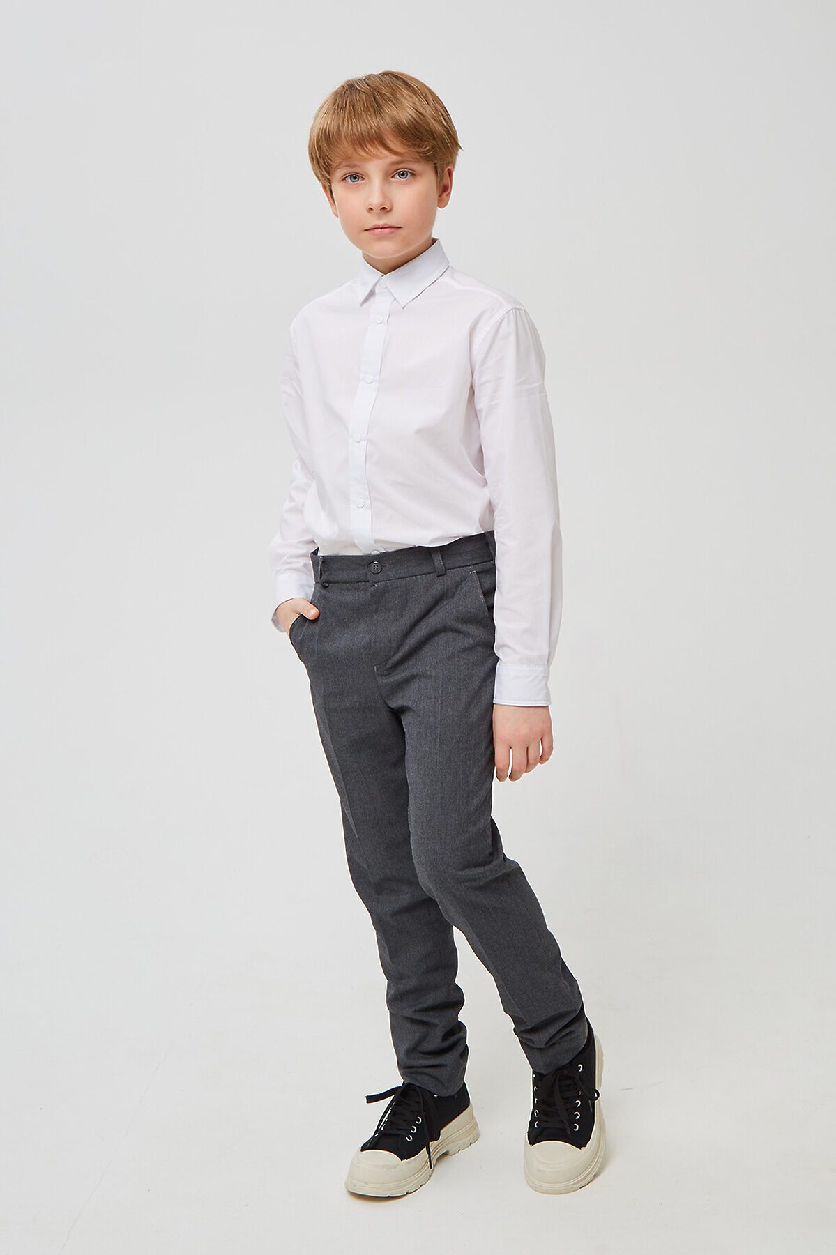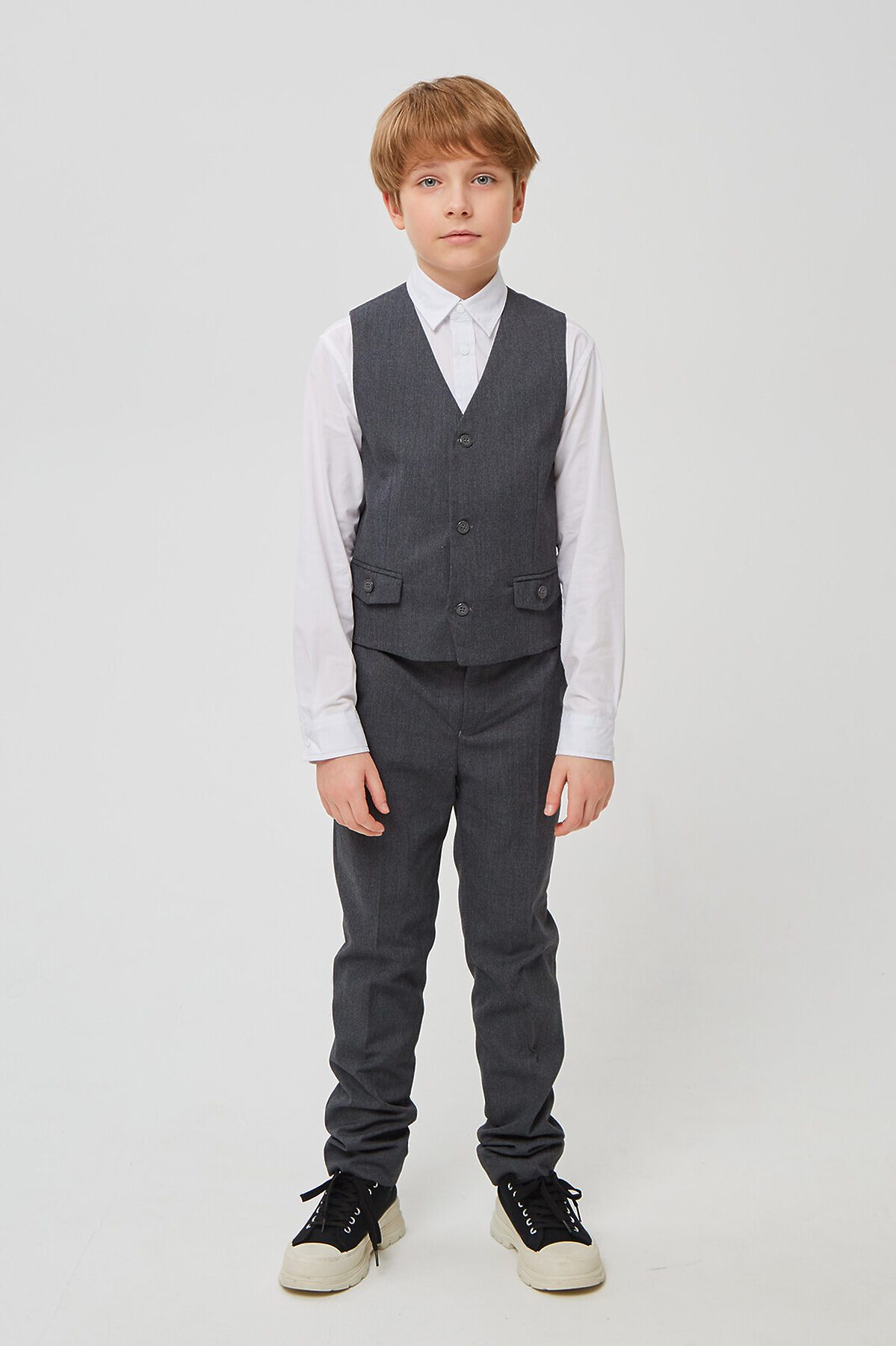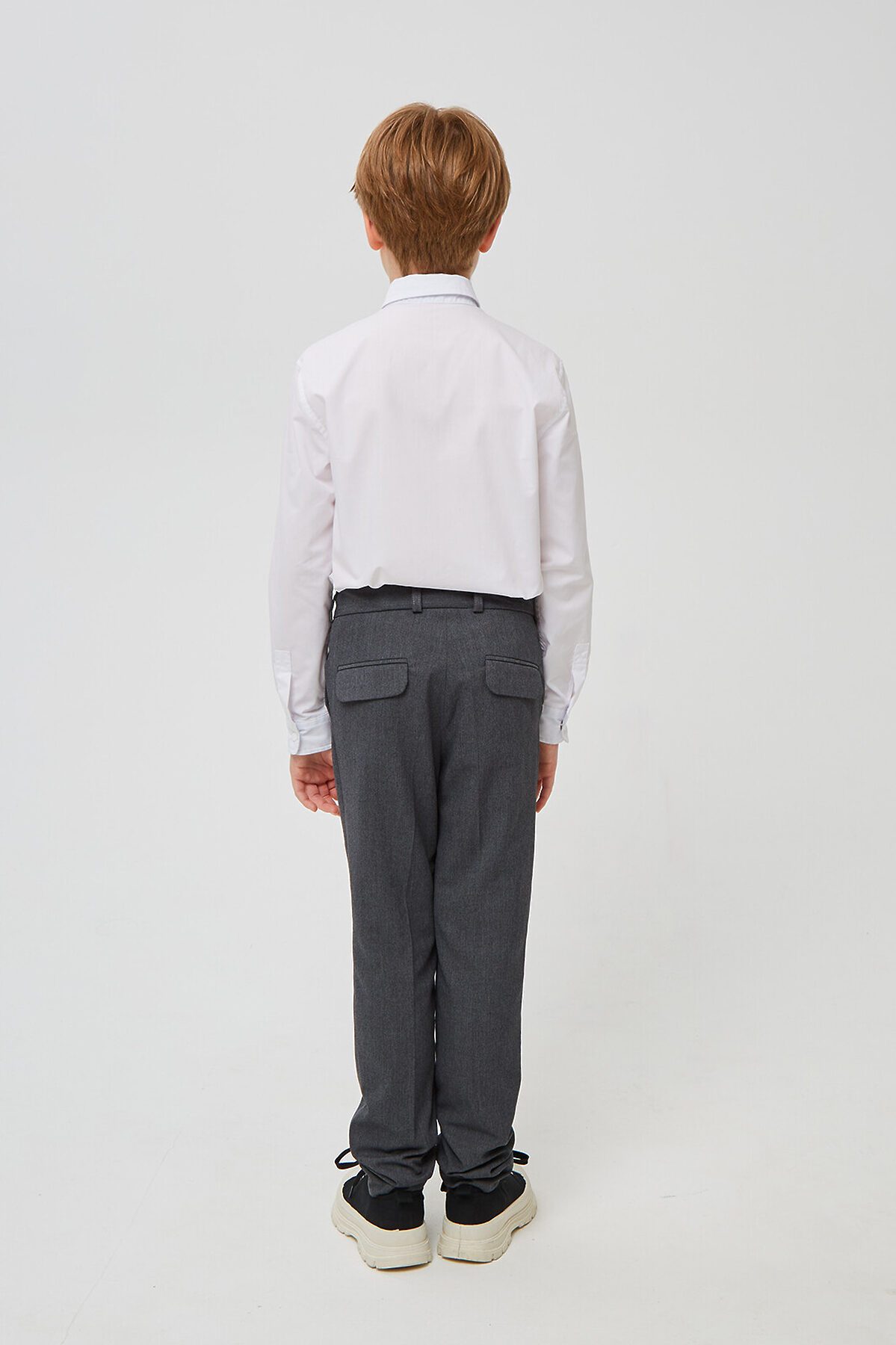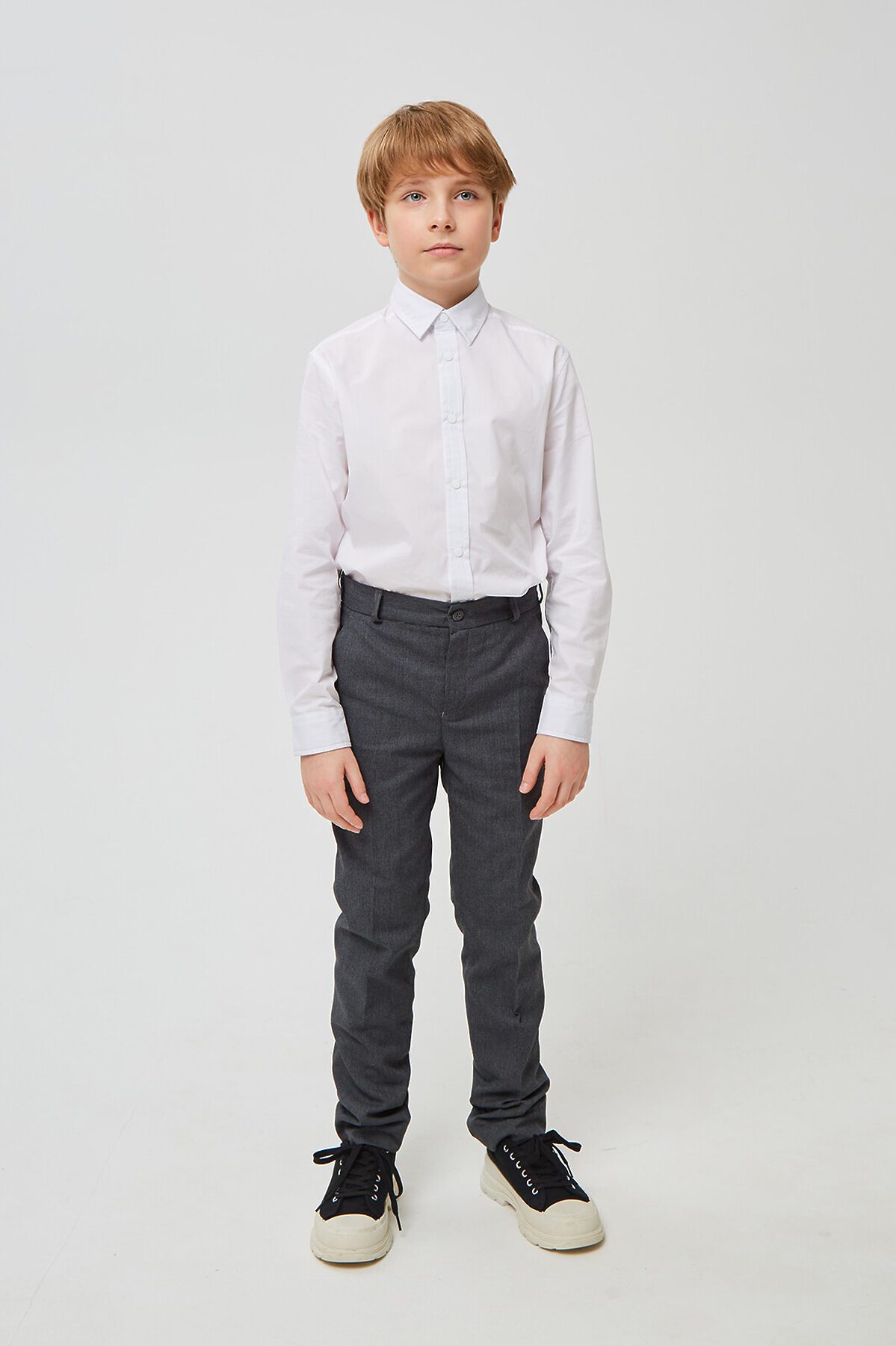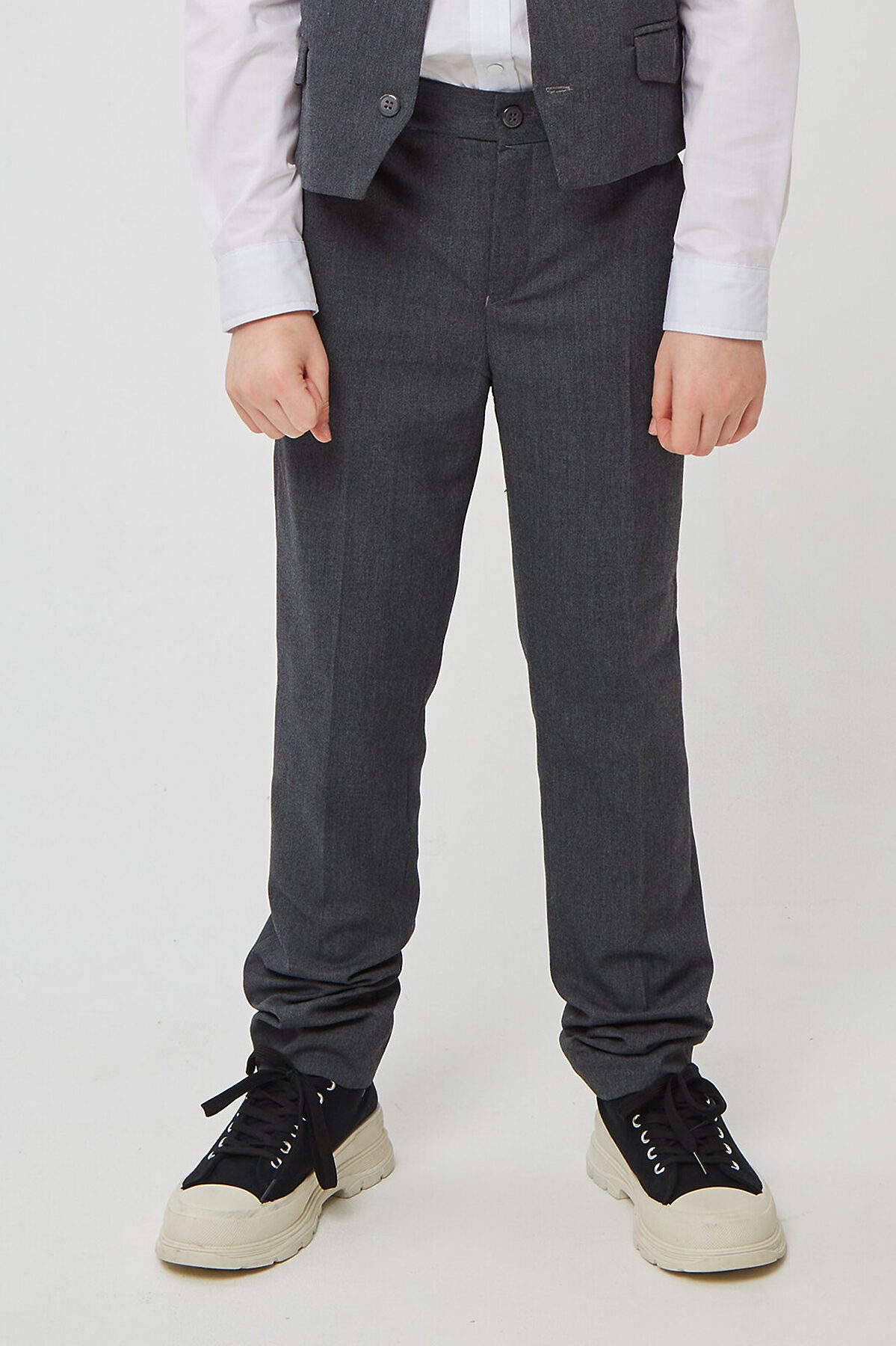 Классические брюки для мальчика из износостойкой и устойчивой к смятию костюмной поливискозы немного зауженные к низу с боковыми передними и прорезными задними карманами с клапаном, на втачном поясе с регулировкой и шлёвками. Отличный вариант на каждый день.