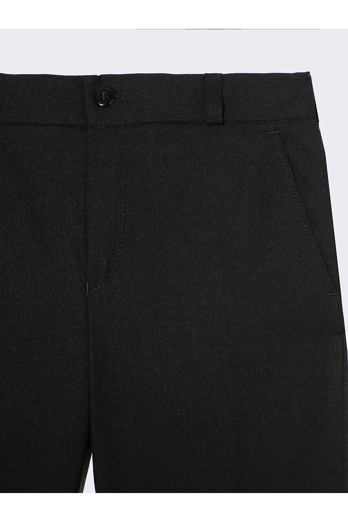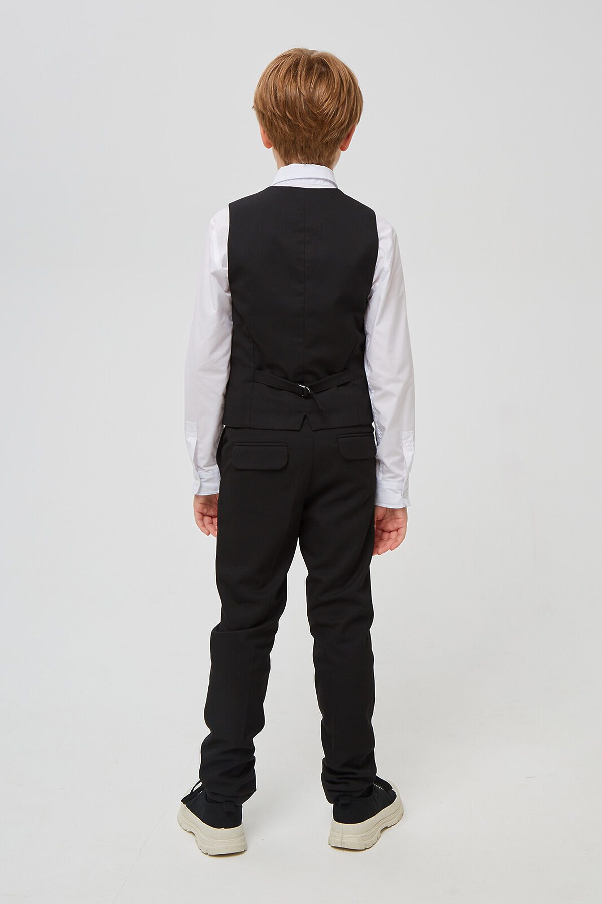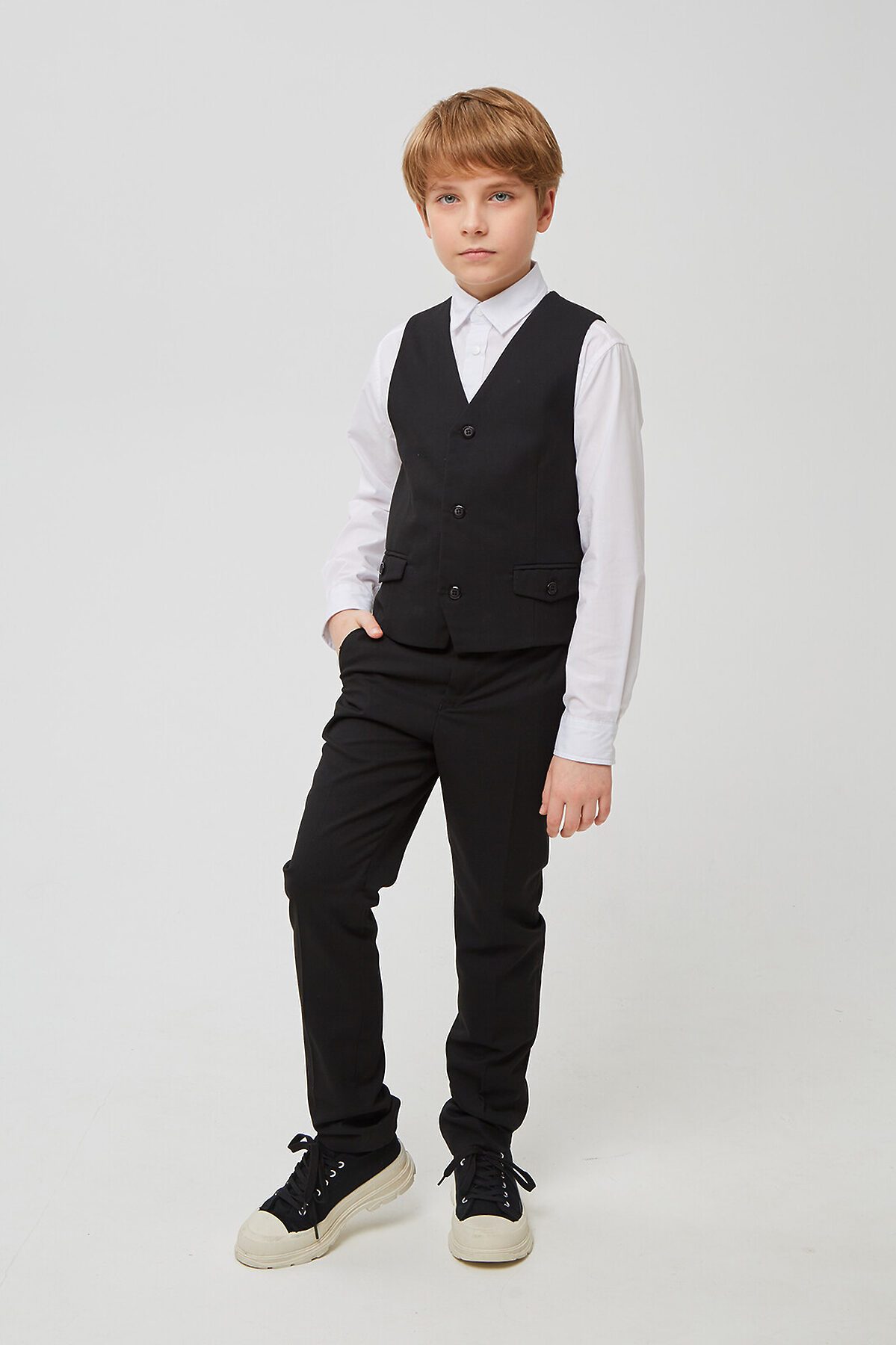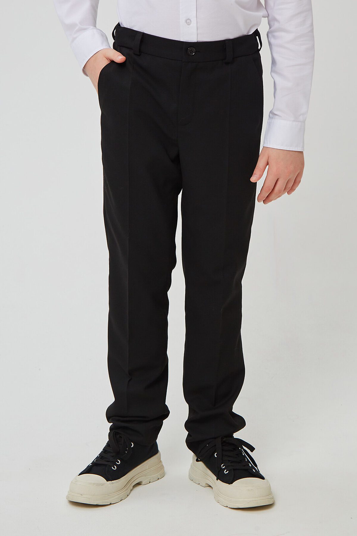 Классические брюки для мальчика из износостойкой и устойчивой к смятию костюмной поливискозы немного зауженные к низу с боковыми передними и прорезными задними карманами с клапаном, на втачном поясе с регулировкой и шлёвками. Отличный вариант на каждый день.