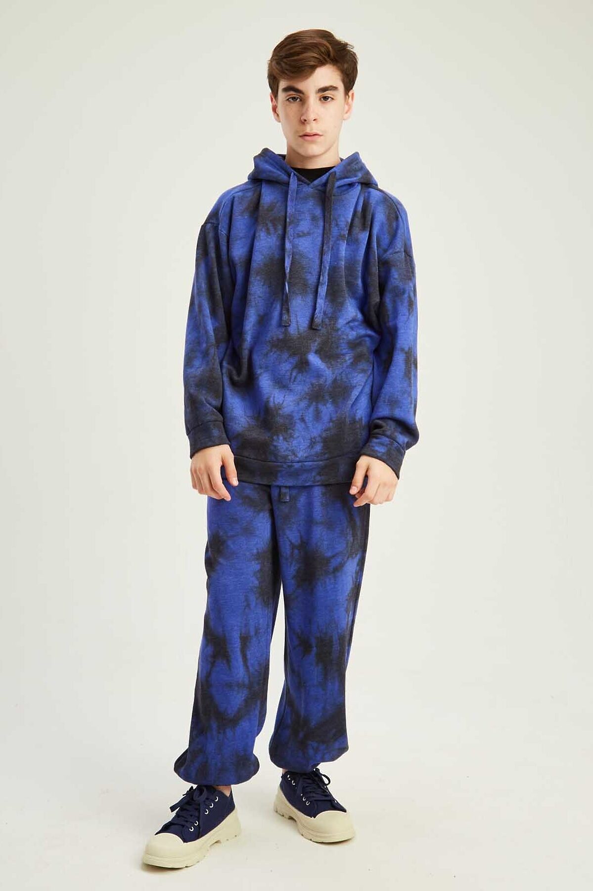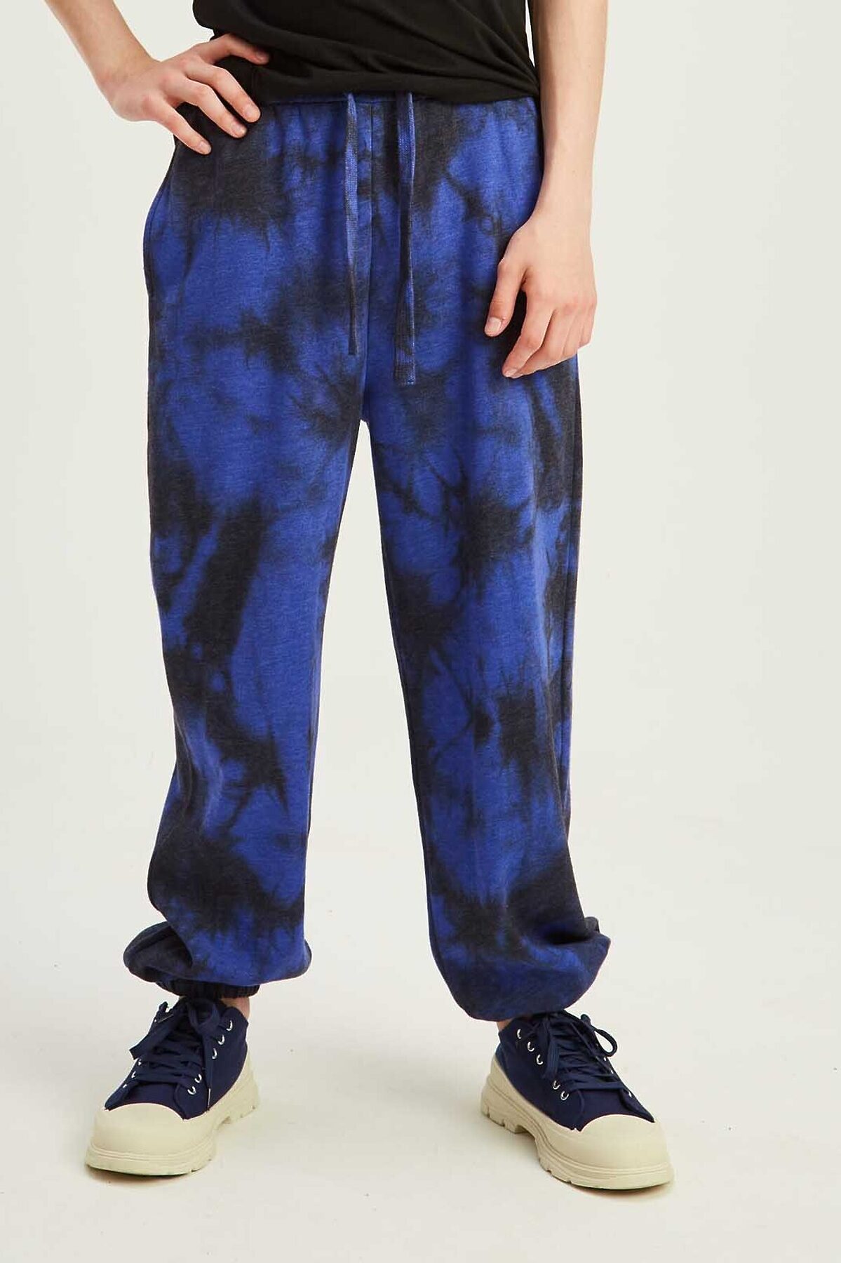 Брюки изготовлены из высококачественного трикотажа, который не только приятен к телу, но и обладает высокой прочностью и долговечностью. Благодаря начёсу они сохраняют тепло и комфорт в холодную погоду. Эти брюки станут отличным выбором для занятий спортом, прогулок на свежем воздухе или просто повседневной носки. Они имеют пояс с резинкой и шнурком, что обеспечивает комфортную посадку и свободу движений. Расцветка брюк выполнена в стиле тай-дай, который сейчас на пике популярности. Этот принт добавляет яркости и стиля в любой образ