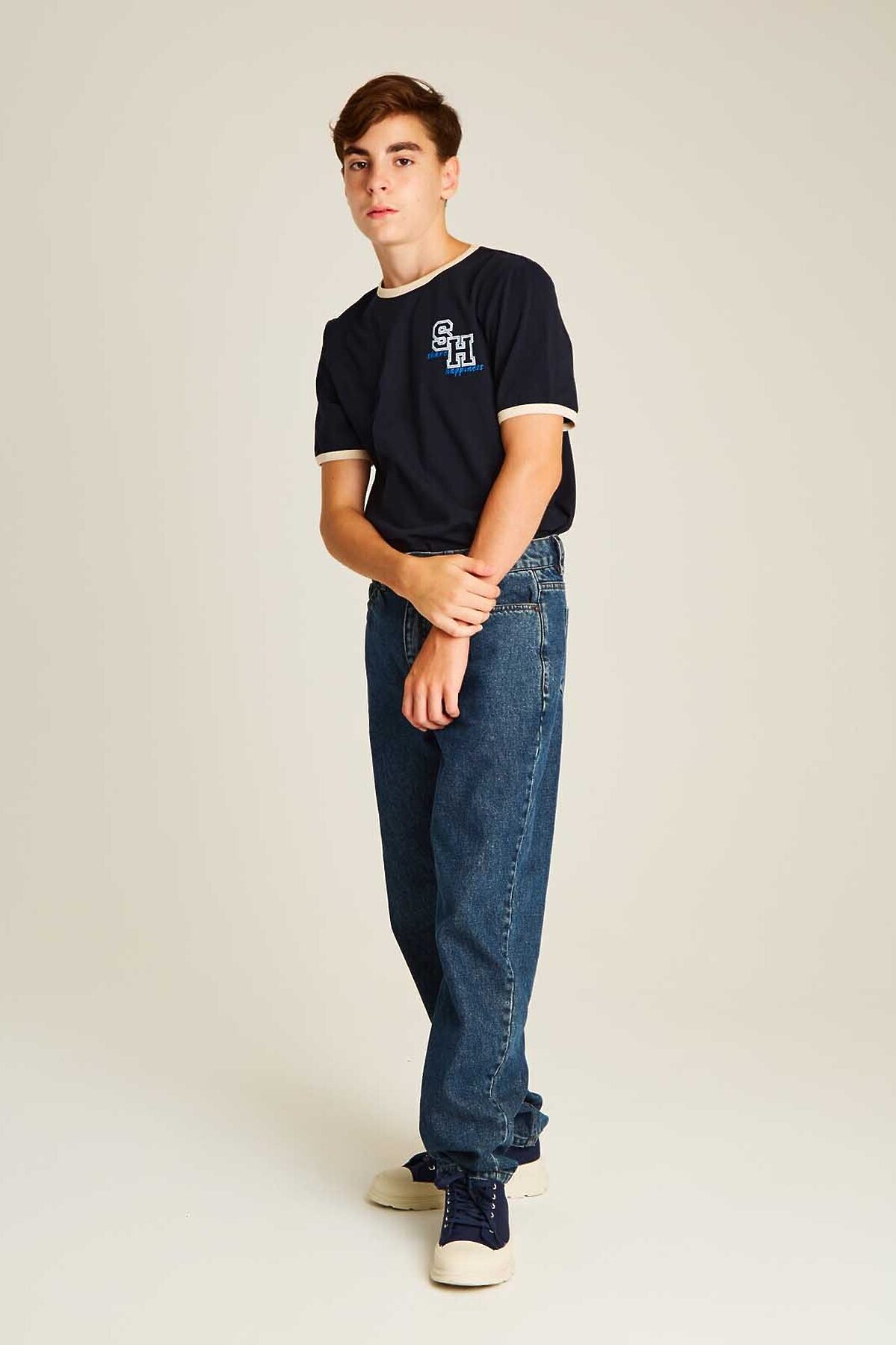 Стильные джинсы из 100% хлопка прямого силуэта полной длины. Посадка на талии дополнительно регулируется внутренним поясом. Модель имеет классический дизайн с пятью карманами, которые точно вместят все необходимые мелочи. Джинсы подойдут как мальчикам, так и девочкам. Цвета: черный, синий, темно-синий.