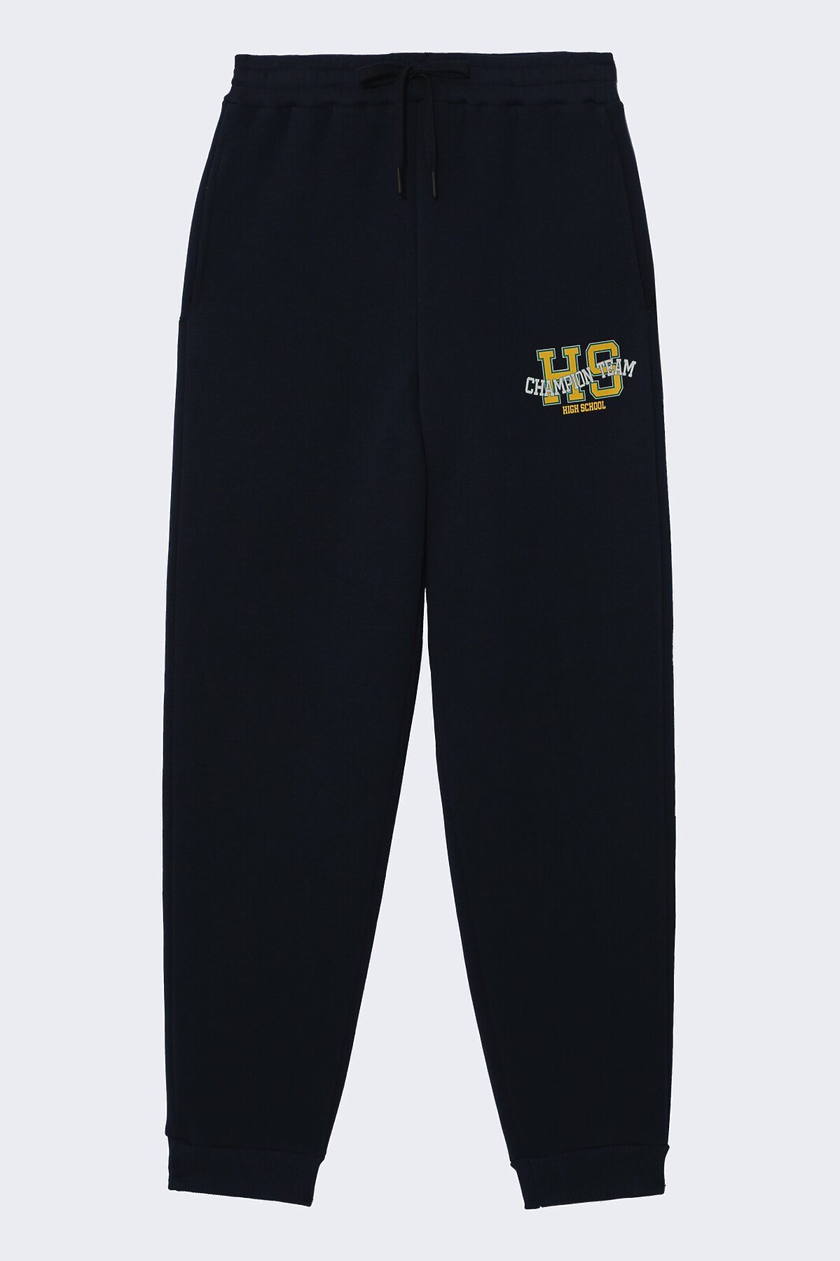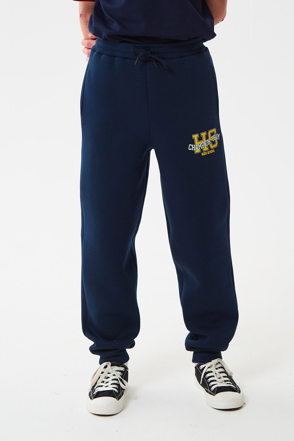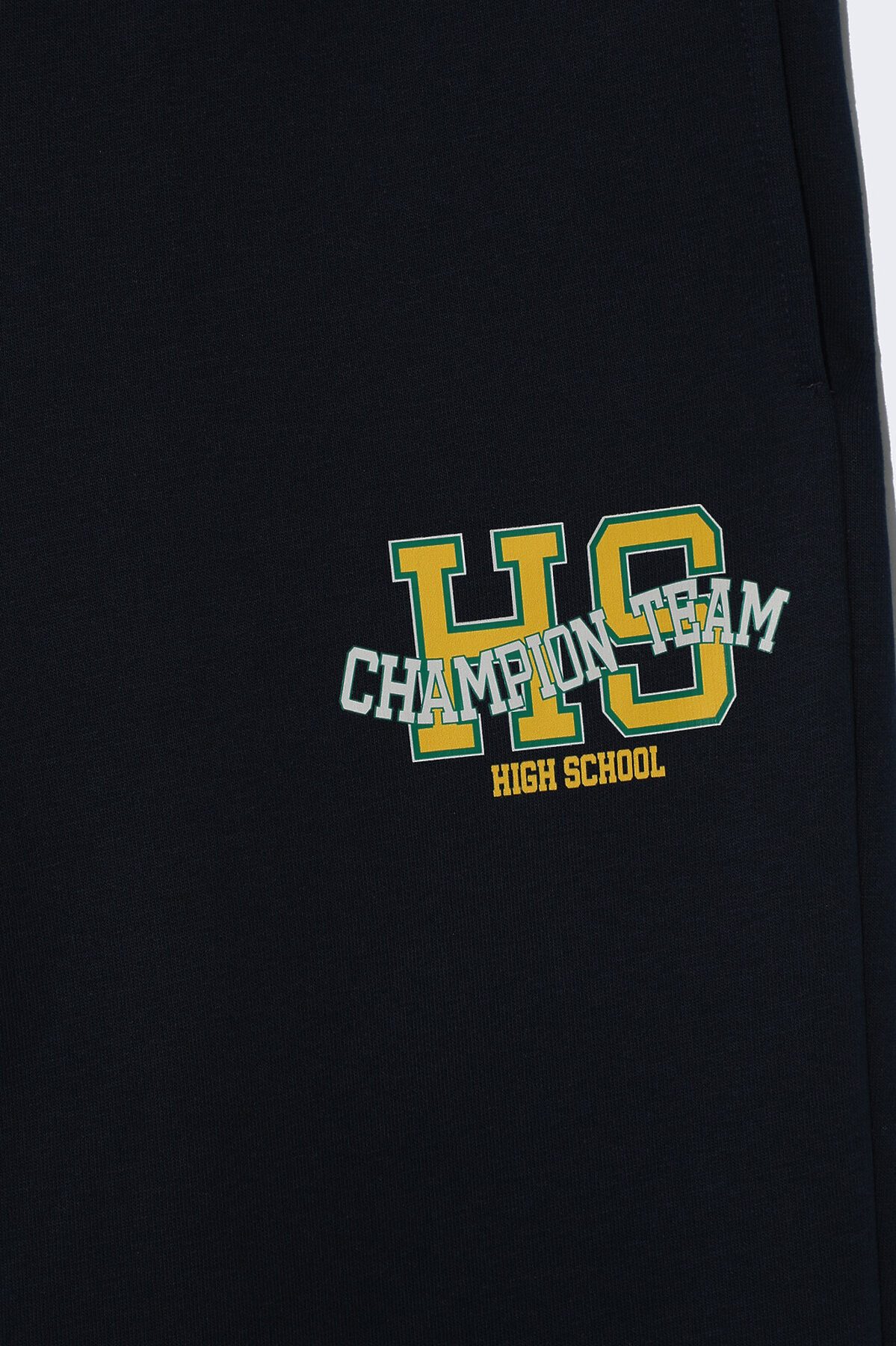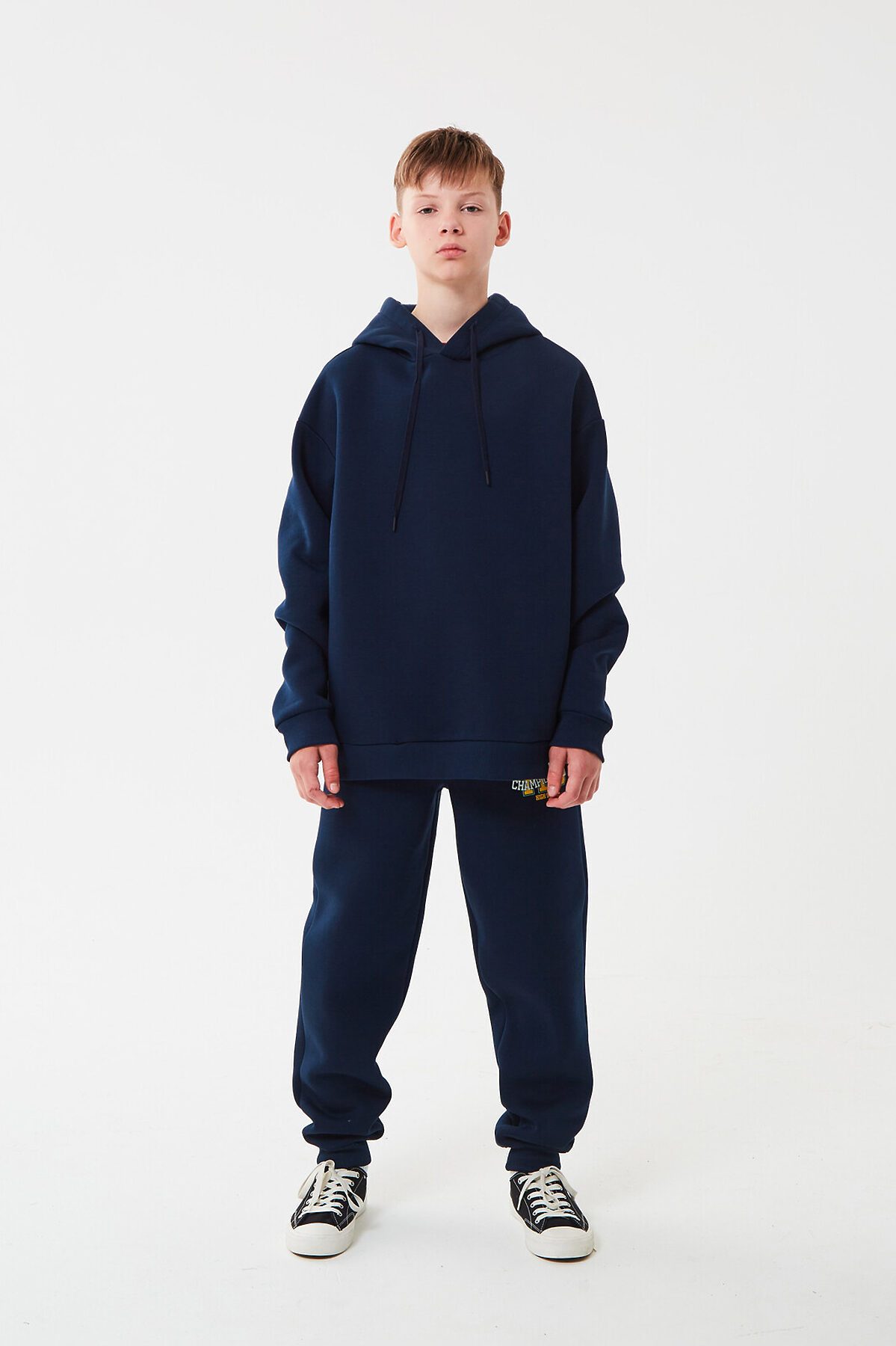 Стильные удобные брюки-джоггеры для мальчиков на широких манжетах. Модель прямого силуэта с поясом на резинке и шнуром для утяжки по талии. Выполнены из теплого футера и дополнены задним карманом. Брюки подходят на тренировку и на прогулку обеспечивают комфорт и стиль. Небольшая печать — лаконичный акцент модели.