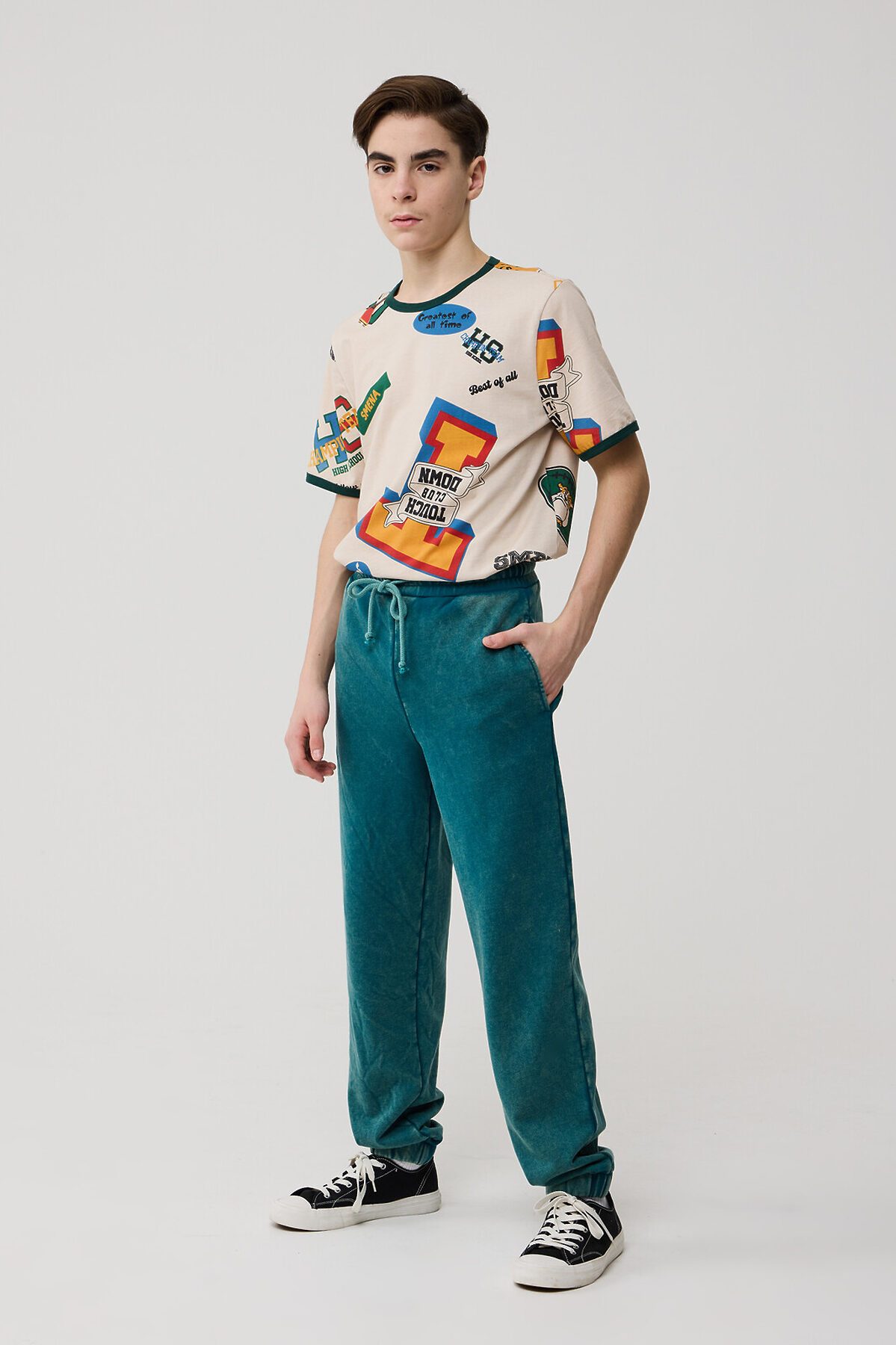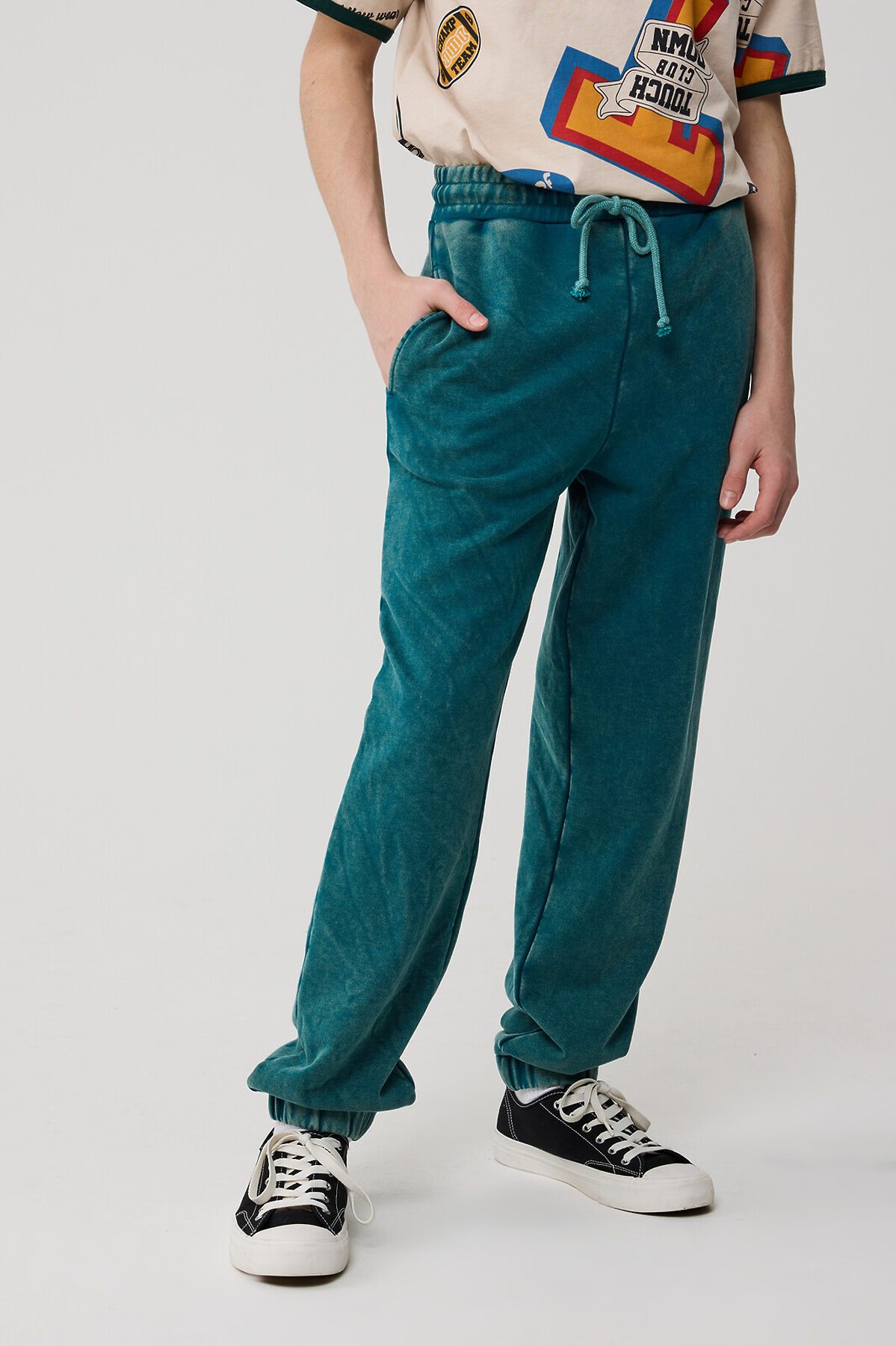 Трендовые брюки-джоггеры - идеальный вариант для создания модного спортивного образа. Пояс на резинке и широким шнуром для утяжки по талии. Модель дополнена узкими манжетами и боковыми карманами, которые добавляют практичности и места для хранения мелочей. Прочный футер с трендовым принтом в технике тай-дай. Доступны в 4 цветах.