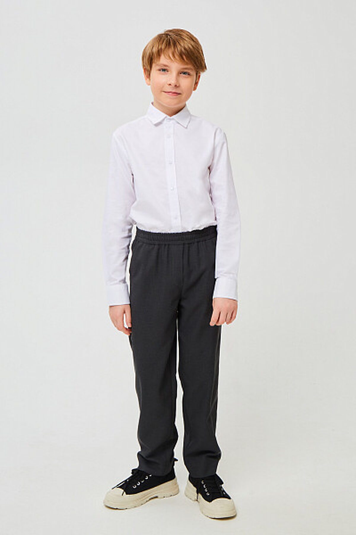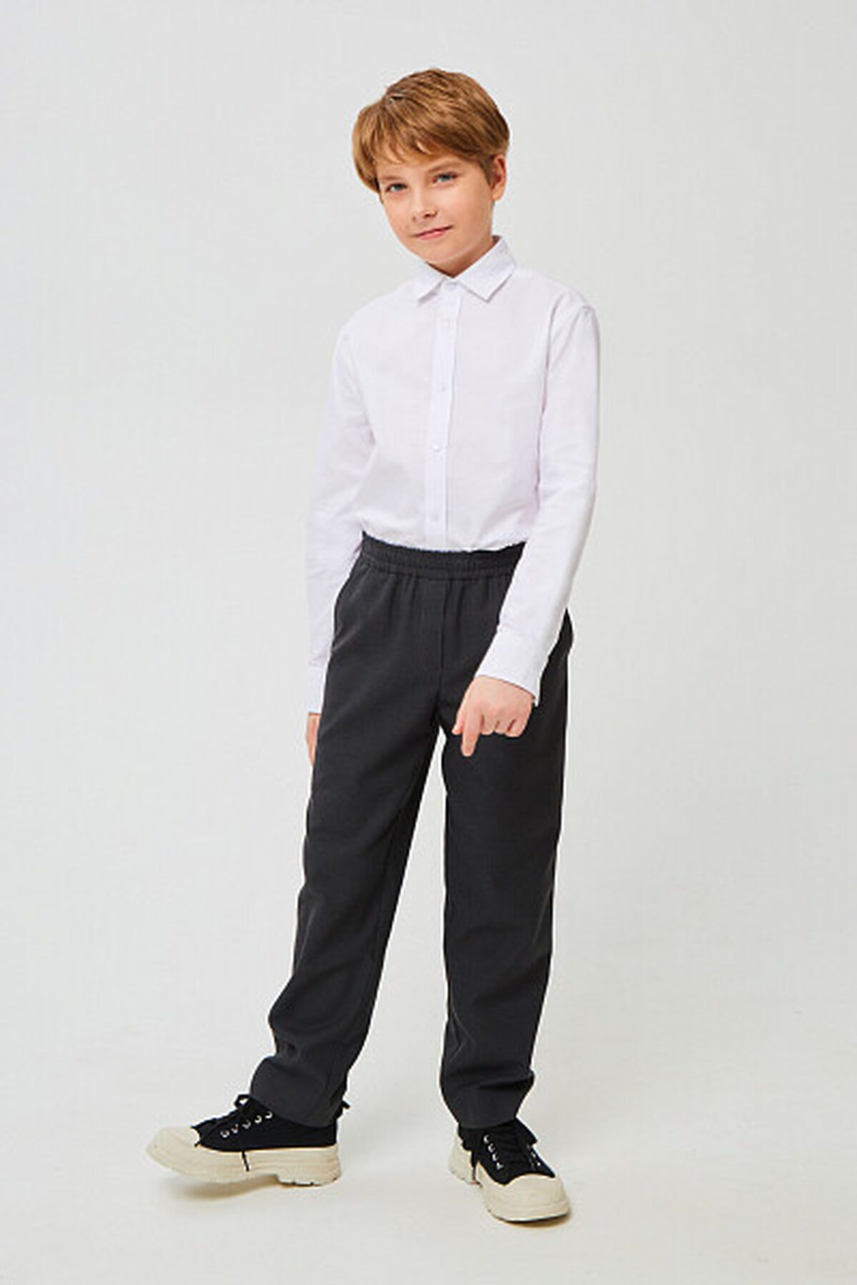 Брюки для мальчика из износостойкой и устойчивой к смятию костюмной поливискозы. Модель прямая на резинке, без застежки, имитация гульфика. Отличный вариант на каждый день.